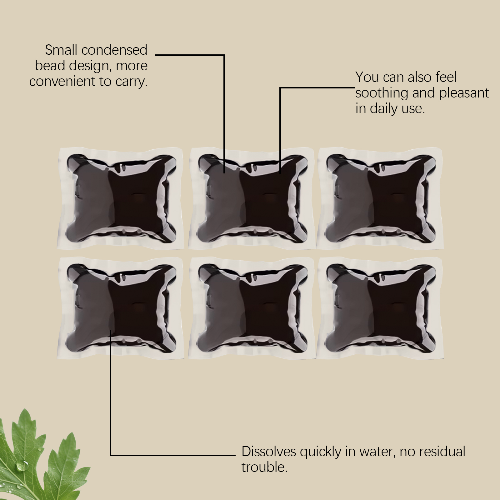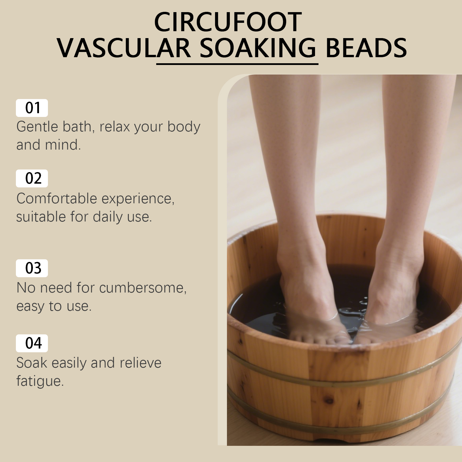我们的日常泡脚凝珠,由艾草提取物、当归精心调配而成。专为缓解肿胀和不适,支持足部和腿部整体健康设计。使用方法极为便捷:1.取出一个本品放入适合泡脚的容器中,并加入40度-50度的温水。2.待本品完全溶解后,将双脚浸泡之中,静置15-20分钟。3.浸泡结束后擦干双脚即可。并且它可以促进更健康的血液循环,提高代谢效率,改善皮肤健康,改善腿部外观。