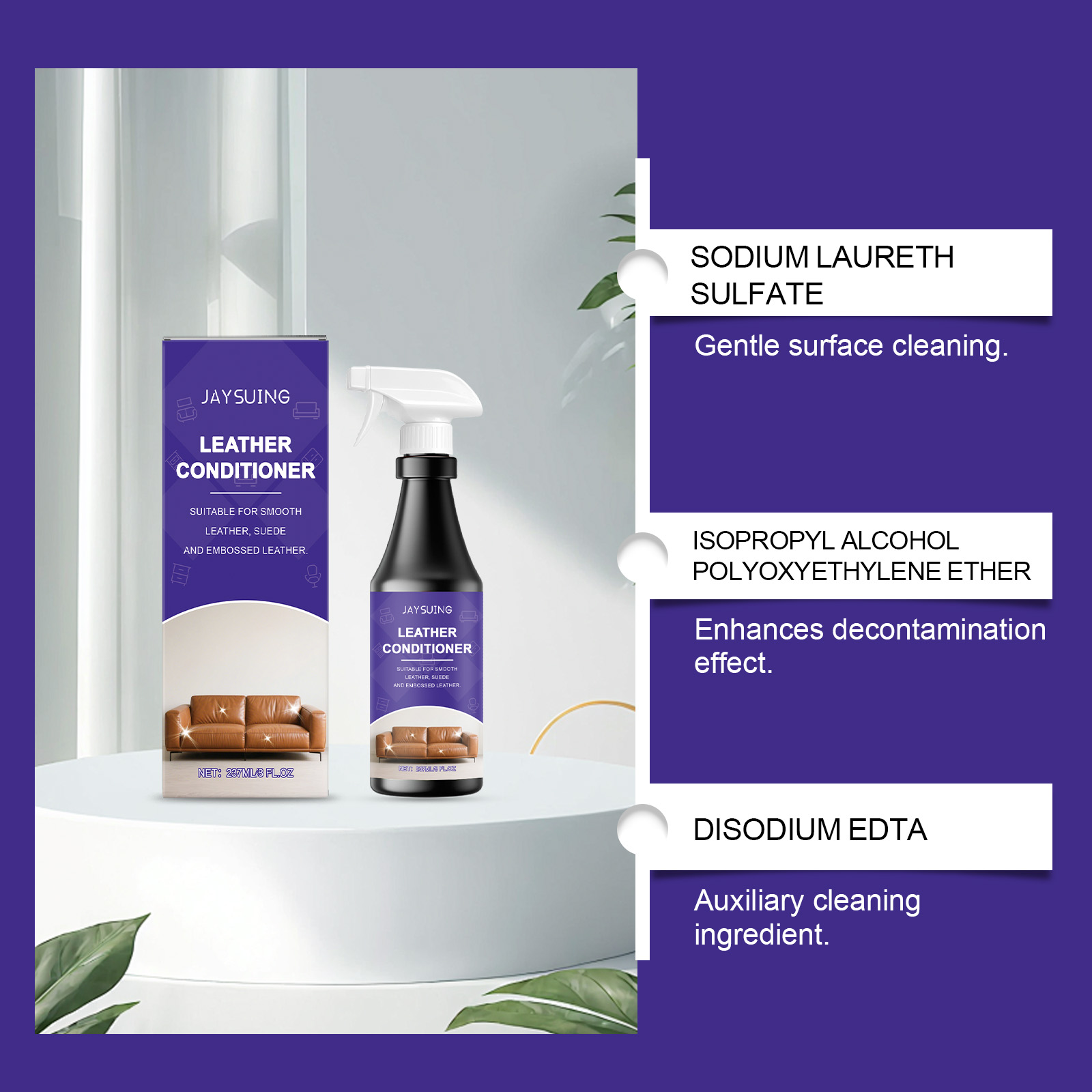 我们的真皮清洁护理喷雾,由月桂醇聚醚硫酸酯钠、异构醇聚氧乙烯醚精心调配而成。专为温和清洁皮革表面的污渍设计。使用方法极为便捷:将清洁剂直接喷在污渍上,确保覆盖整个区域。用湿毛巾轻轻擦拭,重复操作直至污渍完全去除。用干净的纸巾擦去多余的水分,并让表面自然风干。并且有助于保持皮革的柔软质感。