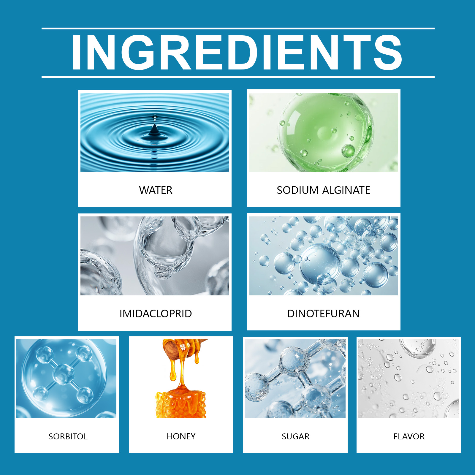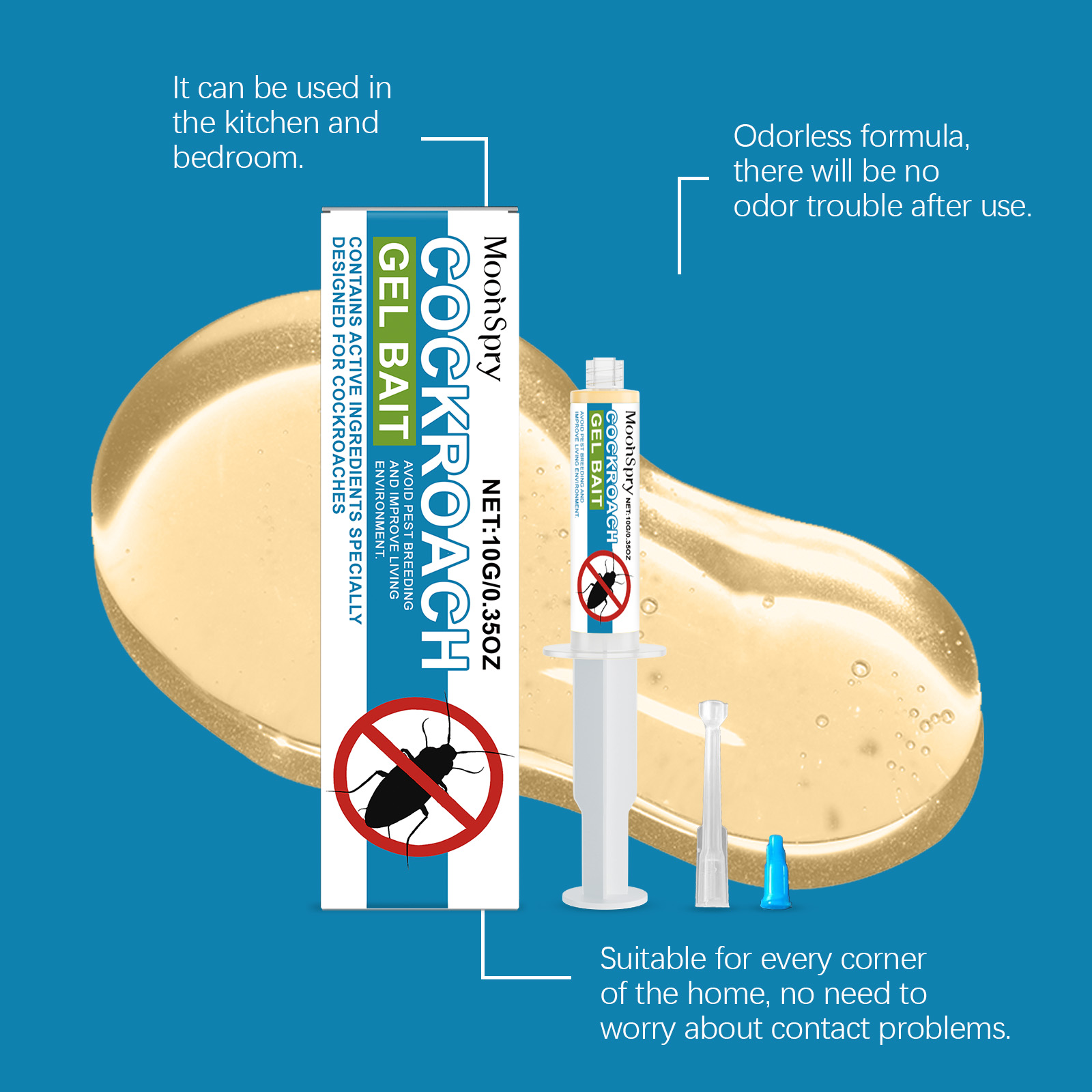 我们的蟑螂诱饵凝胶,由白砂糖、呋虫胺、香精精心调配而成。专门设计用于蟑螂的活性成分,可以快速杀死蟑螂且不留任何残留物。使用方法极为便捷:将凝胶挤到一张纸上,并将其放在蟑螂经常出没的地方。并且采用温和配方,适合在家庭、办公室和其他场所使用。