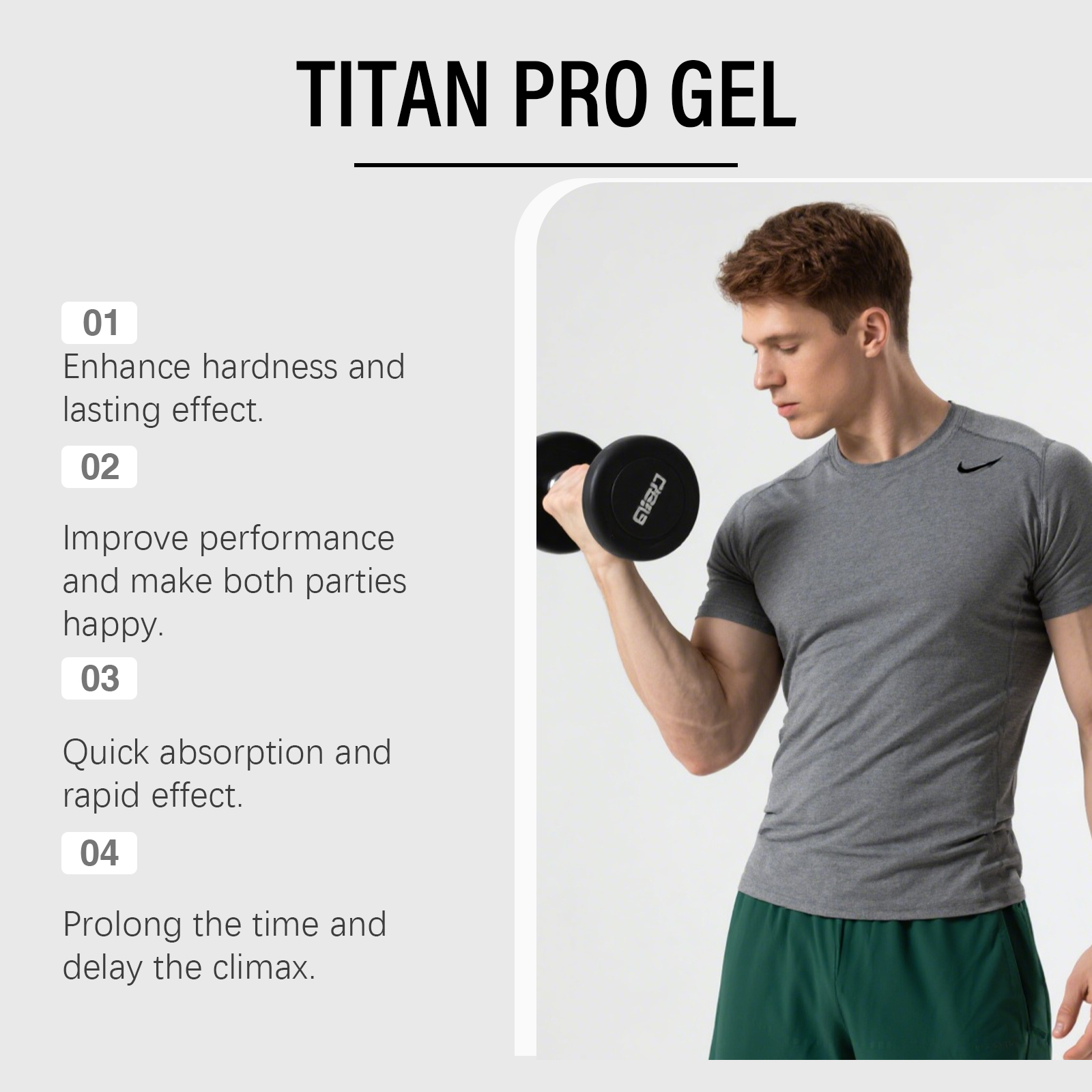 我们的男士护理凝胶,由卡波姆、三乙醇胺精心调配而成。专为改善性功能表现,增强男性自信心设计。使用方法极为便捷:清洁私处皮肤并保持干燥。取适量本产品均匀涂抹于私处皮肤,并轻轻按摩至吸收。并且可以保护皮肤健康,减少外部刺激,增强皮肤耐受性,并改善使用体验。