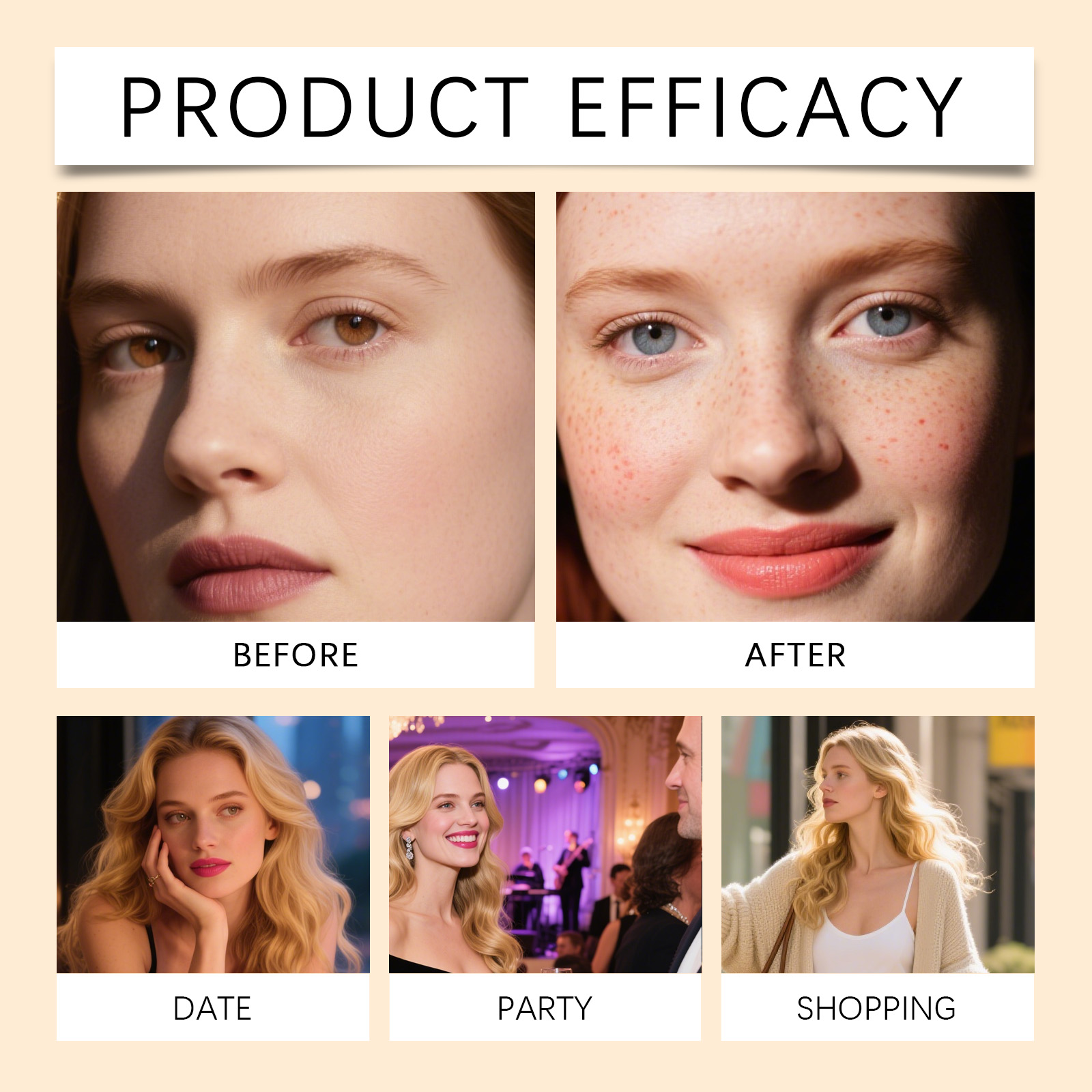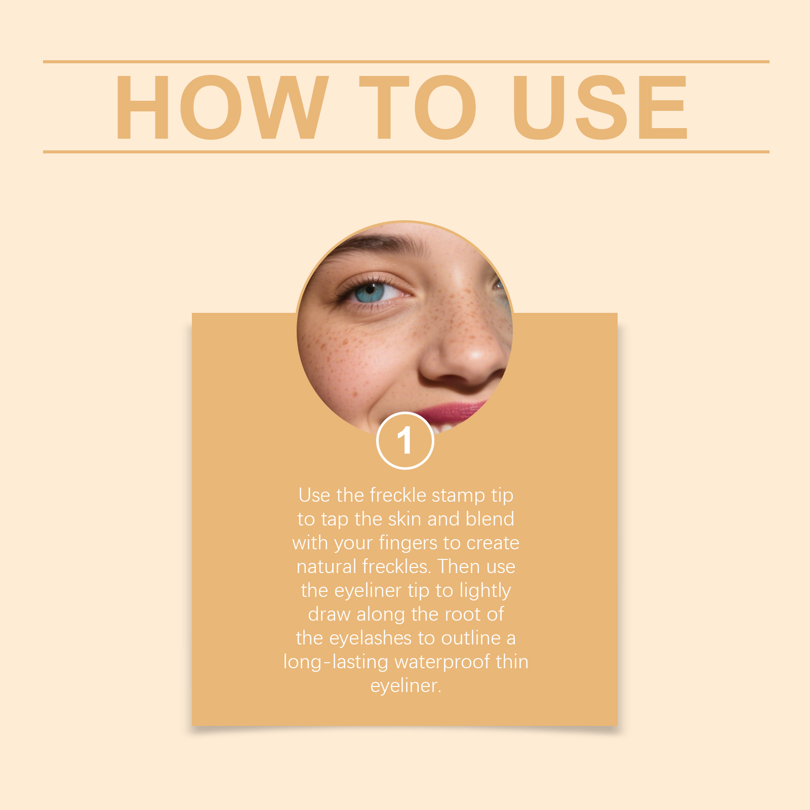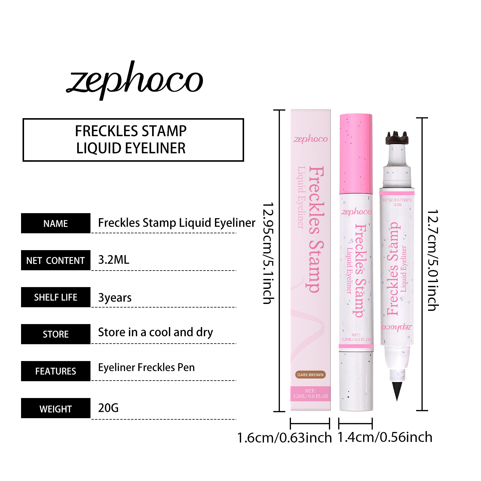 我们的2合1防水眼线笔雀斑笔(深棕色),由VP/DMAPA 丙烯酸(酯)类共聚物、甘油精心调配而成。专为打造自然雀斑,呈现阳光亲吻般妆容,眼线液一端画出精准分明的眼线,修饰眼型设计。使用方法极为便捷:用雀斑印章端轻点肌肤,用手指晕开,打造自然雀斑。再用眼线笔端,沿睫毛根部轻绘,勾勒出持久防水细眼线。并且它可以防水配方持久持妆,不易晕染,快干特性,适合所有肤质,支持多样妆容风格。