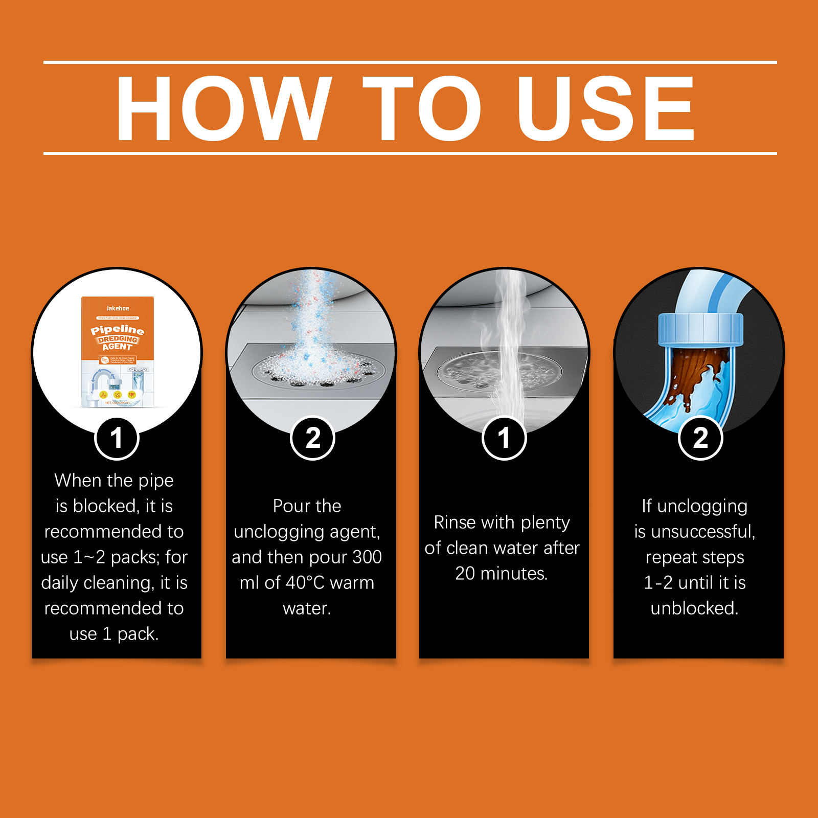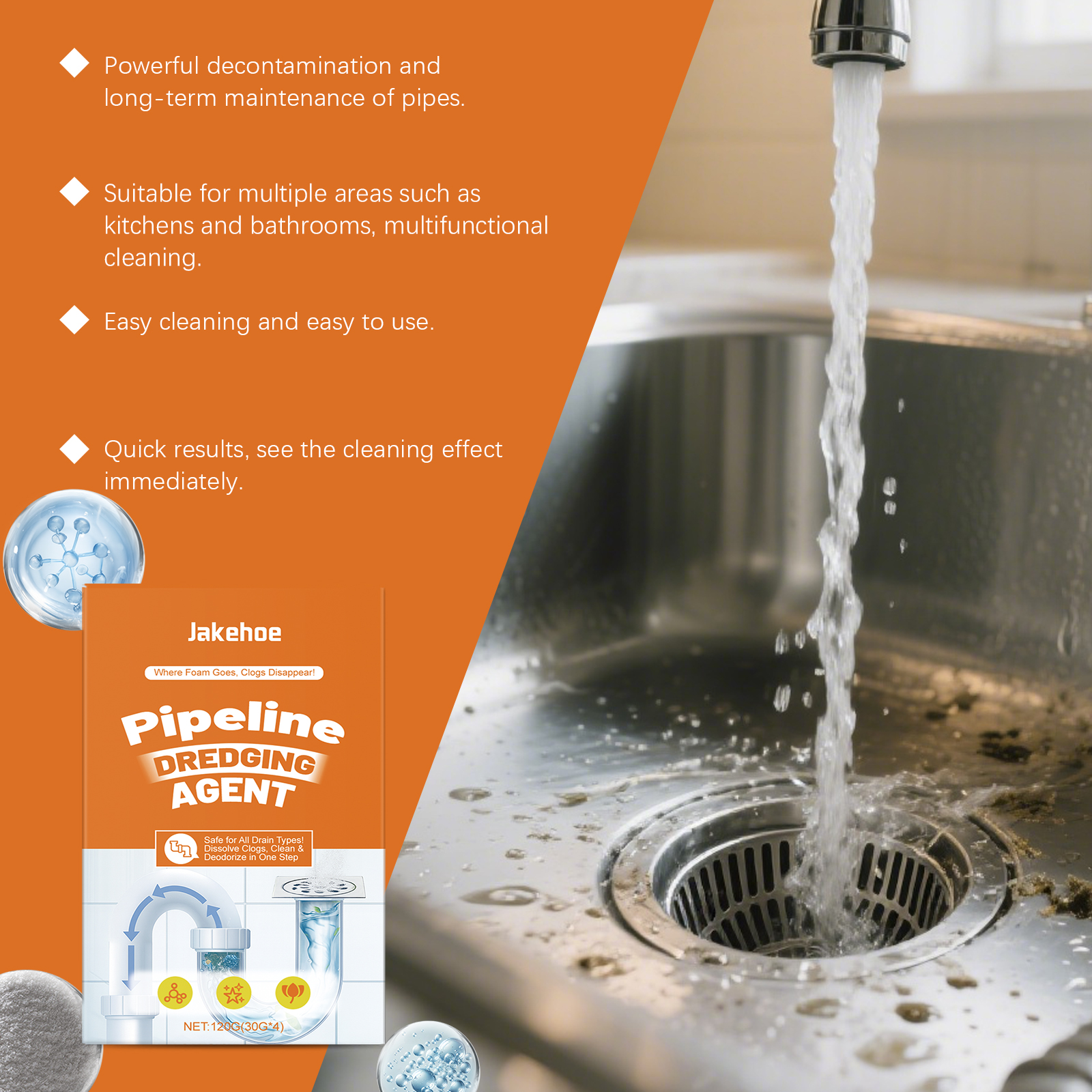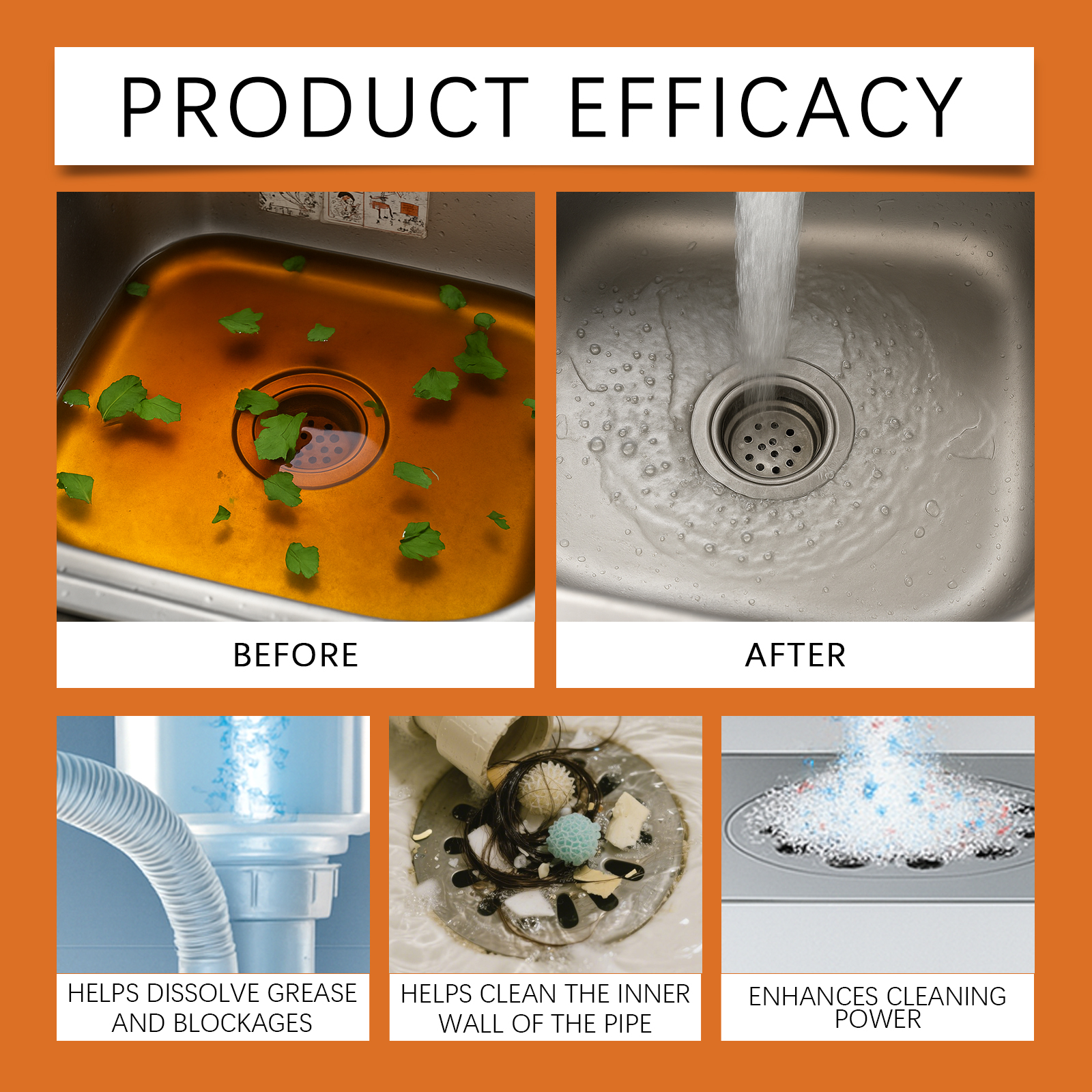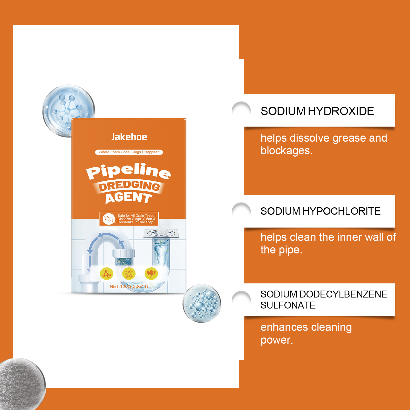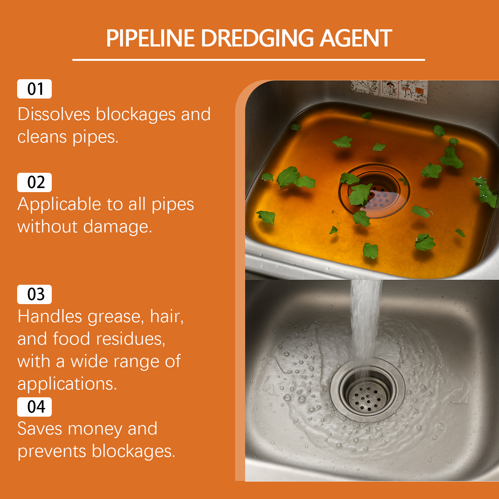 我们的管道清洁粉,由次氯酸钠、柠檬提取物精心调配而成。专为处理各种类型的堵塞设计。使用方法极为便捷:当管道堵塞时,建议使用1-2包;日常清洁时,建议使用1包。在20分钟后用大量清水冲洗。如果疏通不成功,请重复步骤1-2,直到堵塞被清除。倒入疏通剂,然后倒入300亳升40°C的温水。 并且可以轻松简化管道维护,节省精力和便利。