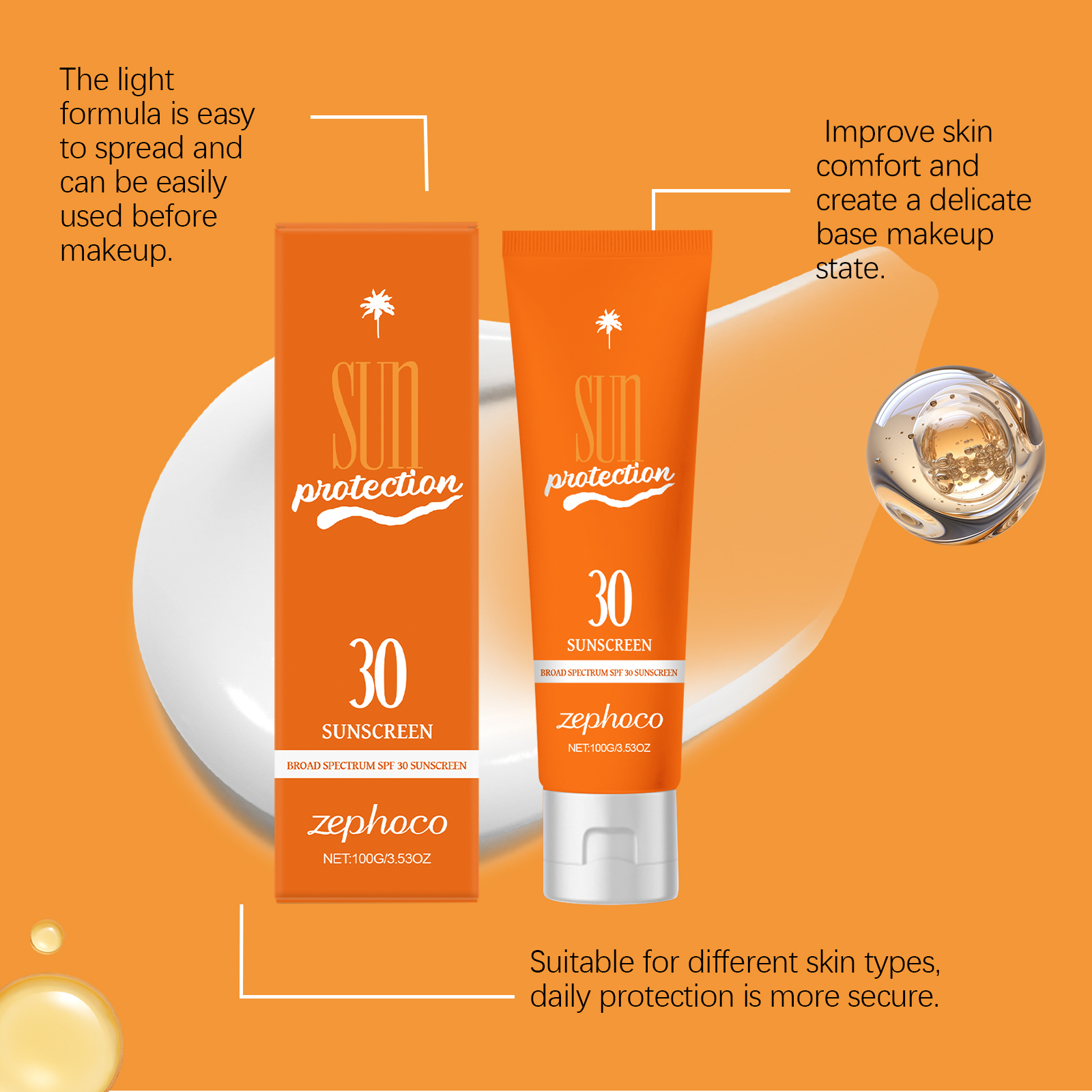 我们的清透防护霜,由甲氧基肉桂酸乙基己酯、二氧化钛精心调配而成。专为提供紫外线防护,保护肌肤免受日晒,滋养肌肤,保持肌肤柔软顺滑设计。使用方法极为便捷:1.在外出前15-20分钟,将防防晒霜均匀涂抹于面部和身体所需防晒部位,按摩至充分吸收,自然成膜即可。2.如需上妆请在妆前使用。若长时间暴露在阳光下需每隔2-3小时重新补涂。并且它的质地轻盈,保湿滋润肌肤,防晒同时帮助维持肌肤光泽。