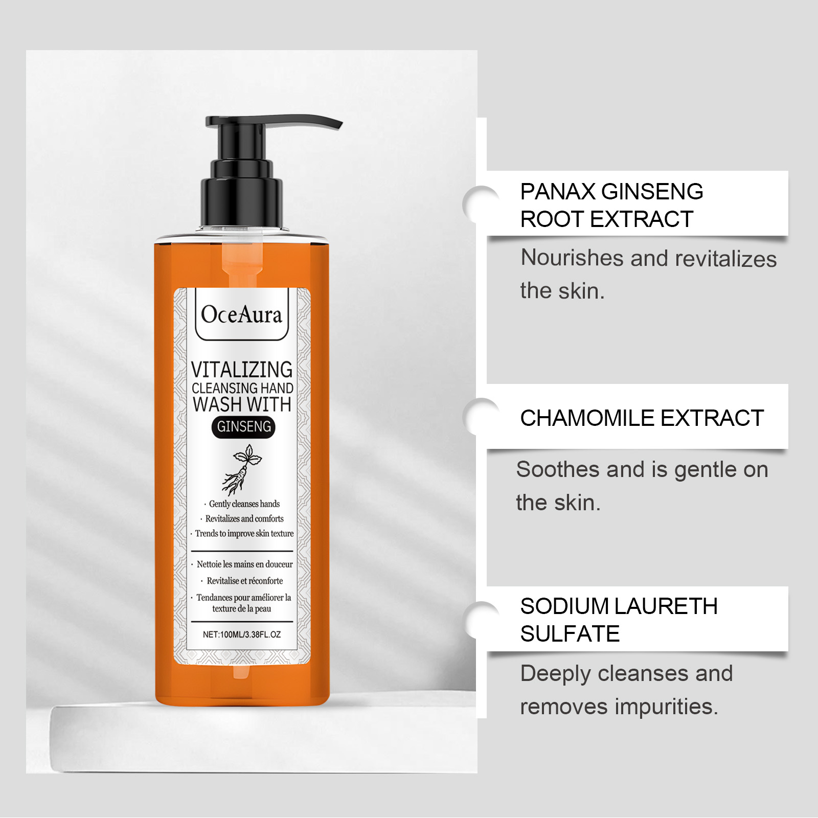 我们的人参洗手液,由人参根提取物、洋甘菊提取物精心调配而成。专为去除手上的污渍并呵护肌肤设计。使用方法极为便捷:用温水湿润皮肤,用适量本产品,搓揉双手起泡,并按摩约1-2分钟。用清水冲洗。并且可以使皮肤保持水润,不会感到紧绷,使其柔软和柔韧。