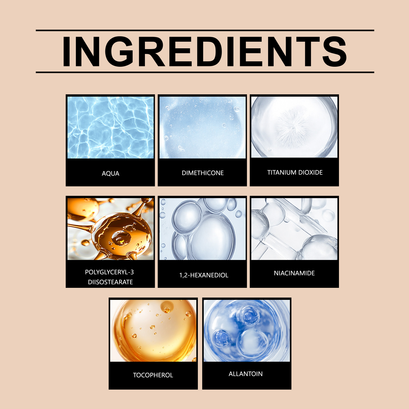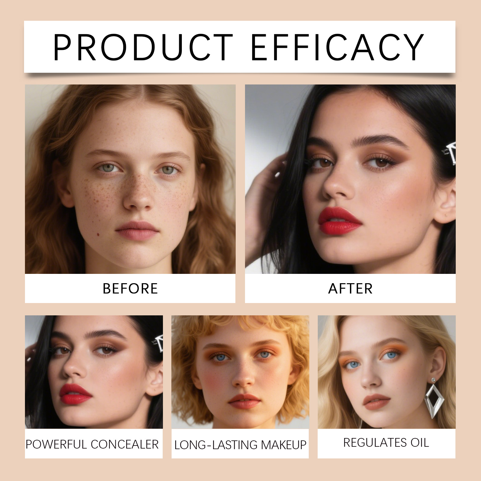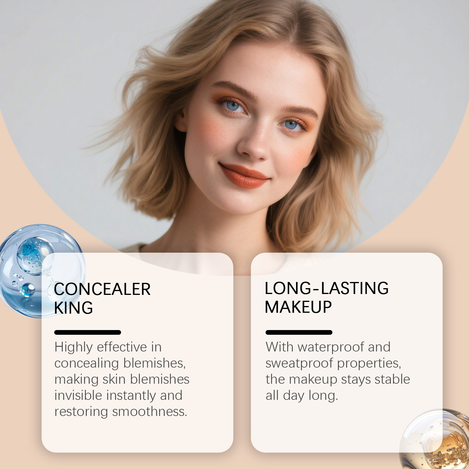 我们的持效液体遮瑕膏,由聚二甲基硅氧烷、二氧化钛精心调配而成。专为精准覆盖瑕疵,让肌肤表面更显均匀细腻设计。使用方法极为便捷:1. 完全清洁肌肤并干燥。2. 用自带刷头取适量遮瑕膏,点涂在瑕疵处。3. 用手或者粉扑轻拍,让遮瑕边缘与肌肤自然过渡。并且它可以具备防水防汗特性,持妆状态稳定,不易脱妆花妆,帮助提亮肤色,同时调节肌肤油脂分泌,保持清爽平衡。