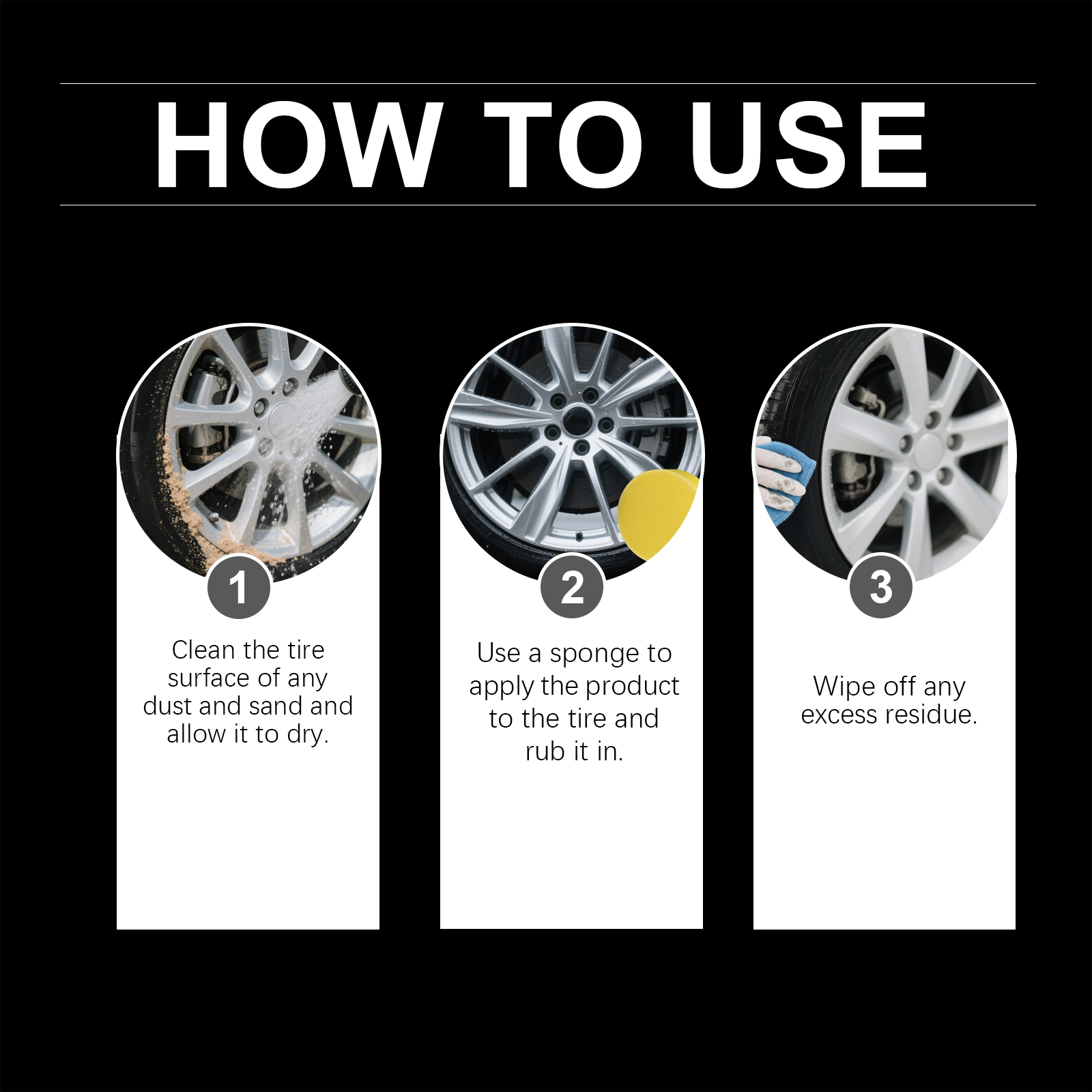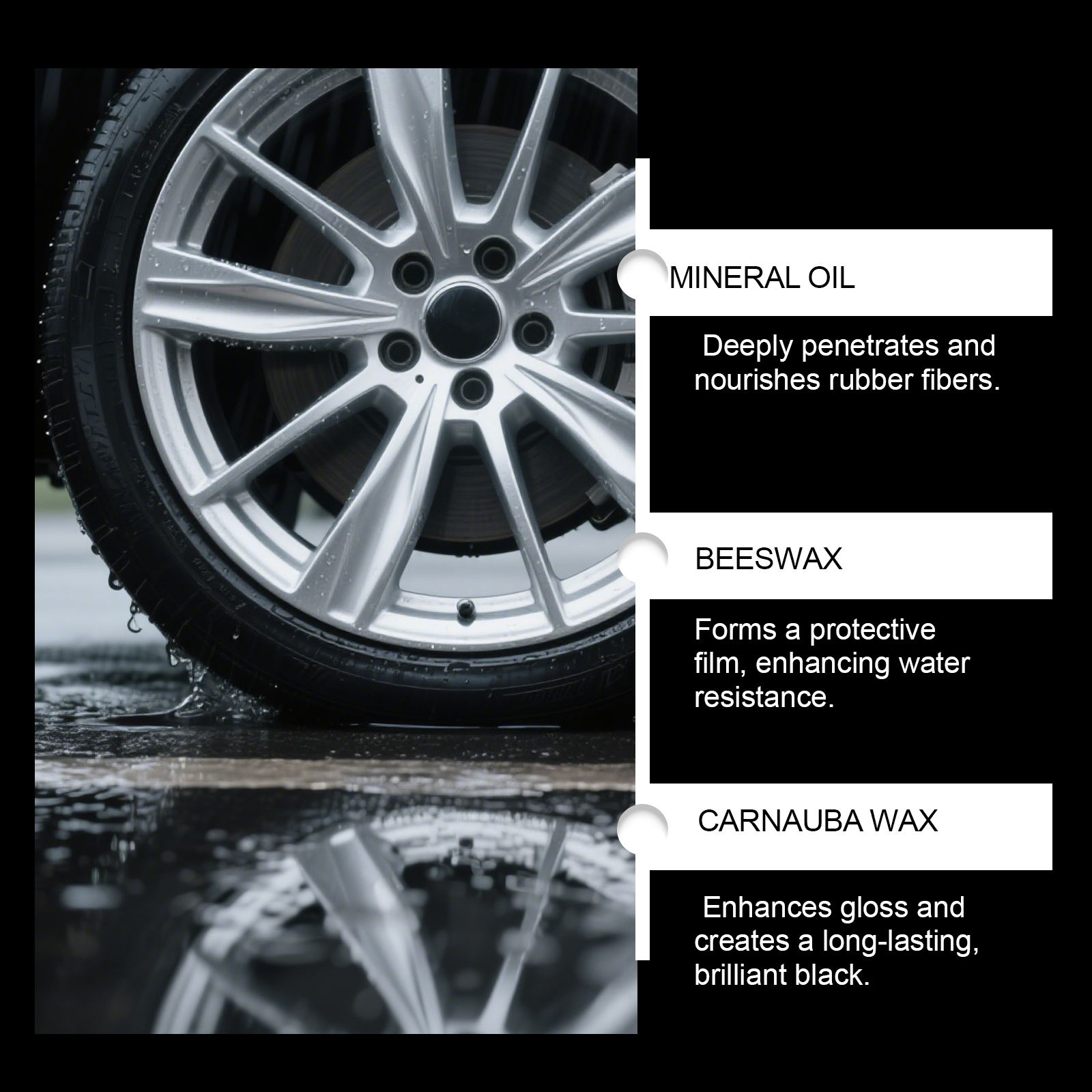 我们的汽车轮胎翻新护理膏,由矿油、矿脂精心调配而成。专为减少轮胎对环境的损害设计。使用方法极为便捷:清除轮胎表面的灰尘和沙子,并让其干燥。用海绵将产品涂抹在轮胎上并揉搓。擦掉多余的残留物。并且可以恢复轮胎的深色、暗色和光泽表面。