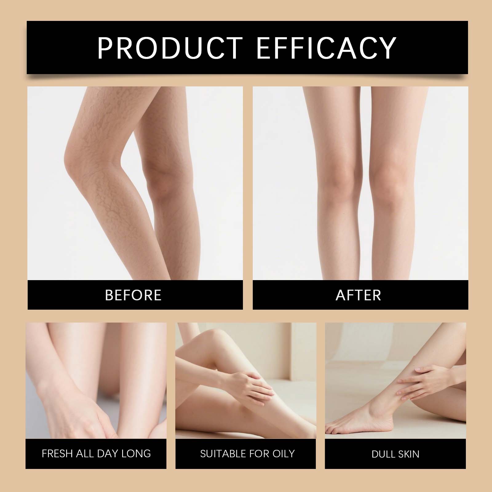 我们的深肤色腿部遮瑕粉底霜,由聚二甲基硅氧烷、二氧化钛精心调配而成。专为均匀修饰腿部肤色,遮盖肌肤细小瑕疵设计。使用方法极为便捷:1.清洁并干燥腿部肌肤。2.取适量本品点涂在腿部肌肤上,均匀推开涂抹。并且它可以提升腿部肌肤光泽感,保持肌肤水润状态。