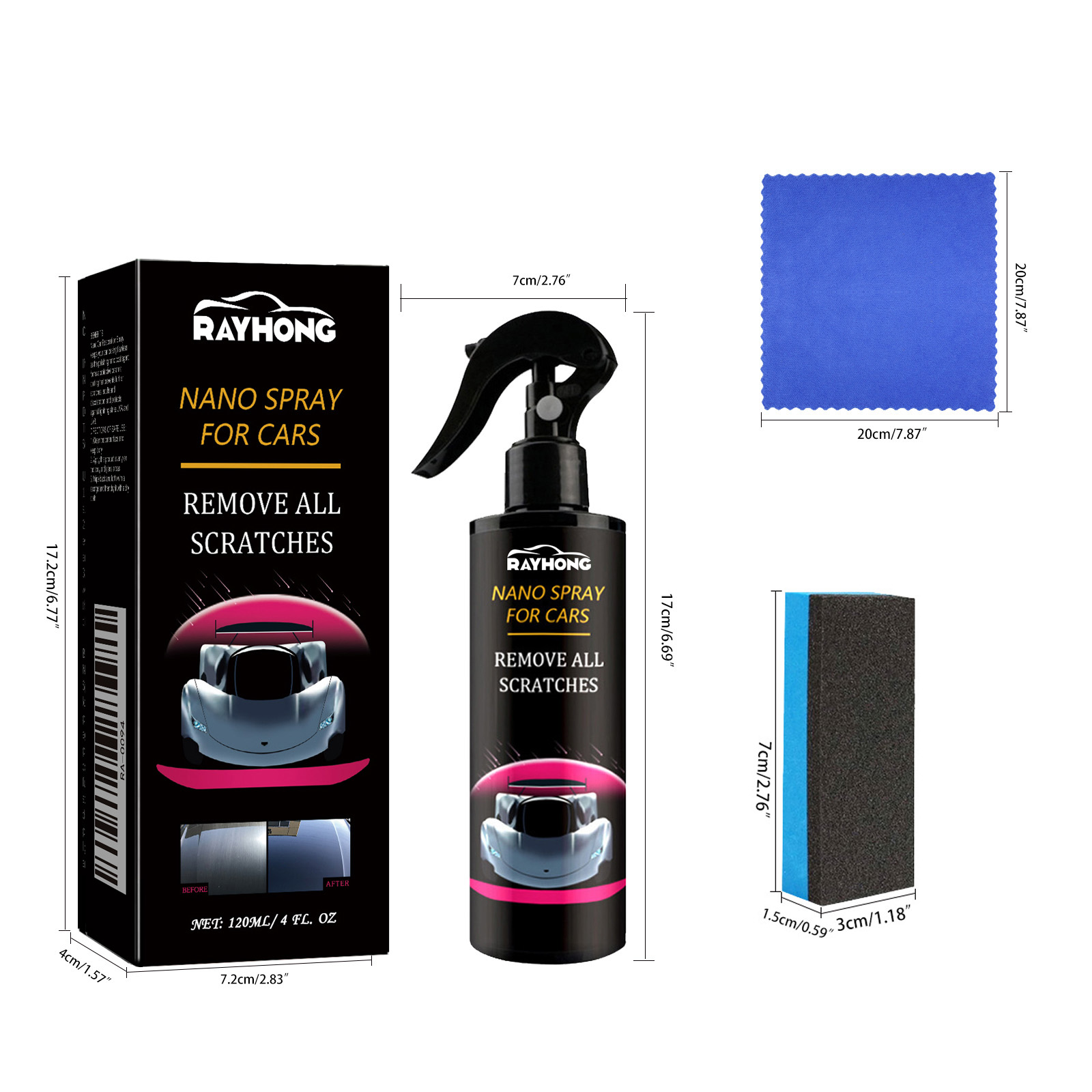 我们的汽车镀膜剂(120ml盒装)含有去离子水、玻璃纤维素。它可以恢复汽车油漆的光泽和光泽。它的使用方法很简单:先清洁你的车,再均匀喷在划痕处,然后用布或毛巾擦拭,可以回到原来的完美状态。并且可以修理汽车划痕。