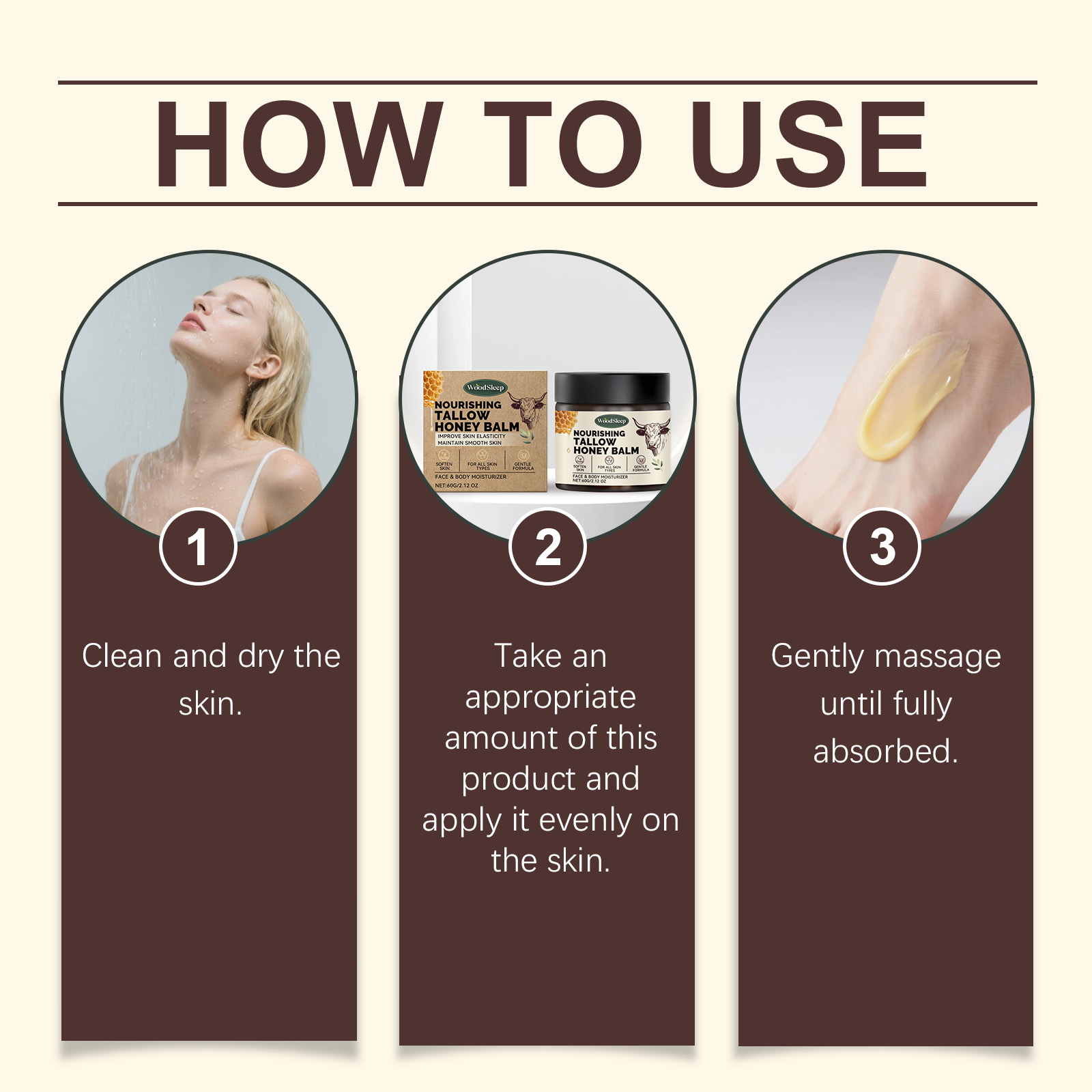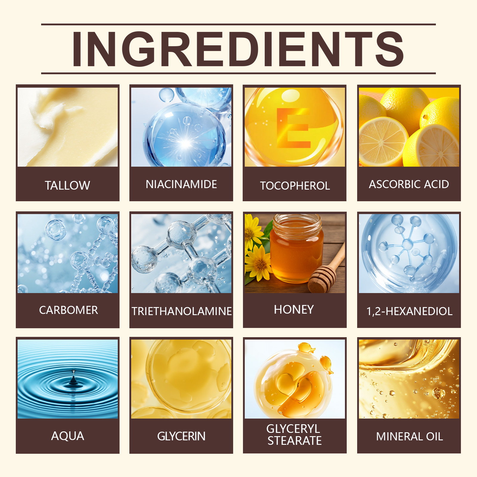 我们的牛脂蜂蜜护肤霜,由甘油、矿物油精心调配而成。专为深层滋养肌肤,缓解干燥不适,帮助锁住水分,提升肌肤润泽感设计。使用方法极为便捷:1.清洁并干燥皮肤。2.取适量本品均匀地涂抹在皮肤上。3.轻轻按摩直至吸收。并且它可以改善肌肤粗糙,使触感更柔滑,温和呵护,适合多种肌肤类型。