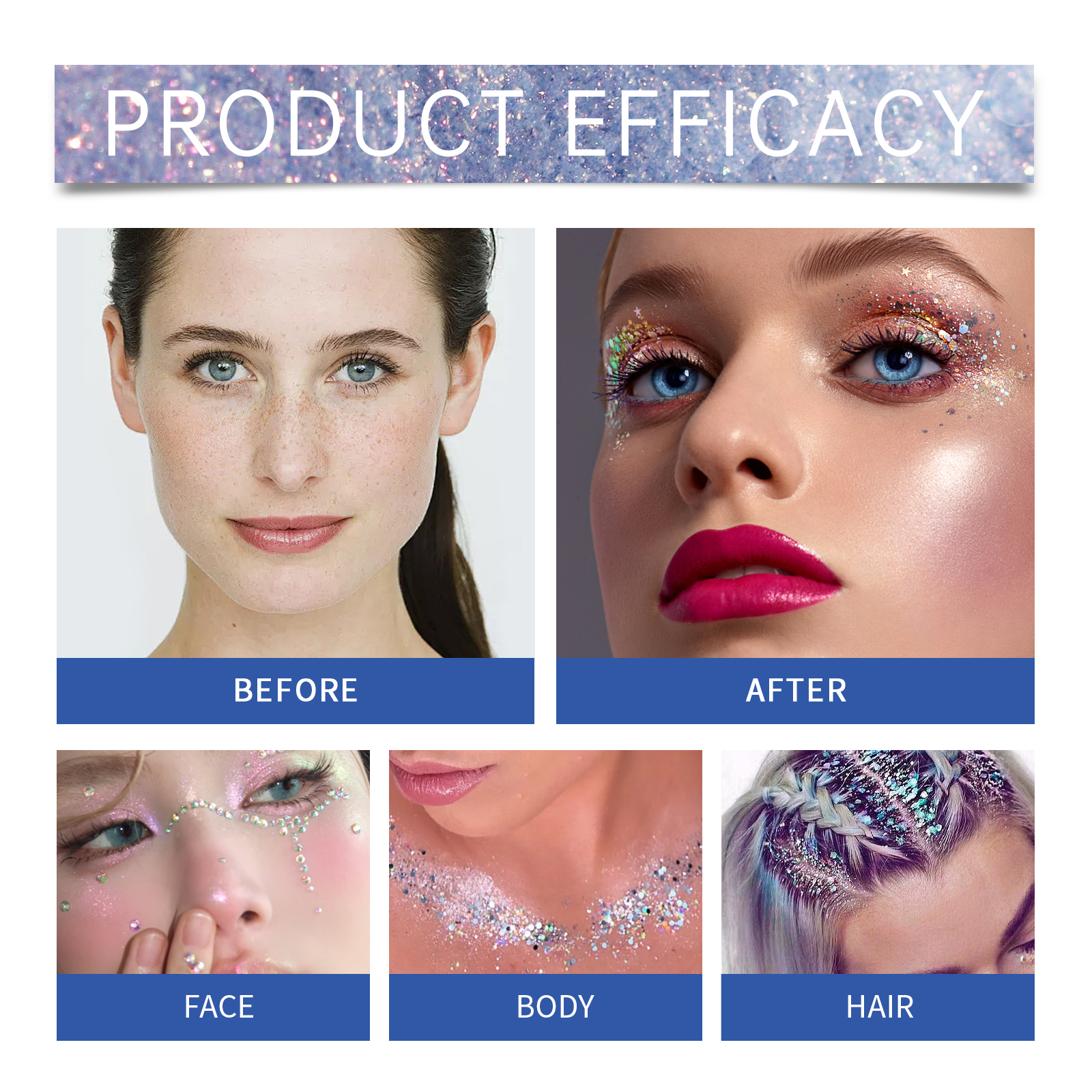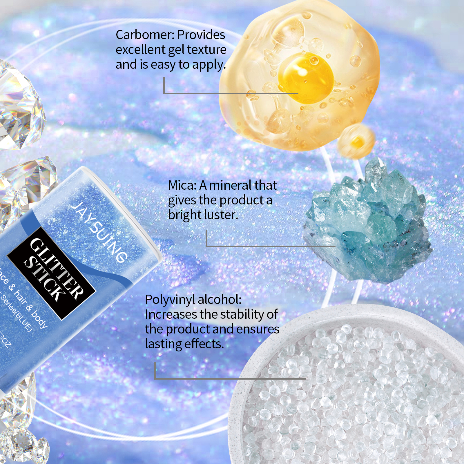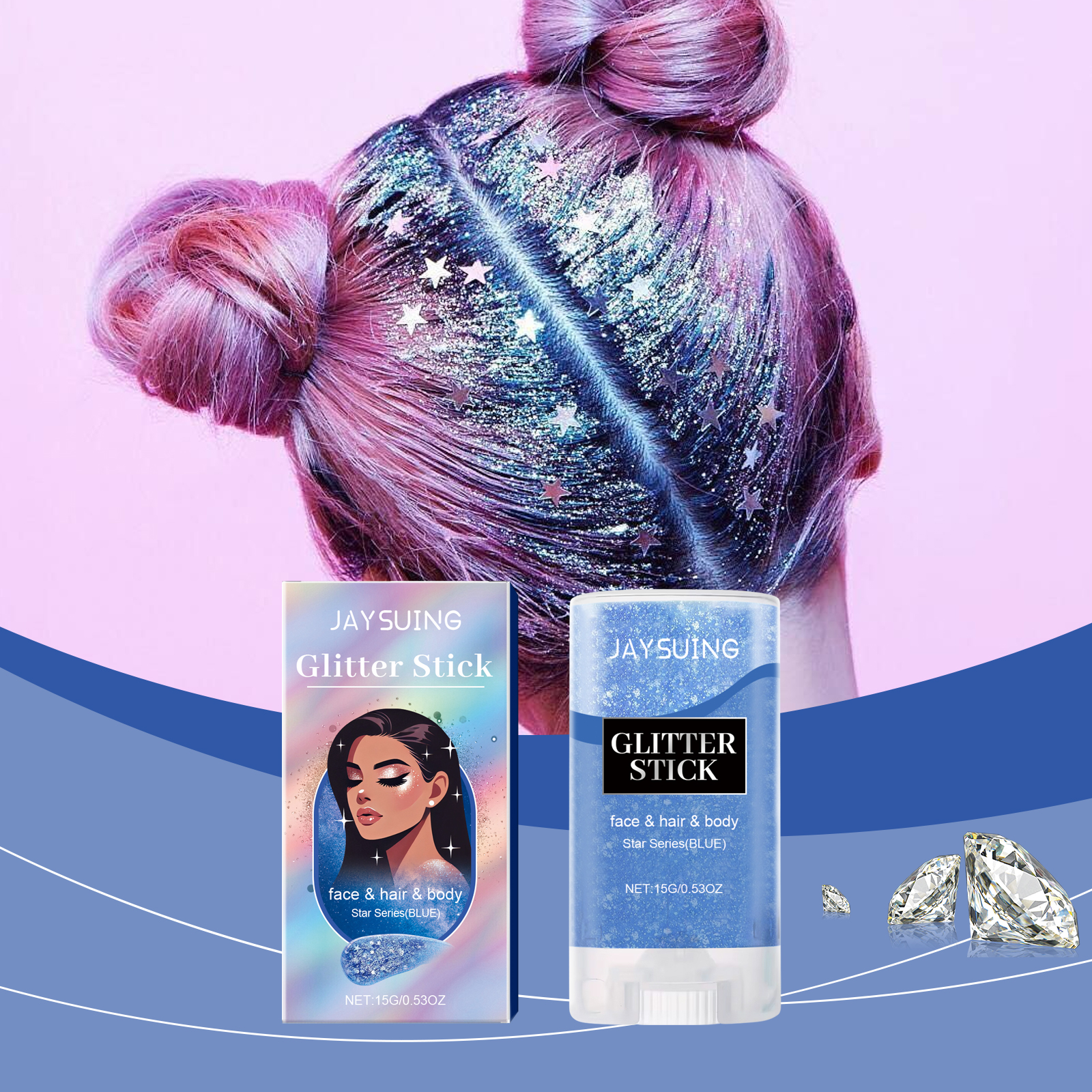 我们的亮片闪光棒(蓝色),由甘油、卡波姆、云母精心调配而成。专为增加皮肤光泽,让亮片长时间保持闪亮和迷人设计。使用方法极为便捷:1.打开盖子,旋转顶部旋钮,拧开膏体;2.将亮片棒直接均匀涂抹在身体、头发、脸部,包括眼周皮肤等你想要装饰的部位。并且加入闪亮的云母,瞬间提升你的个人魅力;适合各种社交场合,适合敏感肌肤。