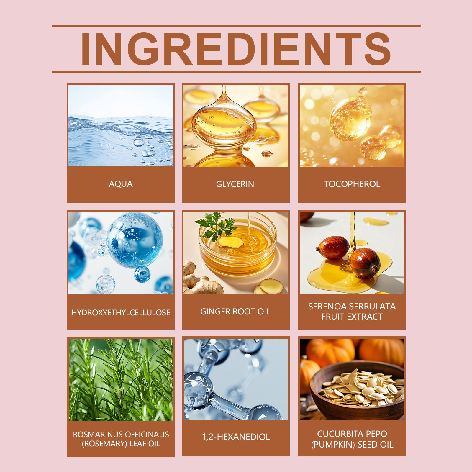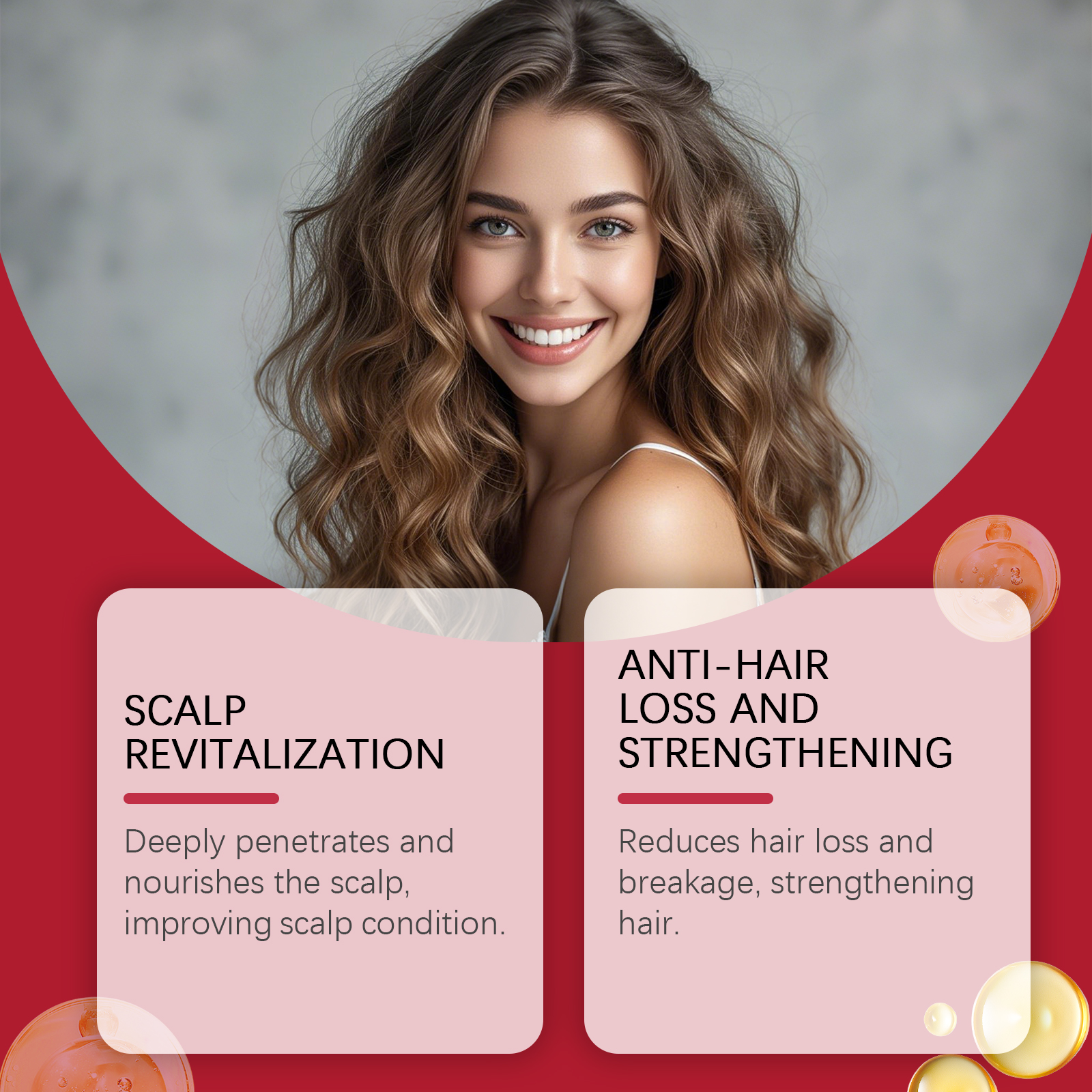 我们的滋养护发精华液 ,由迷迭香叶油、南瓜籽油精心调配而成。专为深层渗透并滋养头皮,改善头皮状况设计。使用方法极为便捷:1.完全清洁头发和头皮并干燥。2.向上拔开精华液瓶盖,做好取用准备。 3.将尖嘴头卡紧在瓶口,确保安装稳固。 4.将尖嘴头对准头皮位置,取出适量精华液,均匀涂抹后用指腹轻柔按摩3-5分钟。 并且可减少脱发和断裂,强化头发。