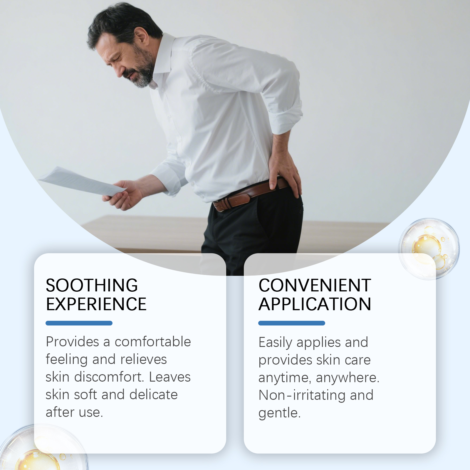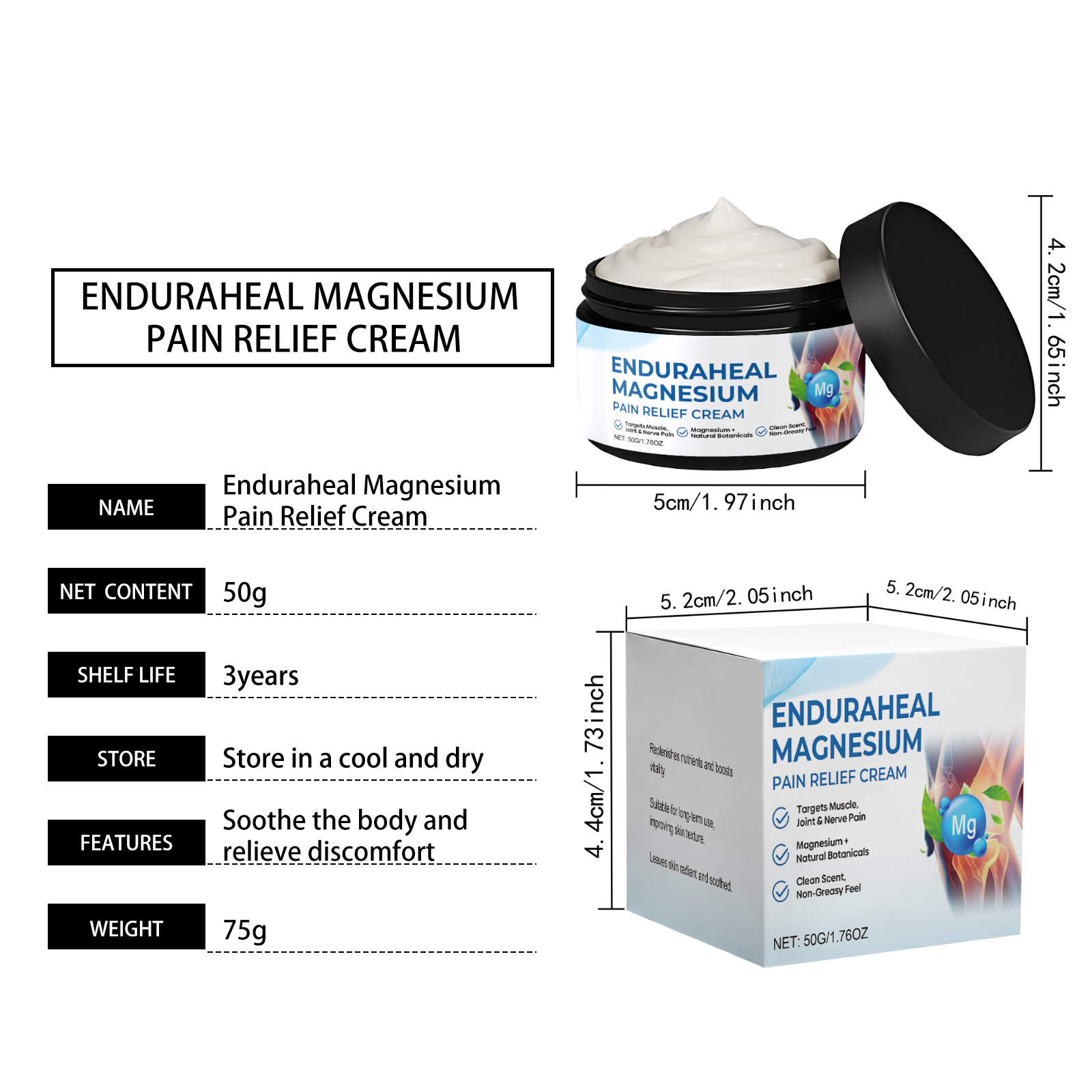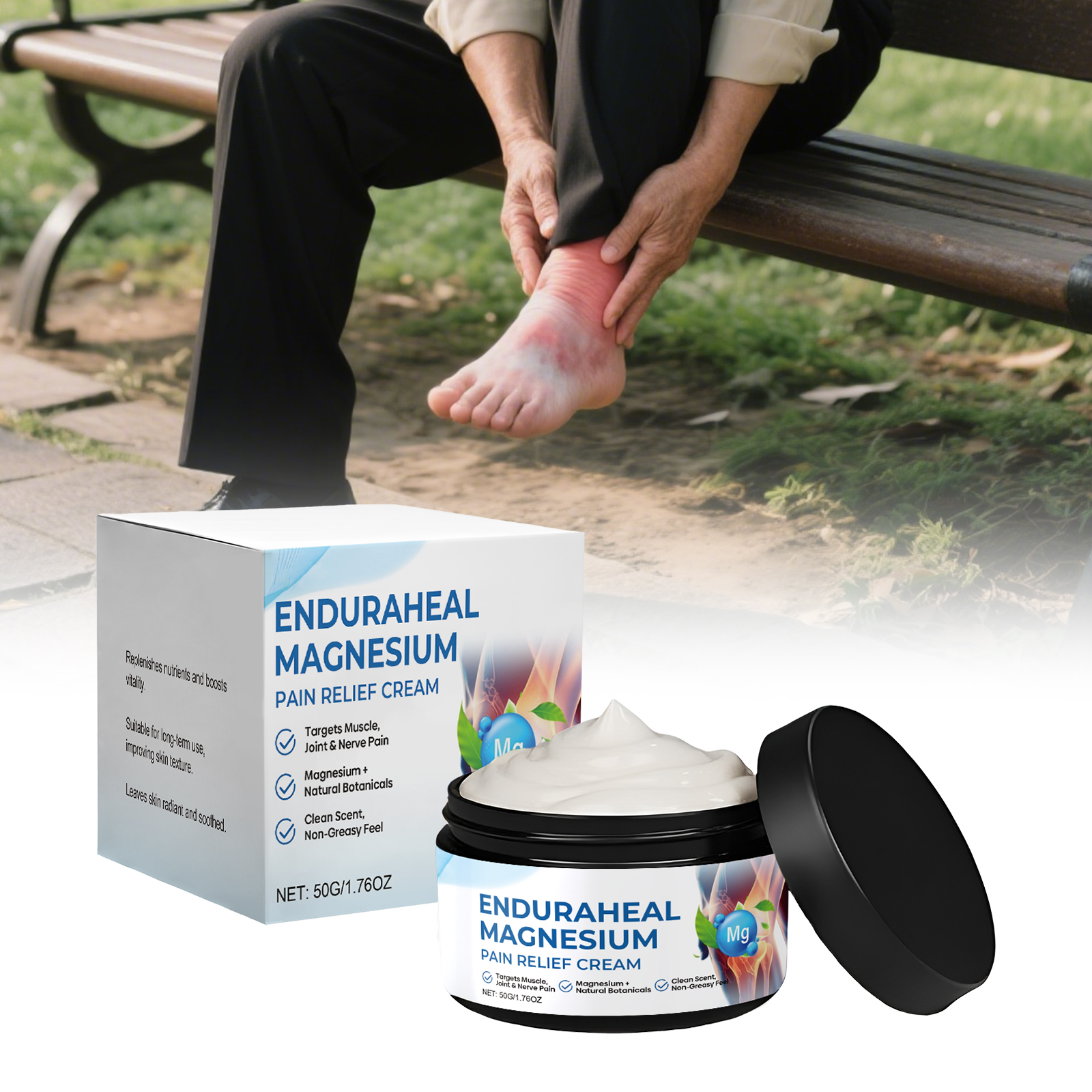 我们的关节护理镁霜,由甘油、矿油、甘油硬脂酸酯精心调配而成。专为改善血液流动,减少肿胀并提供温暖、放松的效果设计。使用方法极为便捷:清洁皮肤并干燥,取适量本品涂抹在疼痛患处并轻轻按摩促进吸收。并且它可以缓解神经疼痛和刺痛感,深层滋润肌肤,促进修复皮肤屏障。