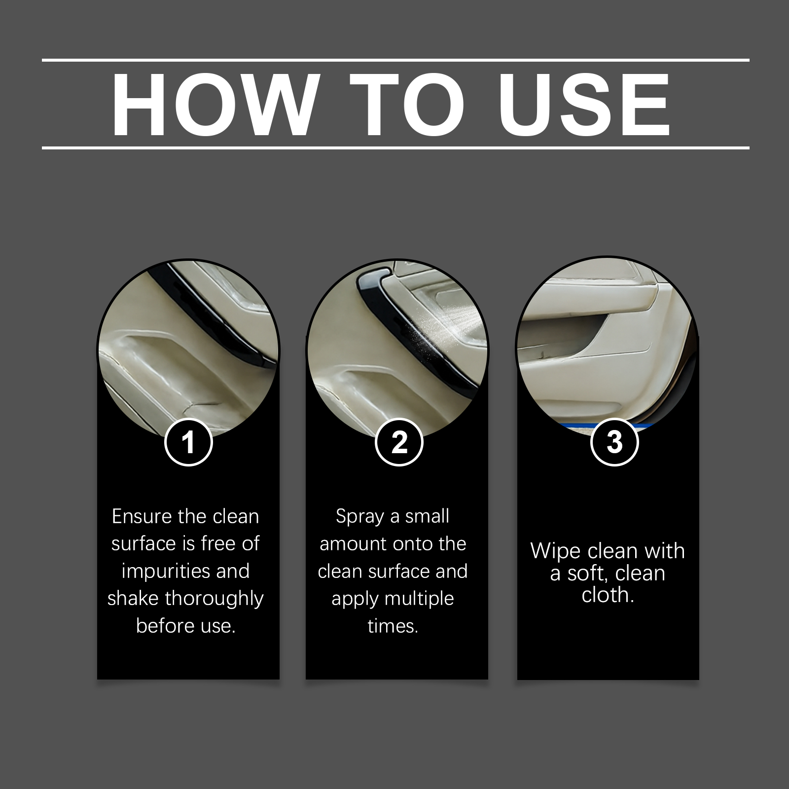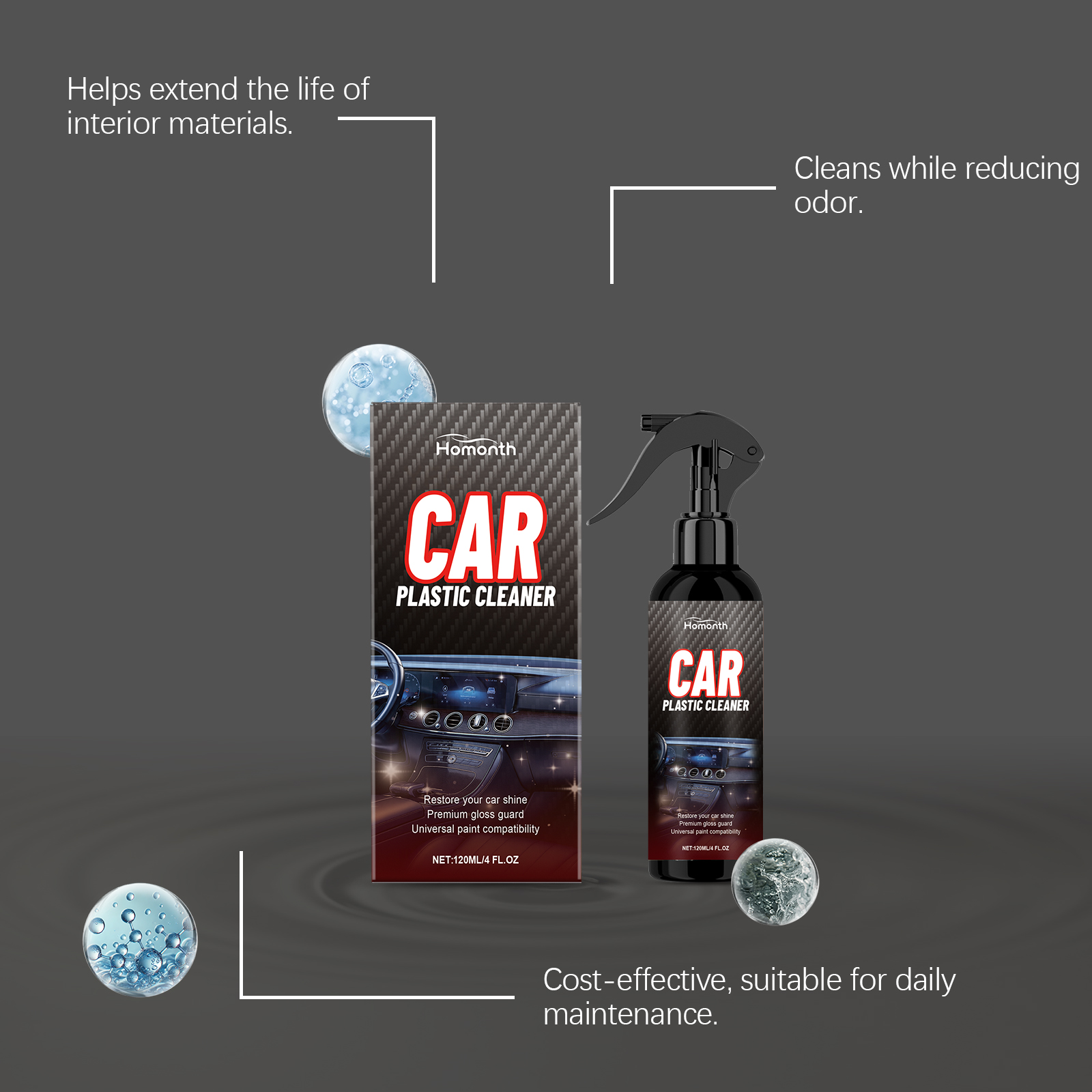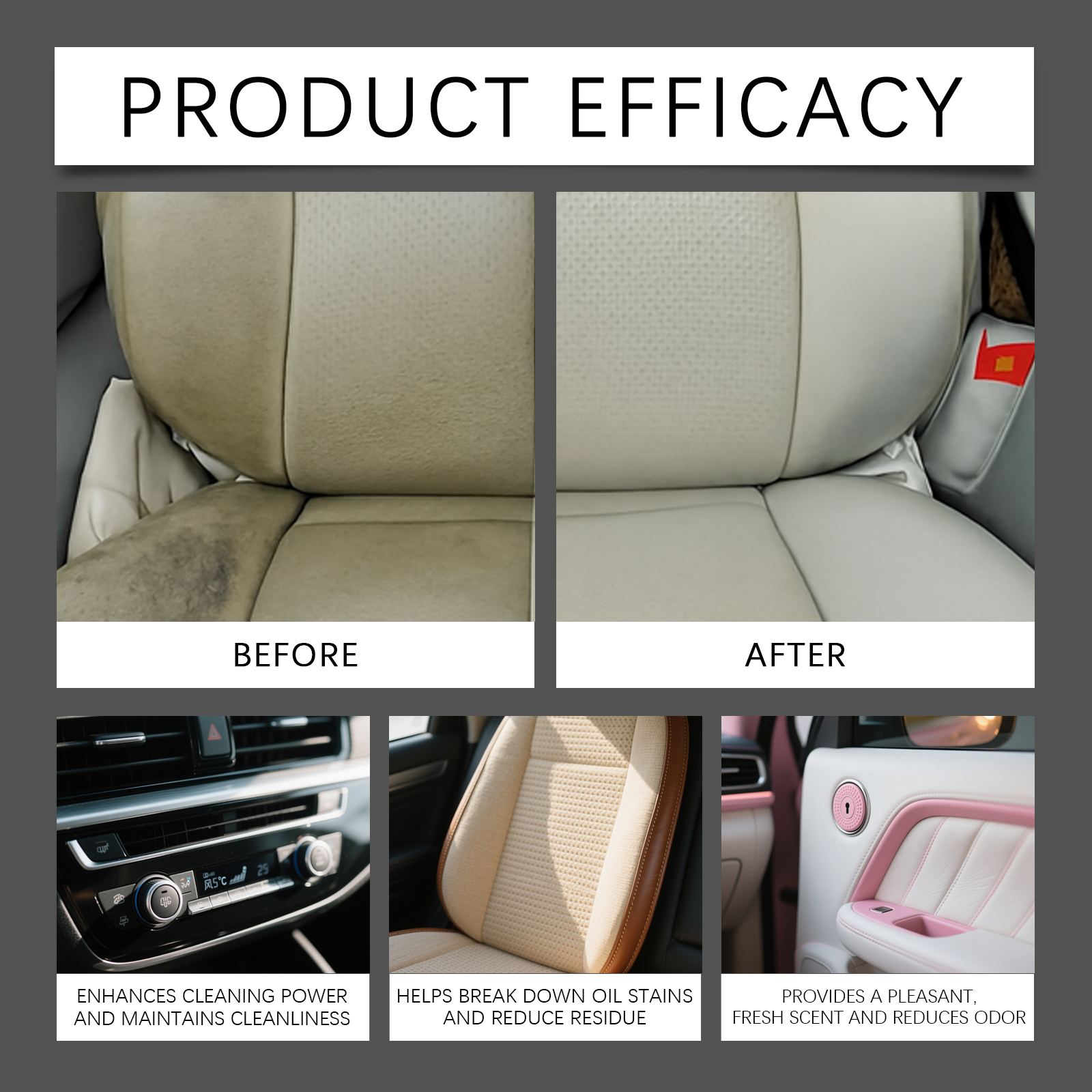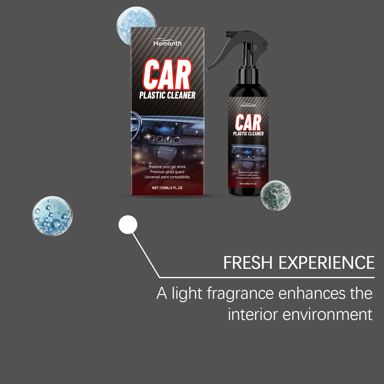 我们的汽车内饰清洁喷雾,由月桂醇聚醚硫酸酯钠、异构醇聚氧乙烯醚精心调配而成。专为快速分解污渍并恢复内饰清洁设计。使用方法极为便捷:确保清洁表面无杂质,并在使用前充分摇匀,在干净的表面上喷少量并多次涂抹,用柔软的干净布擦拭干净。并且对皮革、塑料和其他材料温和。