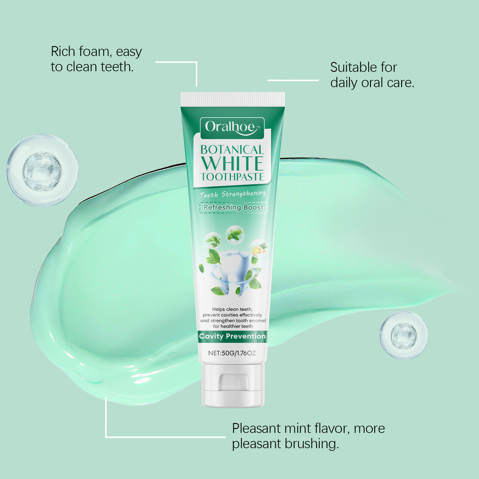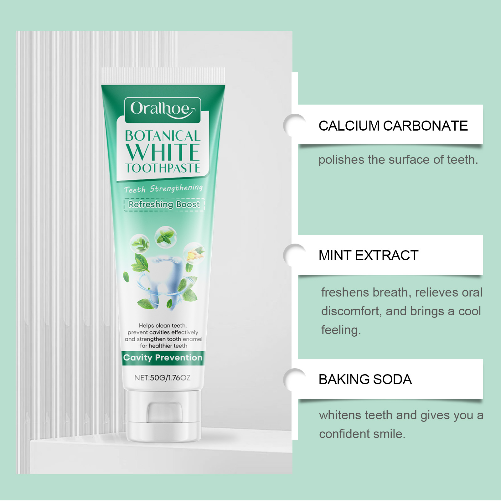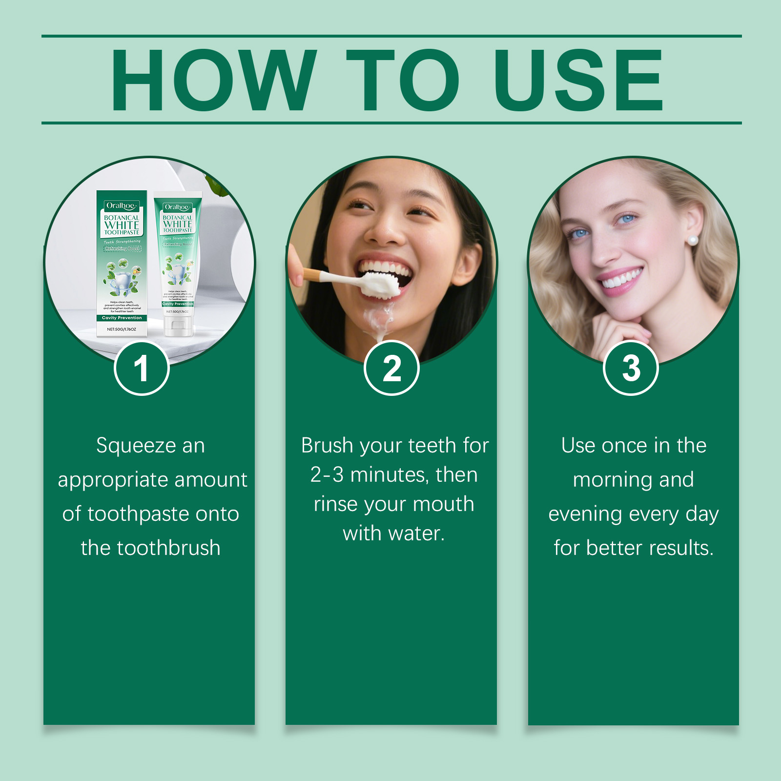 我们的牙膏,由薄荷提取物、小苏打精心调配而成。专为逐渐提亮牙齿的颜色设计。使用方法极为便捷:在牙刷上挤出适量的牙膏。刷牙2-3分钟,然后用清水漱口,每天早晚各使用一次,以获得更好的效果。并且可以长时间保持口腔清新。