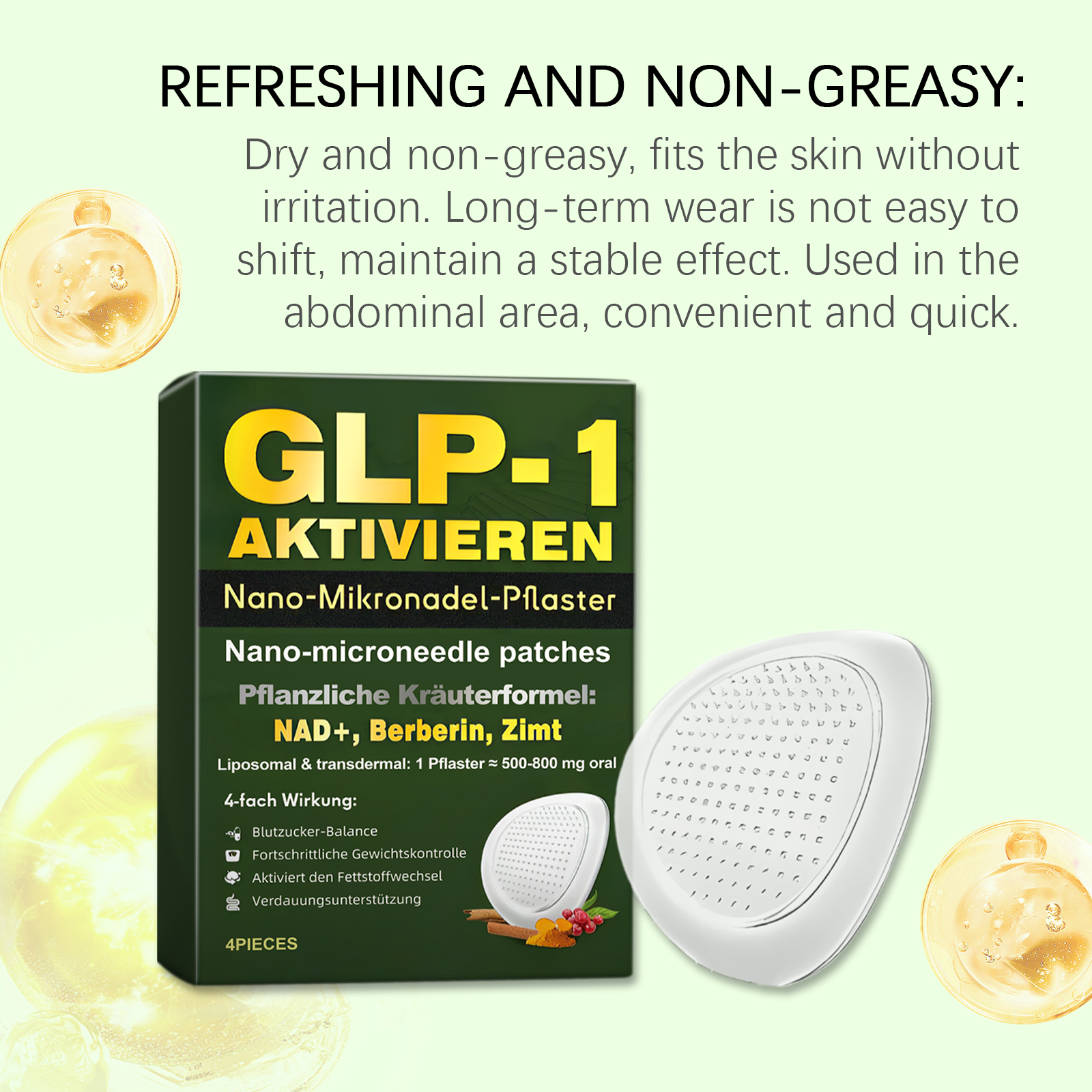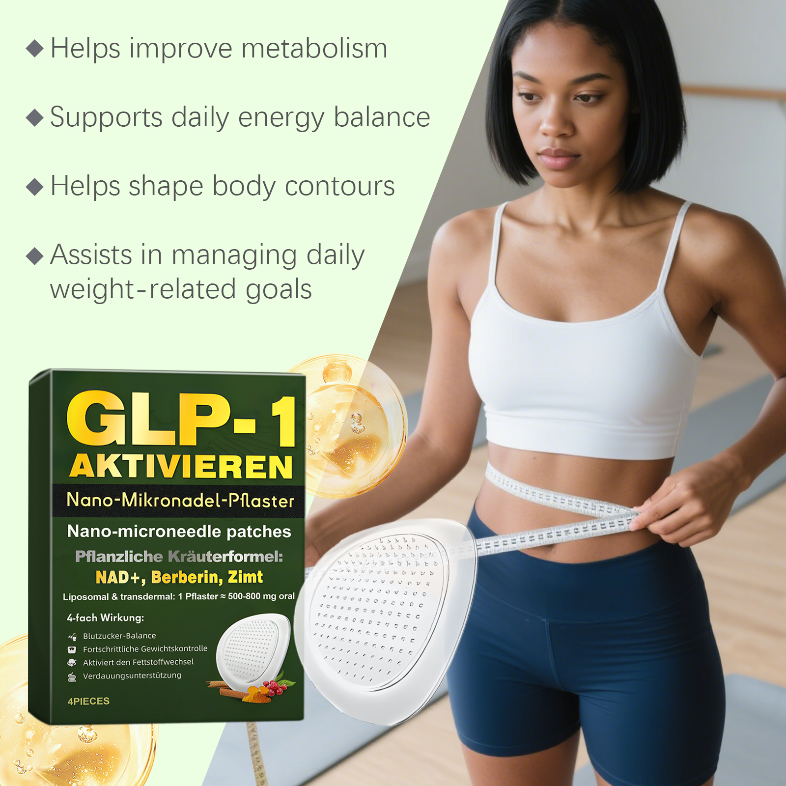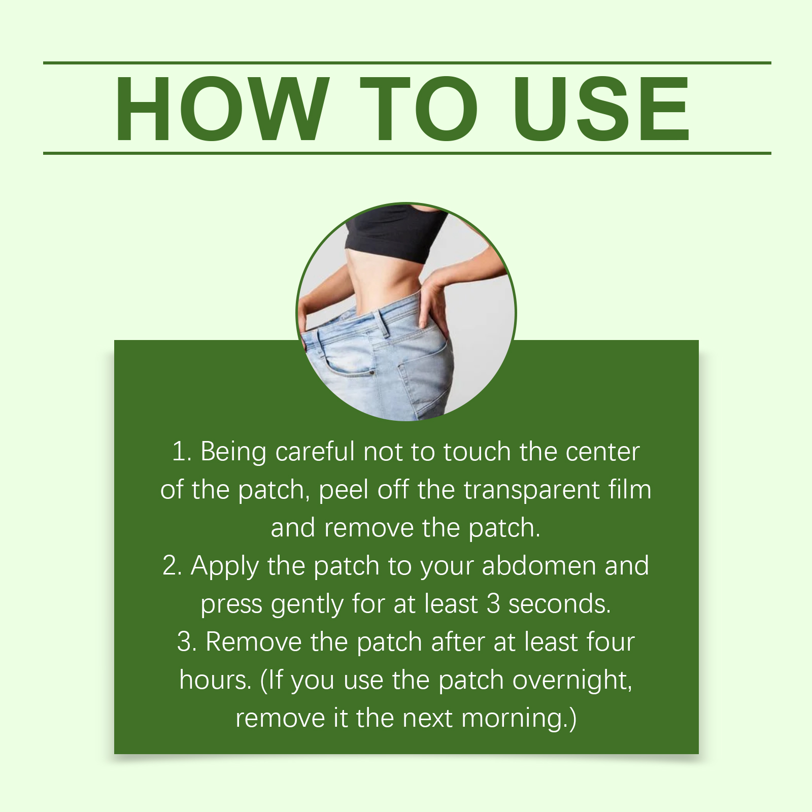 我们的身体护理贴,由甘油、羟乙基纤维素精心调配而成。专为助于减少体内脂肪,促进食欲控制,改善肥胖引发的皮肤松弛设计。使用方法极为便捷:1.注意不要触碰贴片的中心,撕掉透明薄膜并取下贴片。2.将贴片贴在腹部并轻轻按压至少 3 秒钟。3.至少四小时后取下贴片。(如果您整夜使用该贴片,请在第二天早上将其取下。)并且它可以改善淋巴水肿下垂,紧致肌肤,植物精粹助力血糖平衡和体态管理。