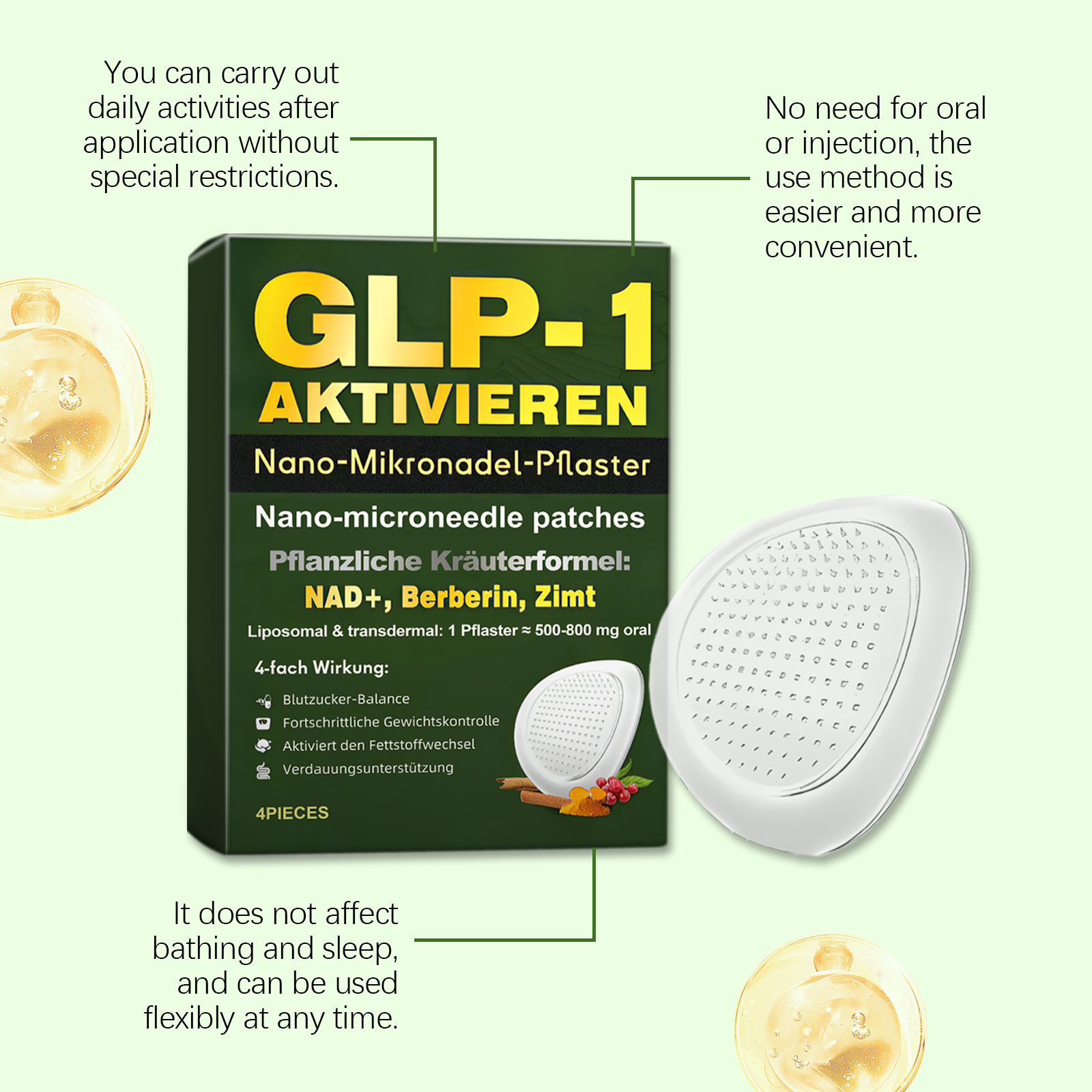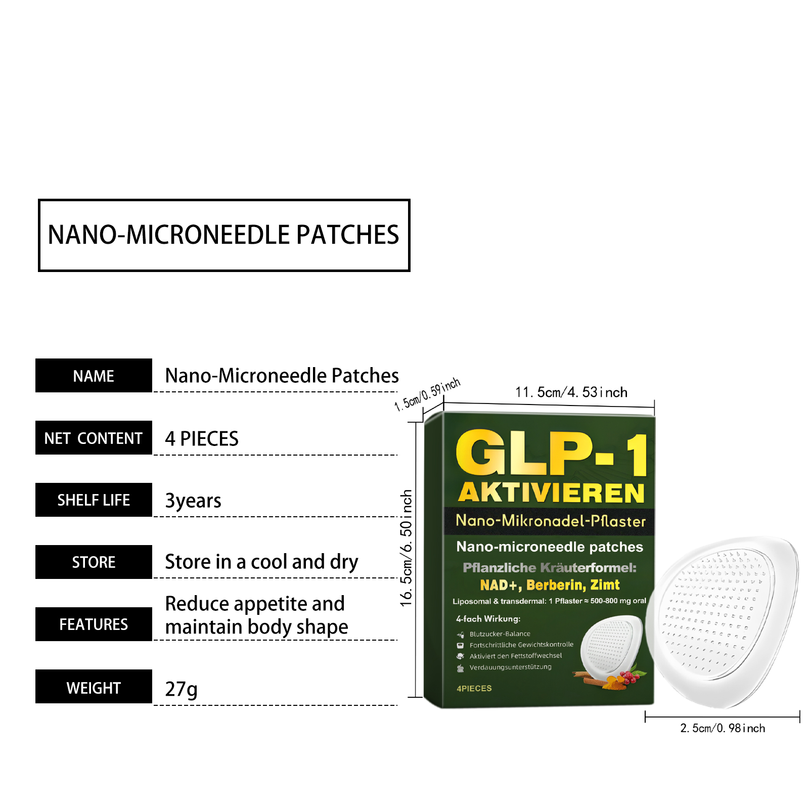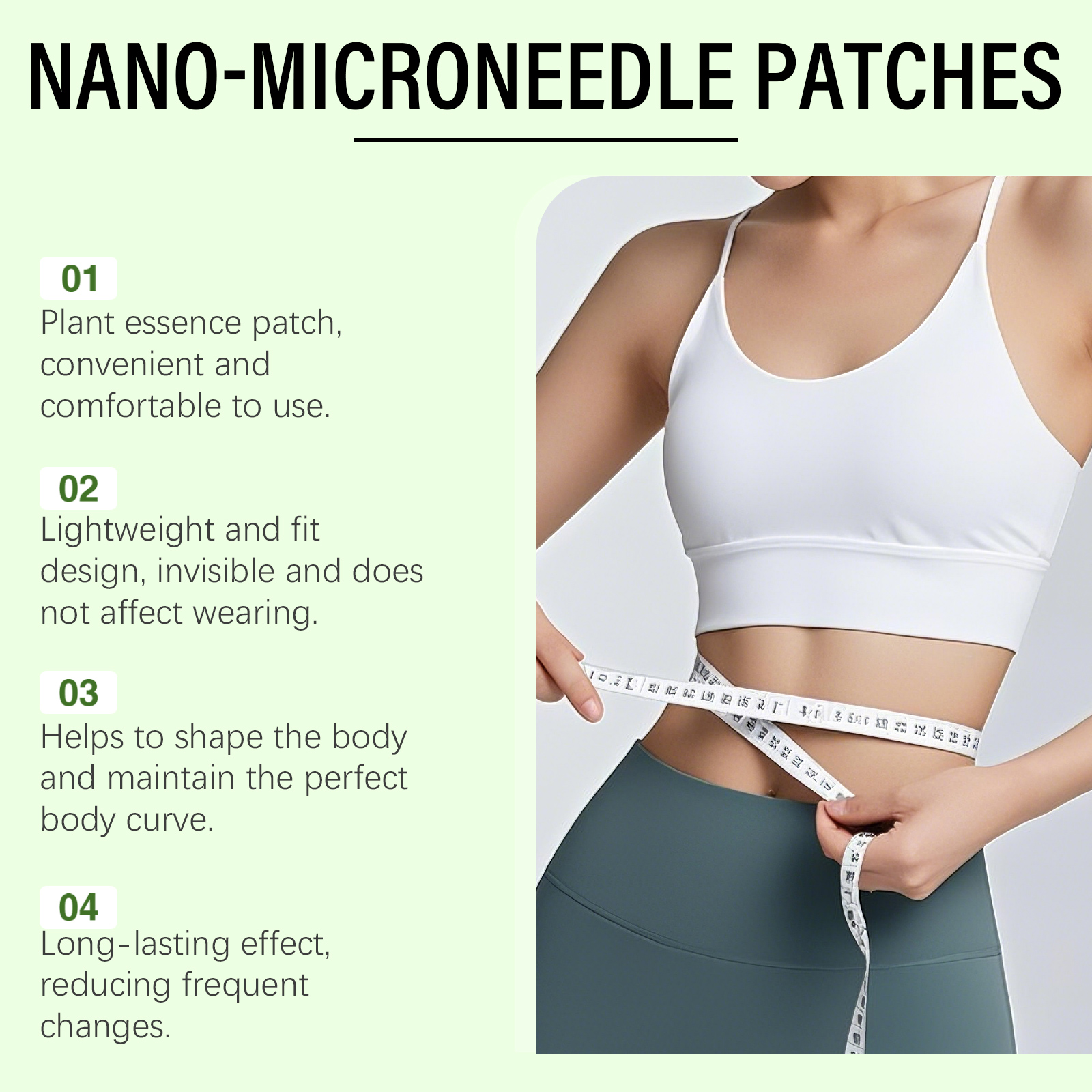 我们的身体护理贴,由甘油、羟乙基纤维素精心调配而成。专为助于减少体内脂肪,促进食欲控制,改善肥胖引发的皮肤松弛设计。使用方法极为便捷:1.注意不要触碰贴片的中心,撕掉透明薄膜并取下贴片。2.将贴片贴在腹部并轻轻按压至少 3 秒钟。3.至少四小时后取下贴片。(如果您整夜使用该贴片,请在第二天早上将其取下。)并且它可以改善淋巴水肿下垂,紧致肌肤,植物精粹助力血糖平衡和体态管理。