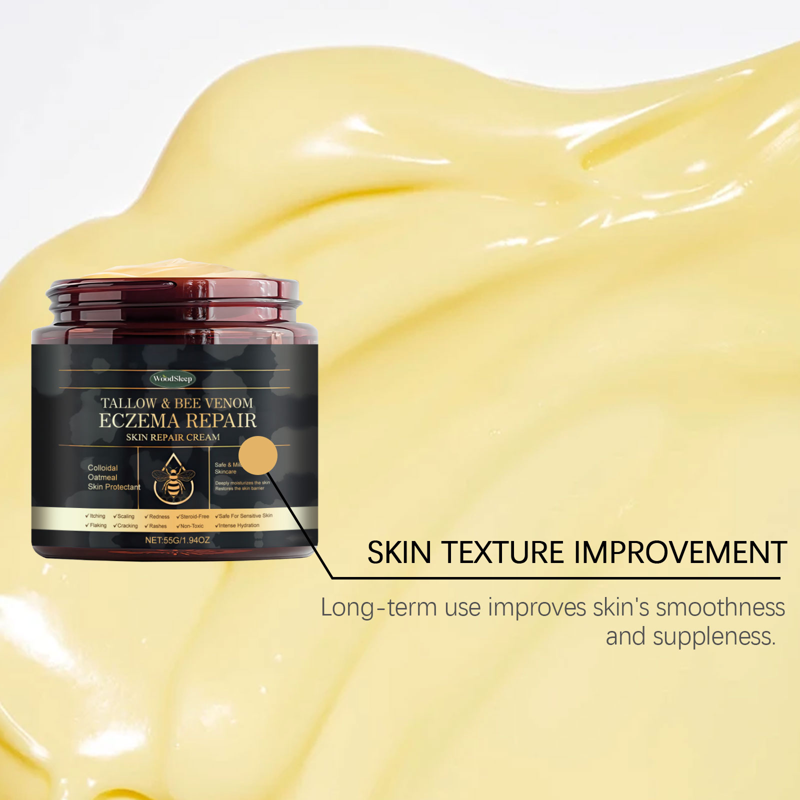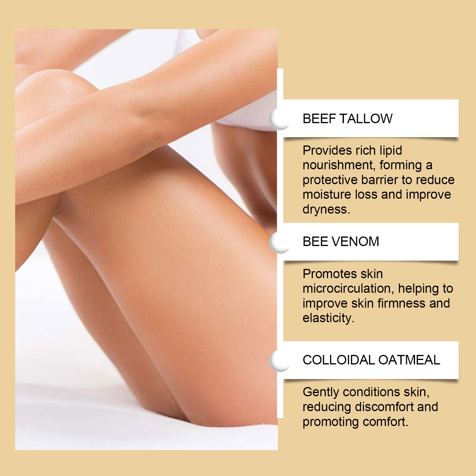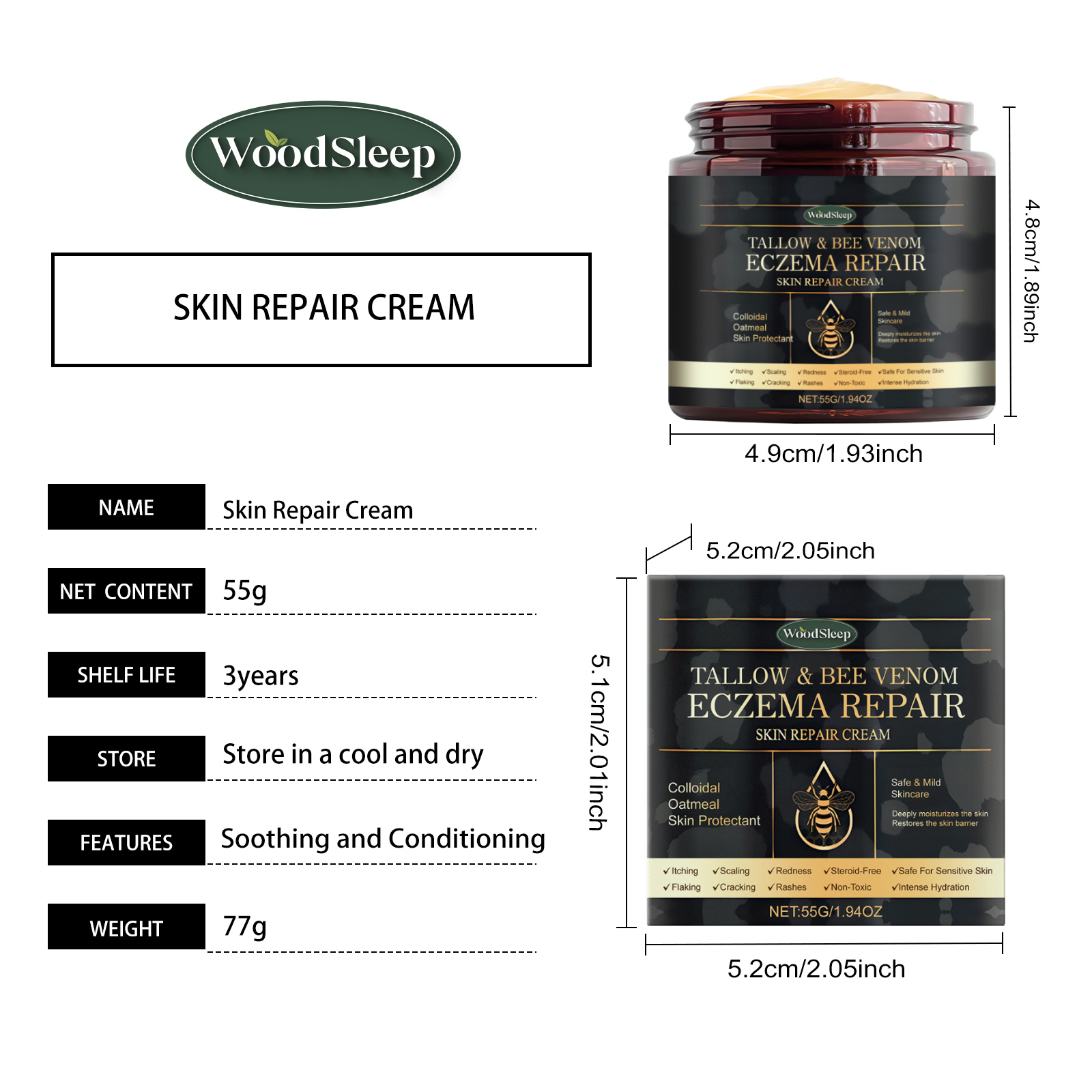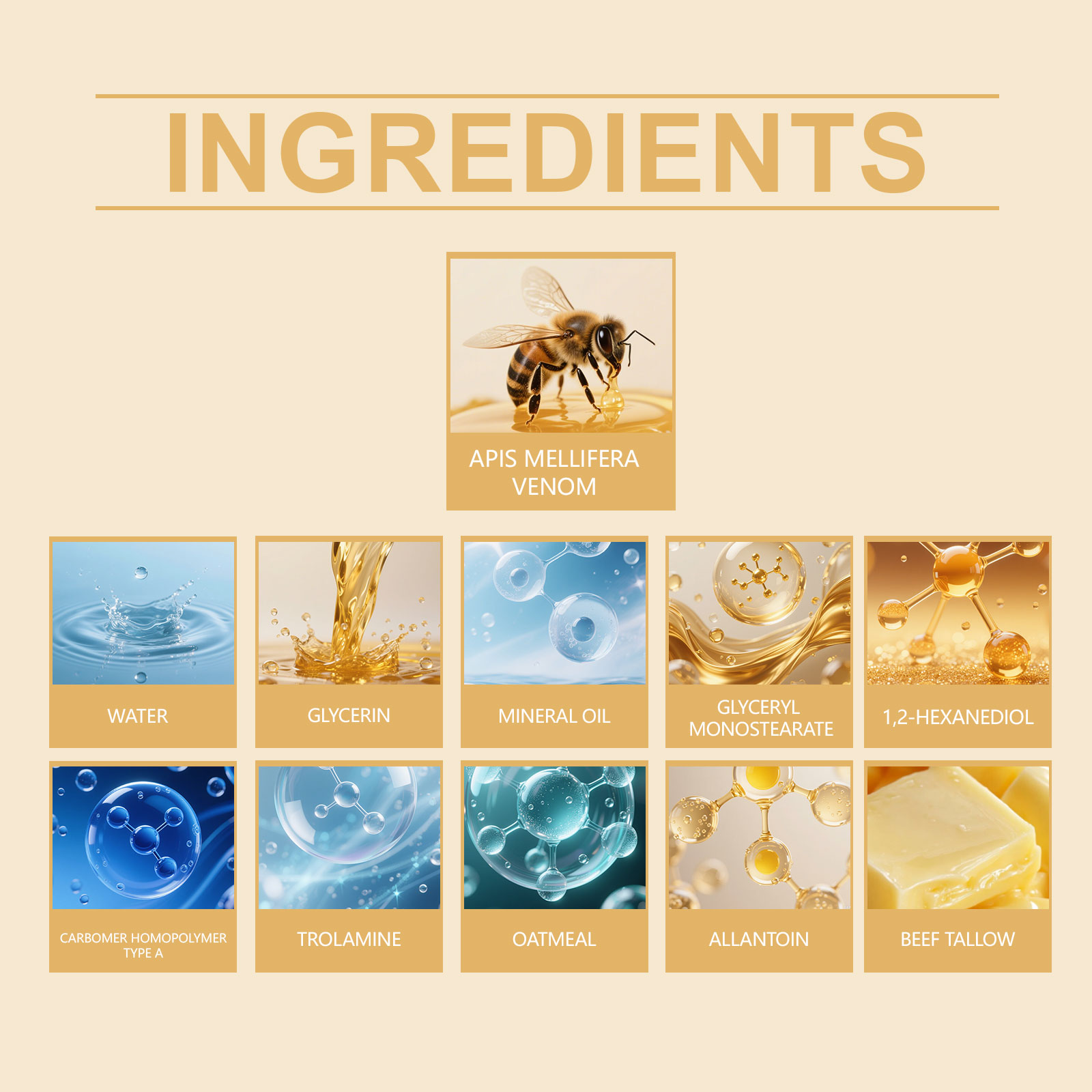我们的皮肤护理霜,由牛脂、蜂毒精心调配而成。专为修复肌肤屏障设计。使用方法极为便捷:清洁肌肤并保持干燥,取适量本品均匀涂抹在有湿疹、细纹等受影响的肌肤上,轻柔按摩直至吸收。并且它可以缓解神经性皮炎、痤疮粉刺、皮炎、脂溢性皮炎、毛囊炎、热疹疤痕、顽固的黑斑、细纹、皮肤老化、疣、粉刺和、其他皮肤问题。