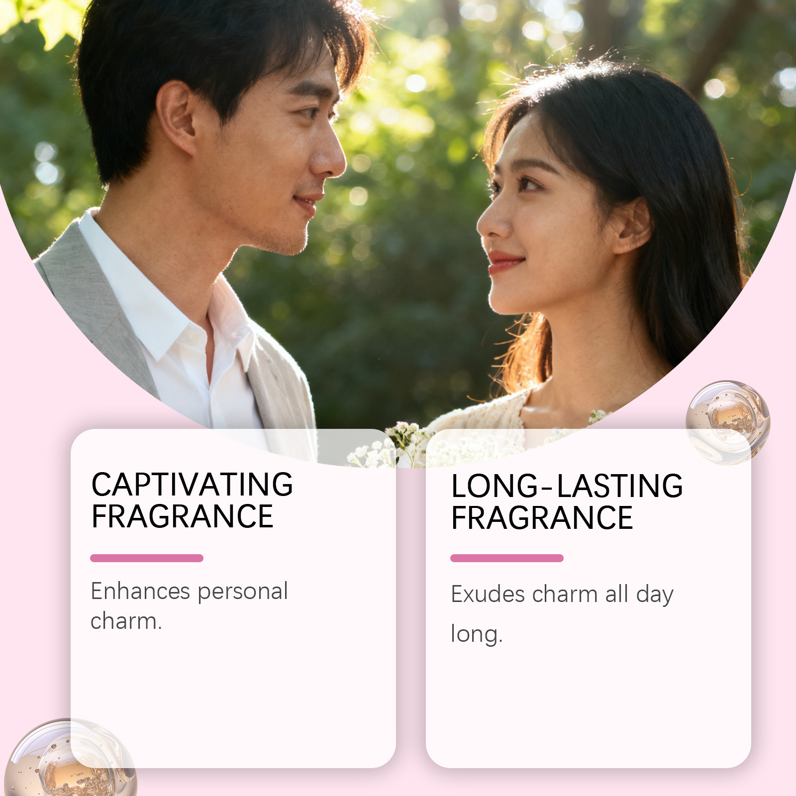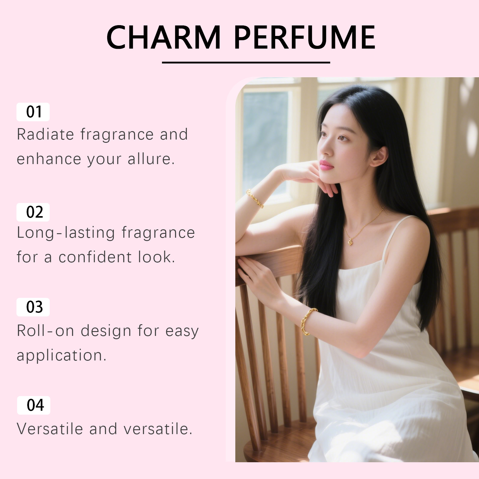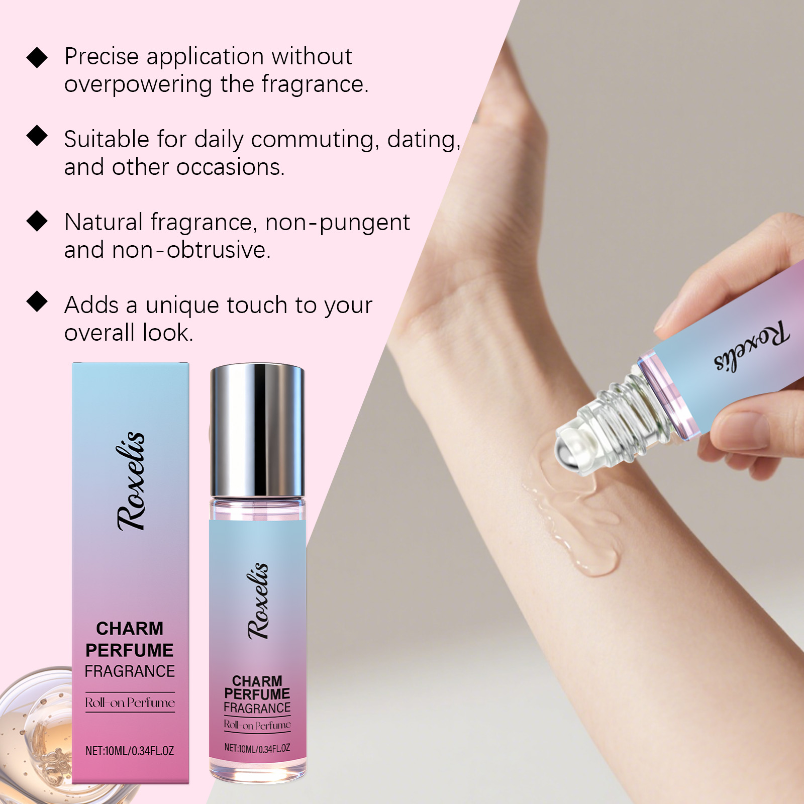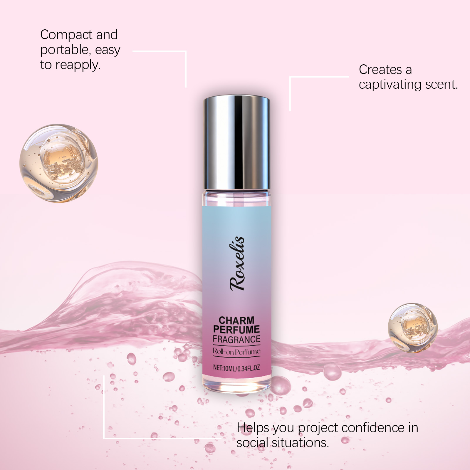 我们的女士魅力滚珠香水,由变性乙醇、甘油精心调配而成。专为散发迷人香气,持久留香,提升自信魅力,打造迷人香味氛围,增强个人吸引力设计。使用方法极为便捷:将香水在头发、手腕、颈部和耳后等部位轻轻涂抹,让香水均匀地弥漫全身,留下芳香。并且它可以便于涂抹,为所需部位带来怡人气味,融合清新与温暖的气息,在多种场合展现迷人风采。