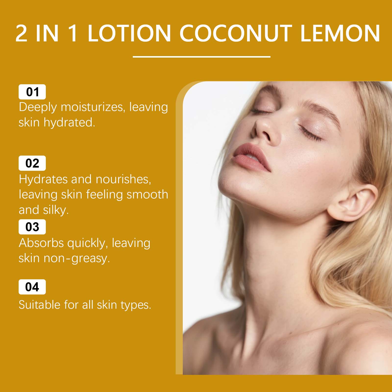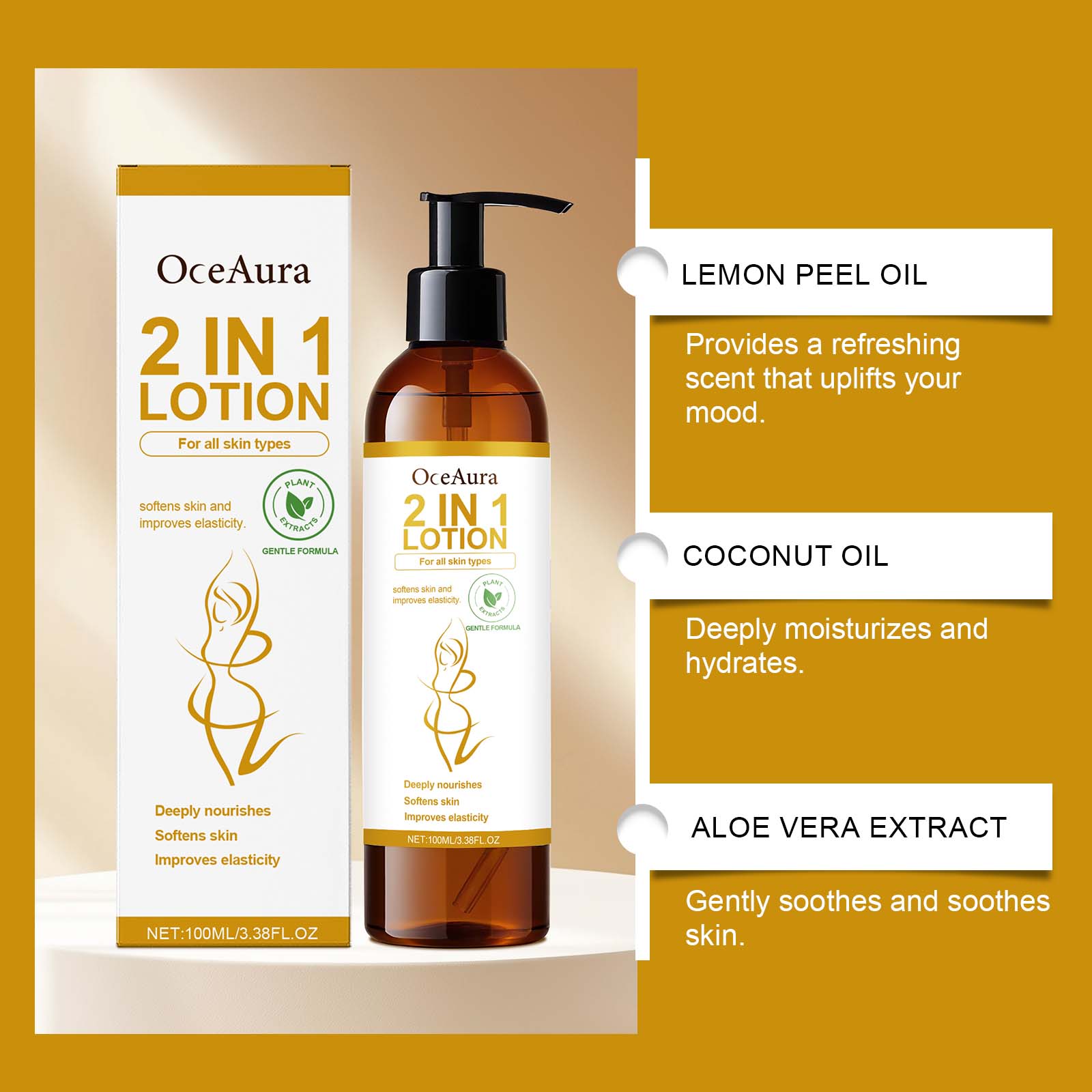 我们的柠檬身体乳,由椰子油、芦荟提取物精心调配而成。专为皮肤提供持久的保湿设计。使用方法极为便捷:清洁并擦干皮肤。取适量涂抹于干燥肌肤。轻轻按摩至吸收。并且为皮肤提供丰富的营养并减少干燥。
