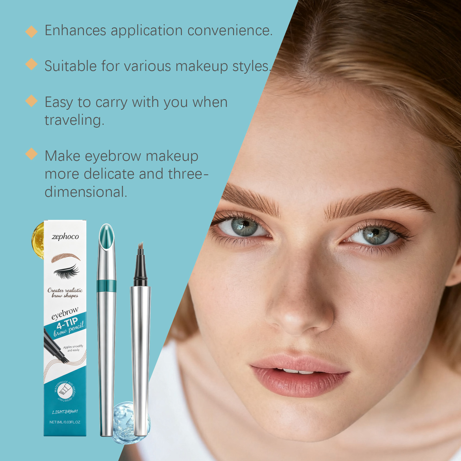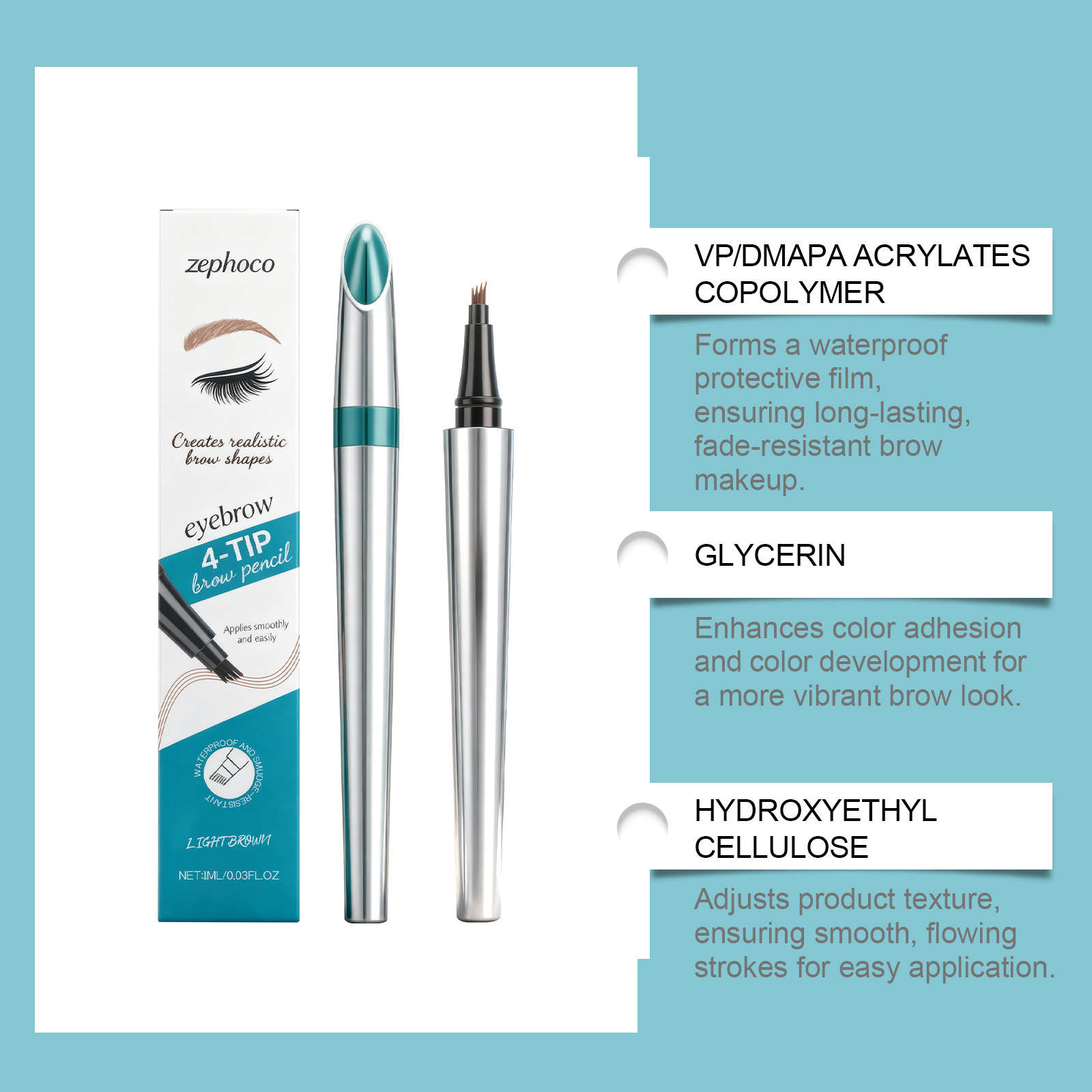 我们的浅棕色四叉塑眉笔,由VP/DMAPA丙烯酸(酯)类共聚物、甘油精心调配而成。专为确保您精致的眉毛保持不变,不会弄脏。超细笔尖精确地定义了每个眉毛,创造了一个逼真的三维眉毛形状设计。使用方法极为便捷:清洁并擦干眉毛周围的区域。拧开盖子,用稍微分叉的尖端沿着眉毛生长的方向轻轻地画出像头发一样的线条。重复以获得更明显的效果。使用后请拧紧盖子。并且它可以形成一层防水保护膜,确保持久不褪色的妆容。