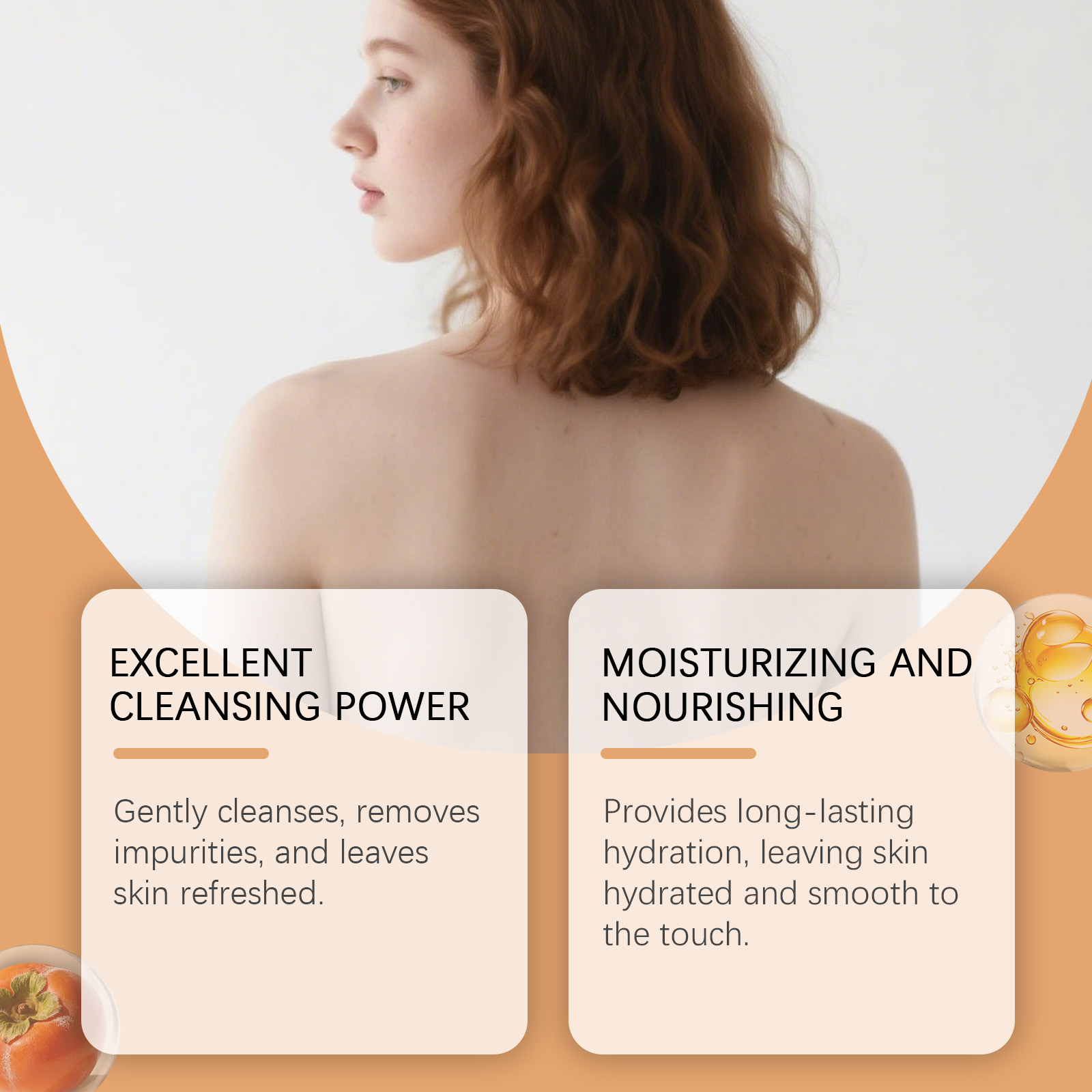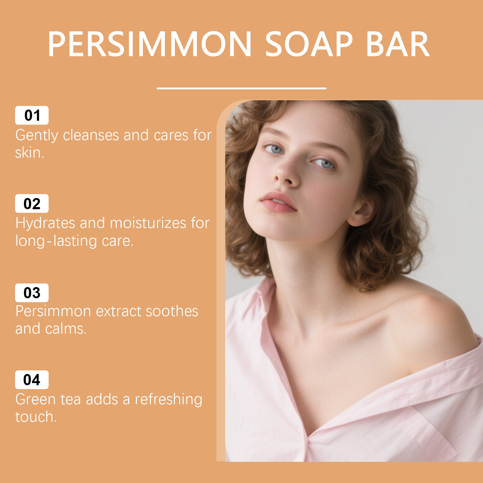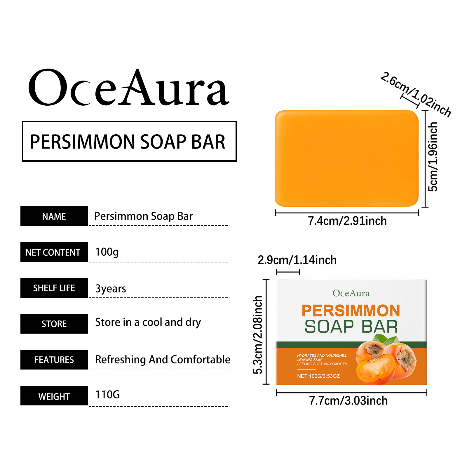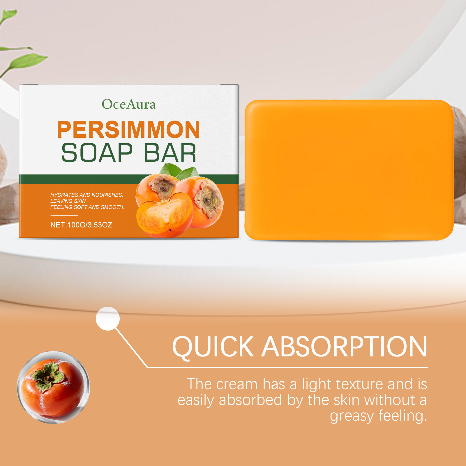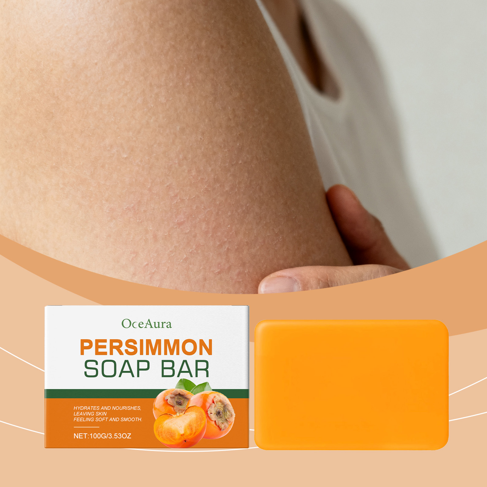 我们的柿子肌肤护理皂,由棕榈油酸钠、硬脂酸精心调配而成。专为防止干燥,确保肌肤柔软光滑,持久保湿设计。使用方法极为便捷:1.用温水湿润皮肤。2.取适量本品,在手中搓揉起泡,涂抹在皮肤上,按摩约1-2分钟。3.用清水冲洗干净。并且它可以有效去除异味,肌肤持久清新自然,温和配方,舒缓肌肤,保持清新。