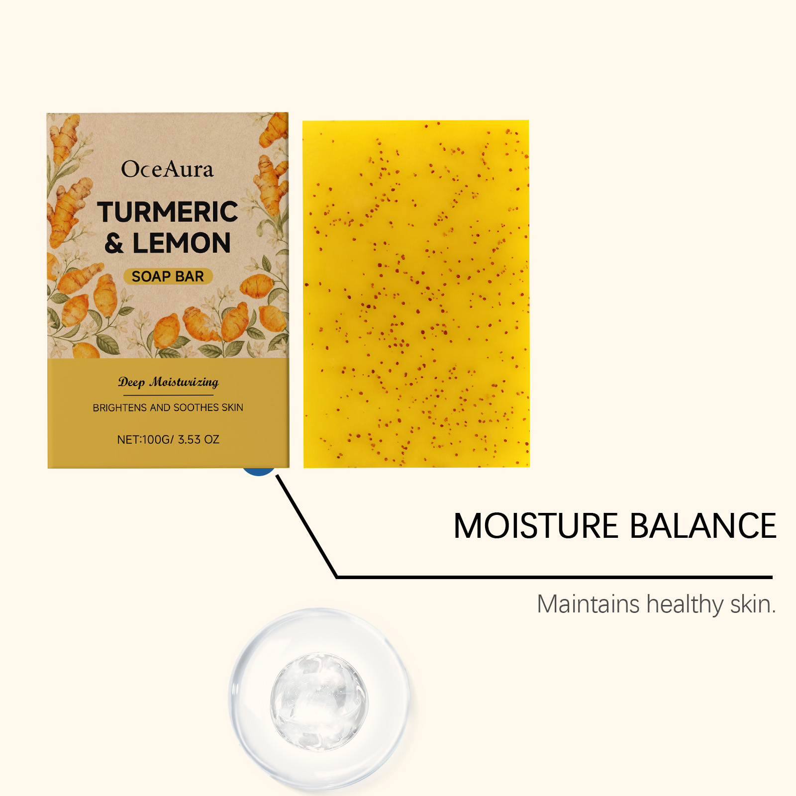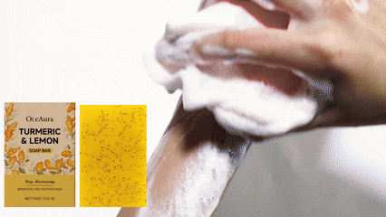 我们的姜黄柠檬清洁皂,由蔗糖、硬脂酸精心调配而成。专为促进均匀、有光泽的肤色设计。使用方法极为便捷:用温水湿润皮肤,将肥皂均匀涂抹在皮肤上,轻轻按摩,然后用清水彻底冲洗干净。并适合所有肤质,包括敏感肌肤。