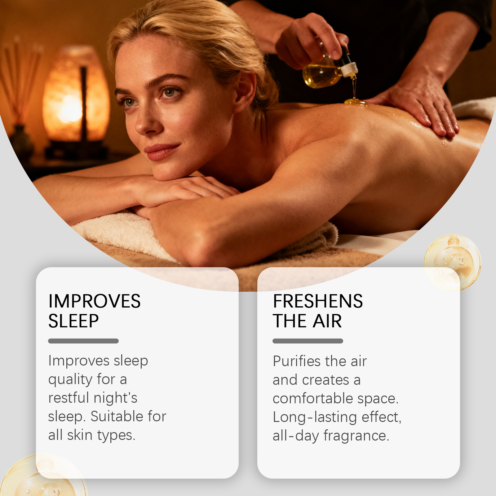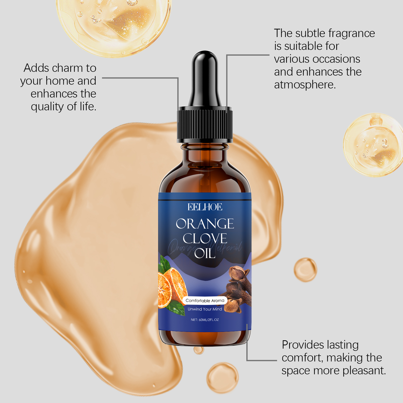 我们的芳香护理精油,由丁香油、茴香油精心调配而成。专为改善睡眠质量设计。使用方法极为便捷:用于扩散器:在香炉中注入干净的水,并滴入4-5滴精油。点燃蜡烛,等待5-10分钟,让精油的香气随着热气的蒸发而消散,从而带来一种放松和舒缓的效果。用于皮肤:将适量精油加入按摩油或热水中稀释,涂抹于皮肤或沐浴。并且可以净化空气,营造舒适空间。持久效果,全天香氛。