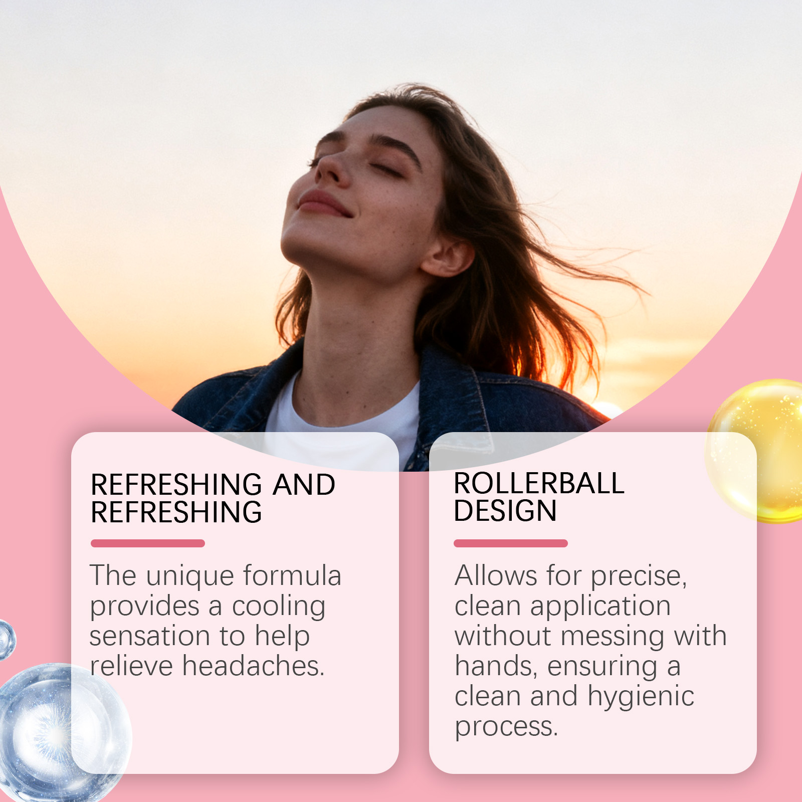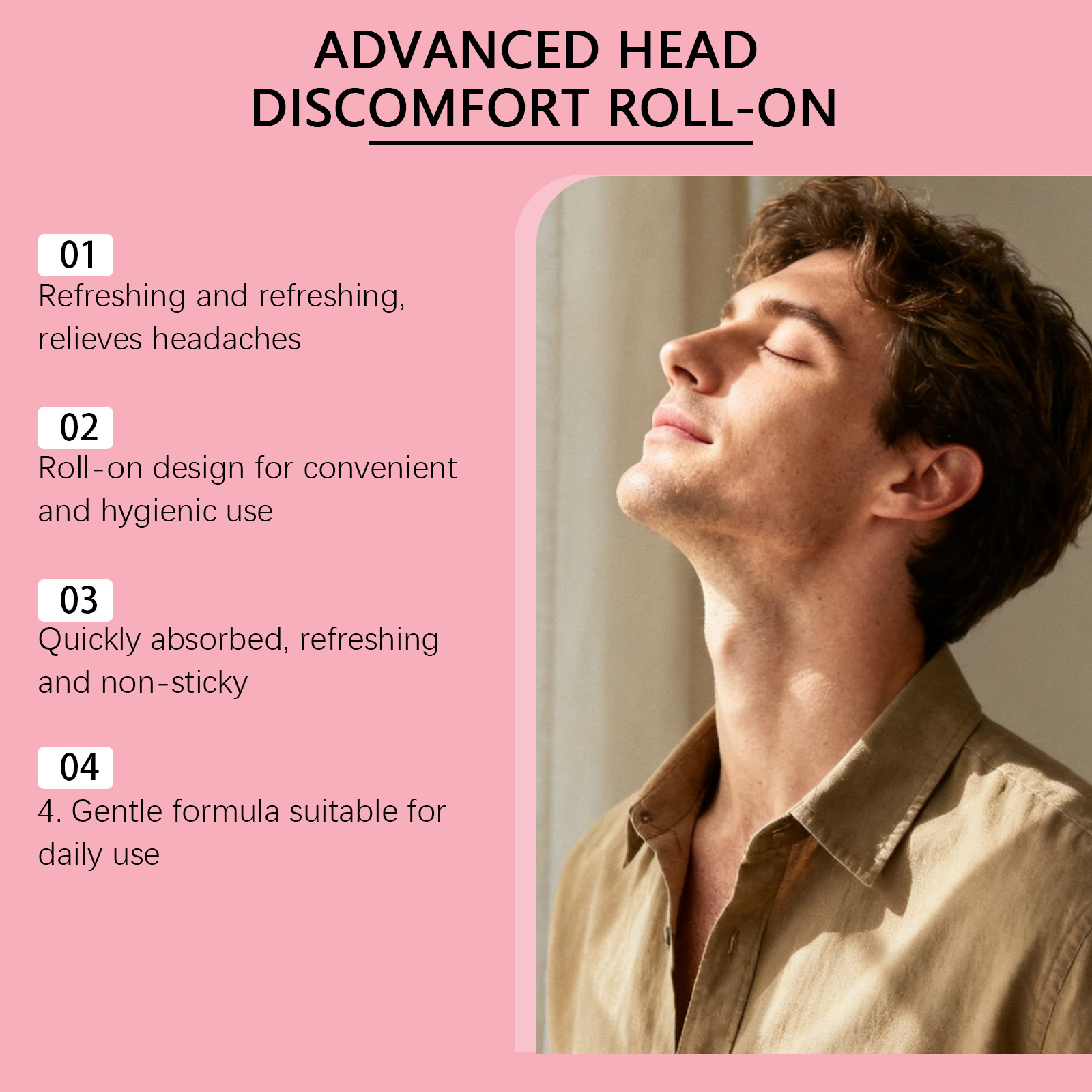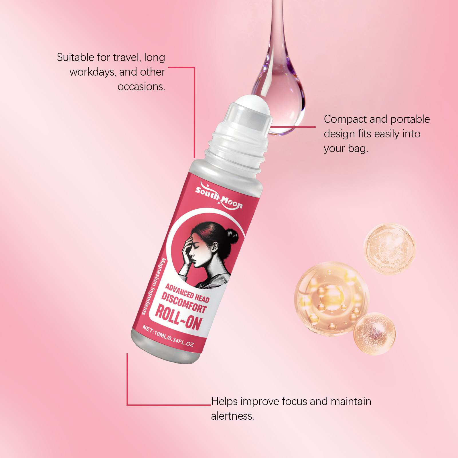 我们的头部护理滚珠,由甘油、氢化蓖麻油精心调配而成。专为缓解头部不适,恢复健康精神状态设计。使用方法极为便捷:1.打开盖子,将滚珠精确在太阳穴、前额或颈后等靠近头部部位肌肤轻轻滚动涂抹。2.等待其吸收即可。并且它具有优质金属滚珠,使用方便顺畅,快速缓解疼痛,促进身体放松。