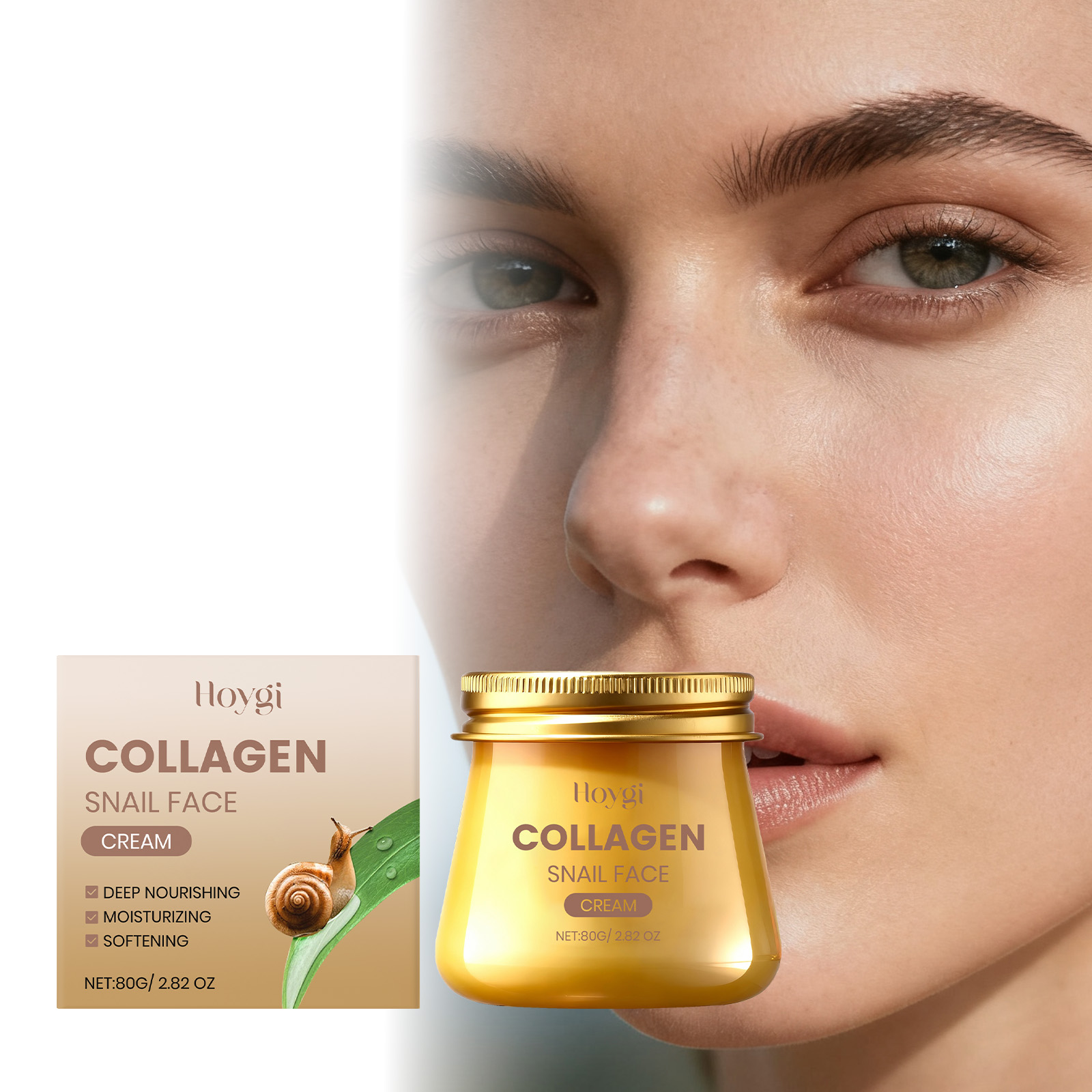 我们的胶原蜗牛弹润面霜,由甘油、矿油、甘油硬脂酸酯精心调配而成。专为深层补水,增强肌肤弹性,改善干燥松弛设计。使用方法极为便捷:1.清洁面部肌肤并保持干燥。2.取适量本品均匀涂抹在面部肌肤。3.轻柔按摩促进吸收即可。并且它可以增强皮肤光泽度和紧致度,使肌肤焕发健康光彩,适合各种肤质,深层滋润,让肌肤柔软光滑细腻。