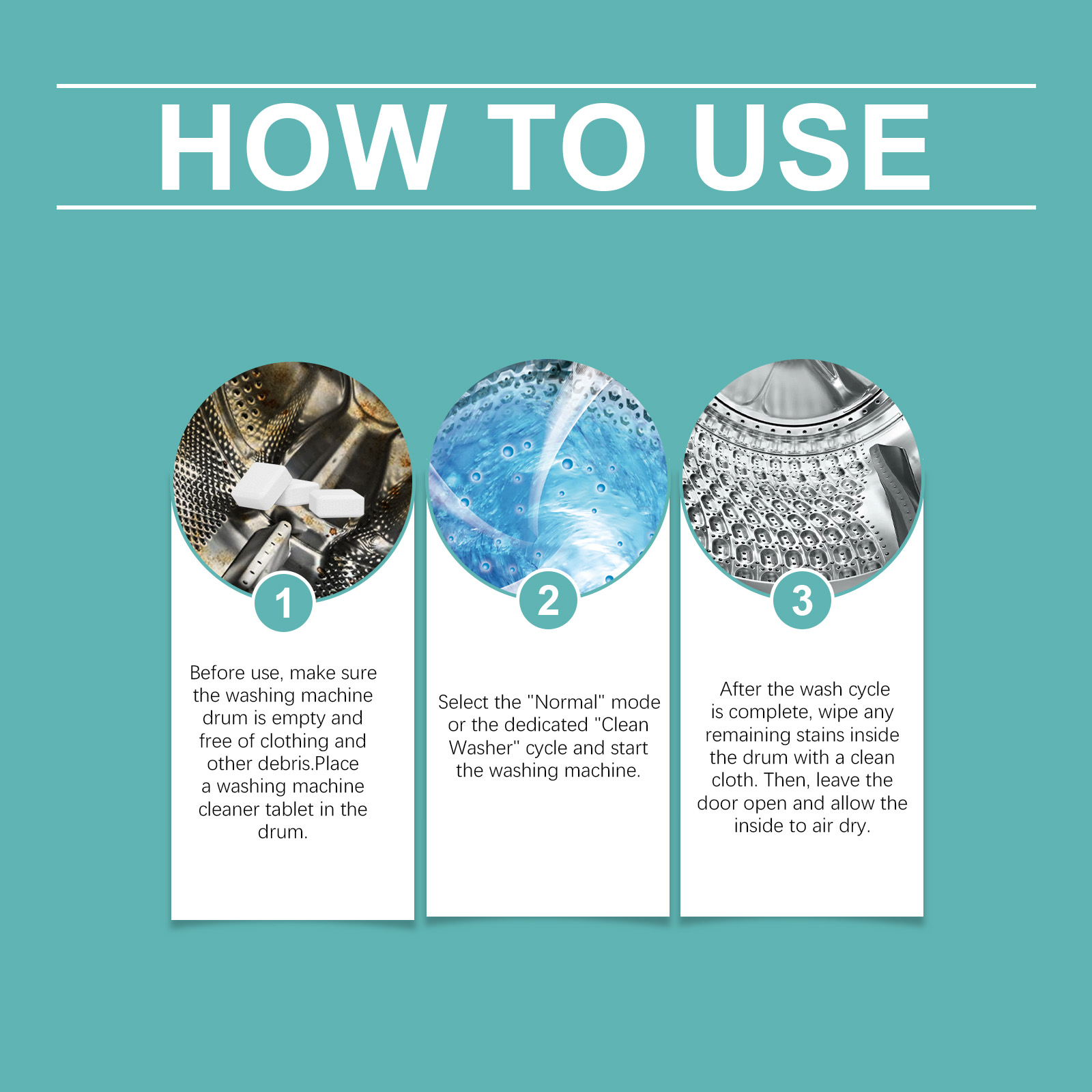 我们的洗衣机清洁片,由柠檬酸、1,2-己二醇精心调配而成。专为快速溶解洗衣机内部顽固污垢设计。使用方法极为便捷:使用前,请确保洗衣机滚筒为空,并且没有衣物和其他杂物。在滚筒中放置一个洗衣机清洁片。选择“正常”模式或专用的“清洁洗衣机”循环,然后启动洗衣机。洗涤周期完成后,用干净的布擦拭滚筒内残留的污渍。然后,打开门让内部自然晾干。并且清洁时不会损坏内部组件,保持其原始性能并延长机器的使用寿命。