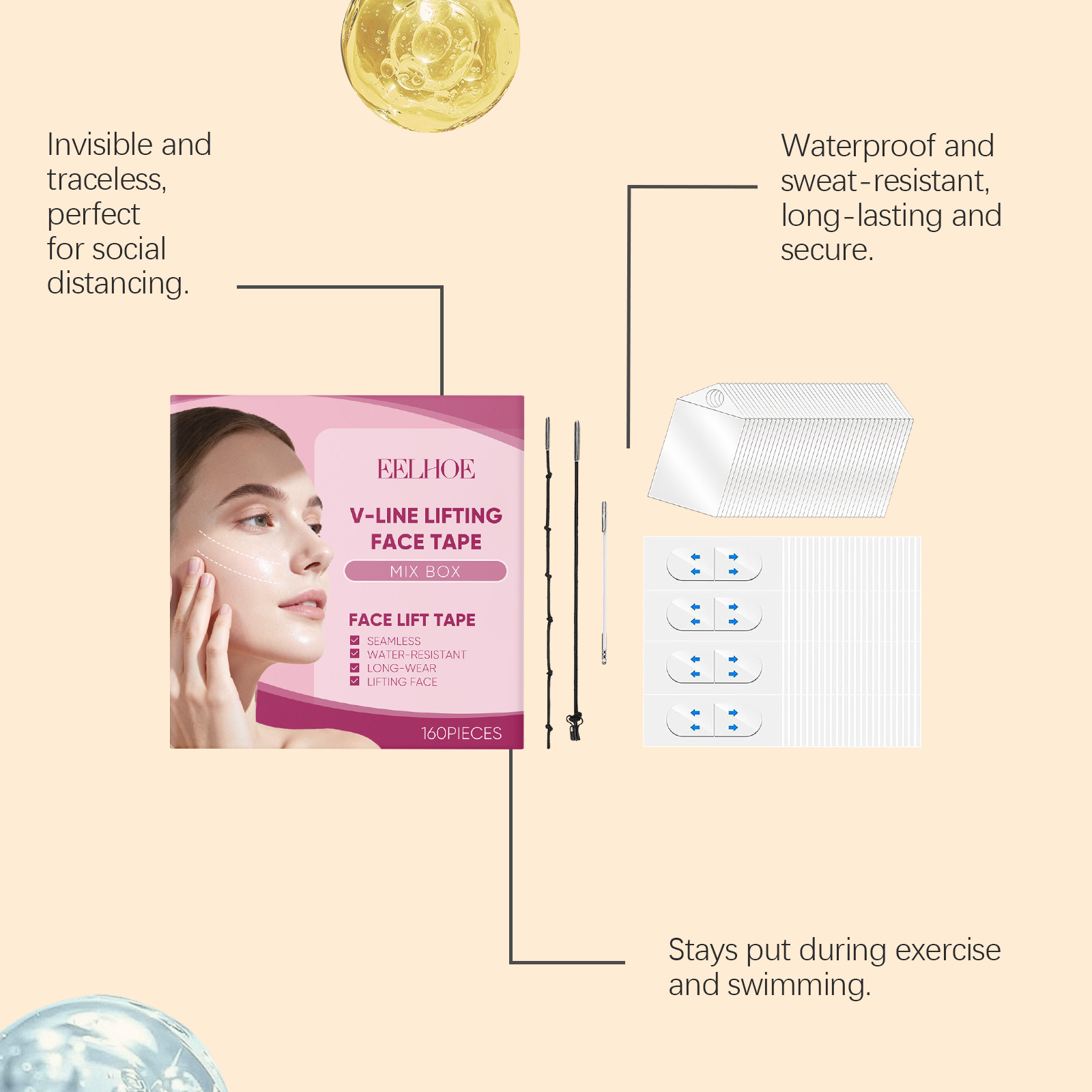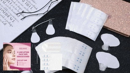 我们的面部护理贴,由甘油、羟乙基纤维素精心调配而成。专为针对性提拉脸部与颈部线条,帮助改善轮廓松弛感,呈现紧致状态,采用隐形设计贴合肌肤,使用后不易被察觉,不影响日常外观设计。使用方法极为便捷:1.清洁肌肤并保持干燥。2.选择需要的贴片贴在面部或颈部需要提拉的部位上,移除蓝色箭头保护膜,轻轻按压确保其粘合。3.若需增强提拉效果,将提拉绳穿过贴片有孔的位置,撕下贴片的保护膜,将其贴在你想要提升的位置上,然后沿着提升方向将贴片贴在两侧,再将提拉绳拉回,找到适合你的紧度,然后穿过孔以固定位置即可。并且它具备防水性能,日常洗脸或接触少量水分时不易脱落,维持效果,无需复杂步骤即可完成操作,上手简单,适合日常居家或外出使用。