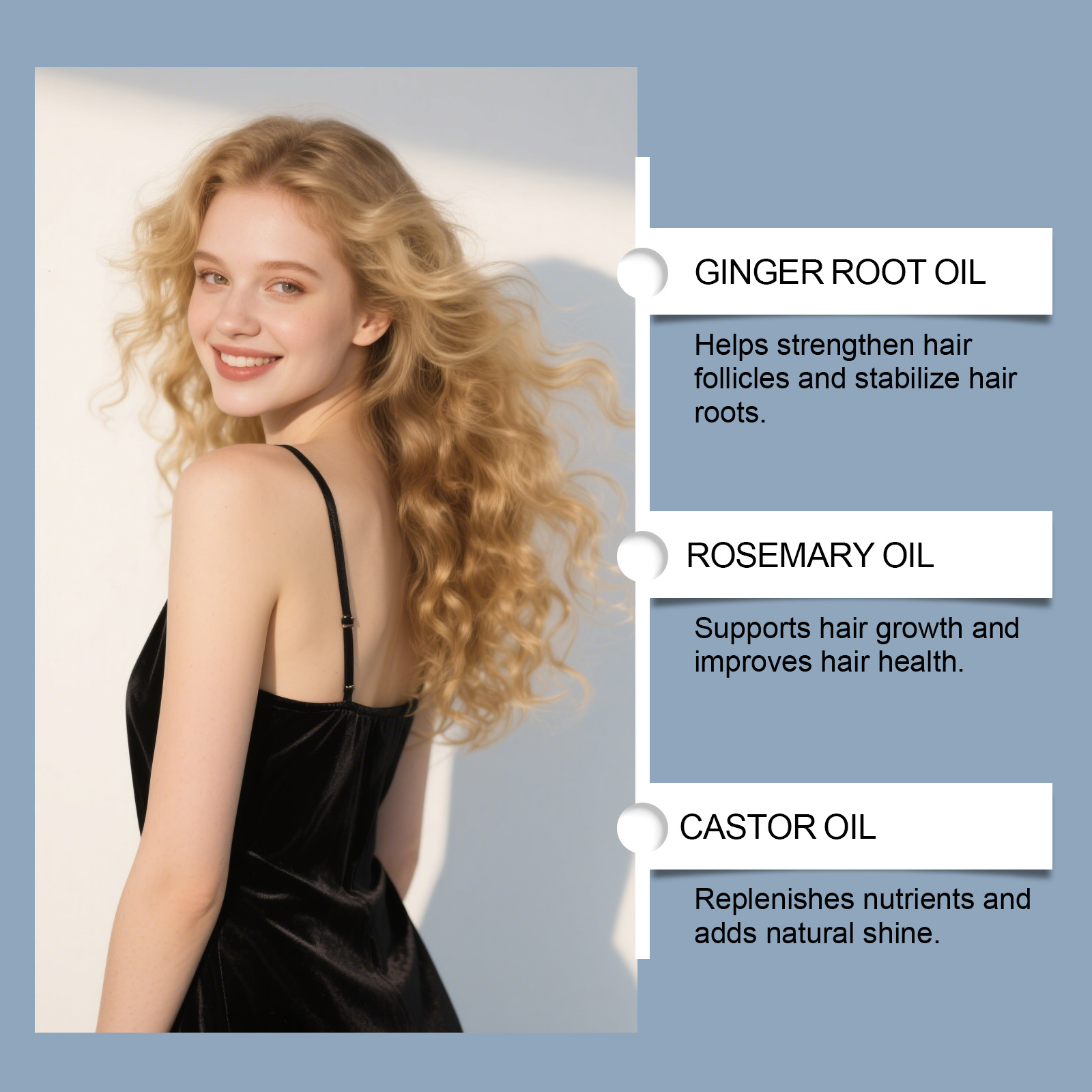我们的头部护理精华,由迷迭香油、蓖麻油精心调配而成。专为深入渗透毛囊,增强其稳定性并减少断裂设计。使用方法极为便捷:清洁并干燥头皮。将产品均匀地涂抹在头皮上,通过在头发上滚动来使用。轻轻按摩产品至头皮吸收。并且可以支持头发生长并逐渐改善头发稀疏。