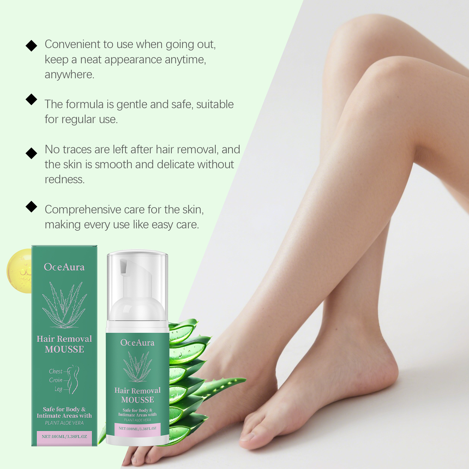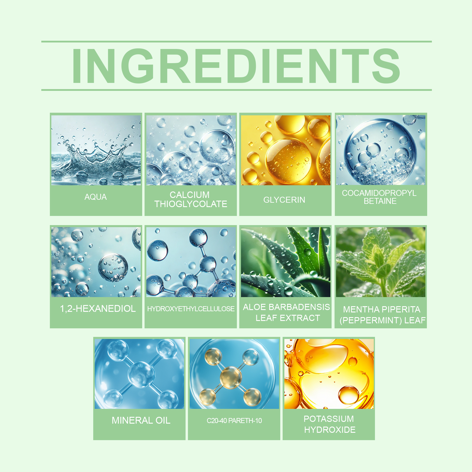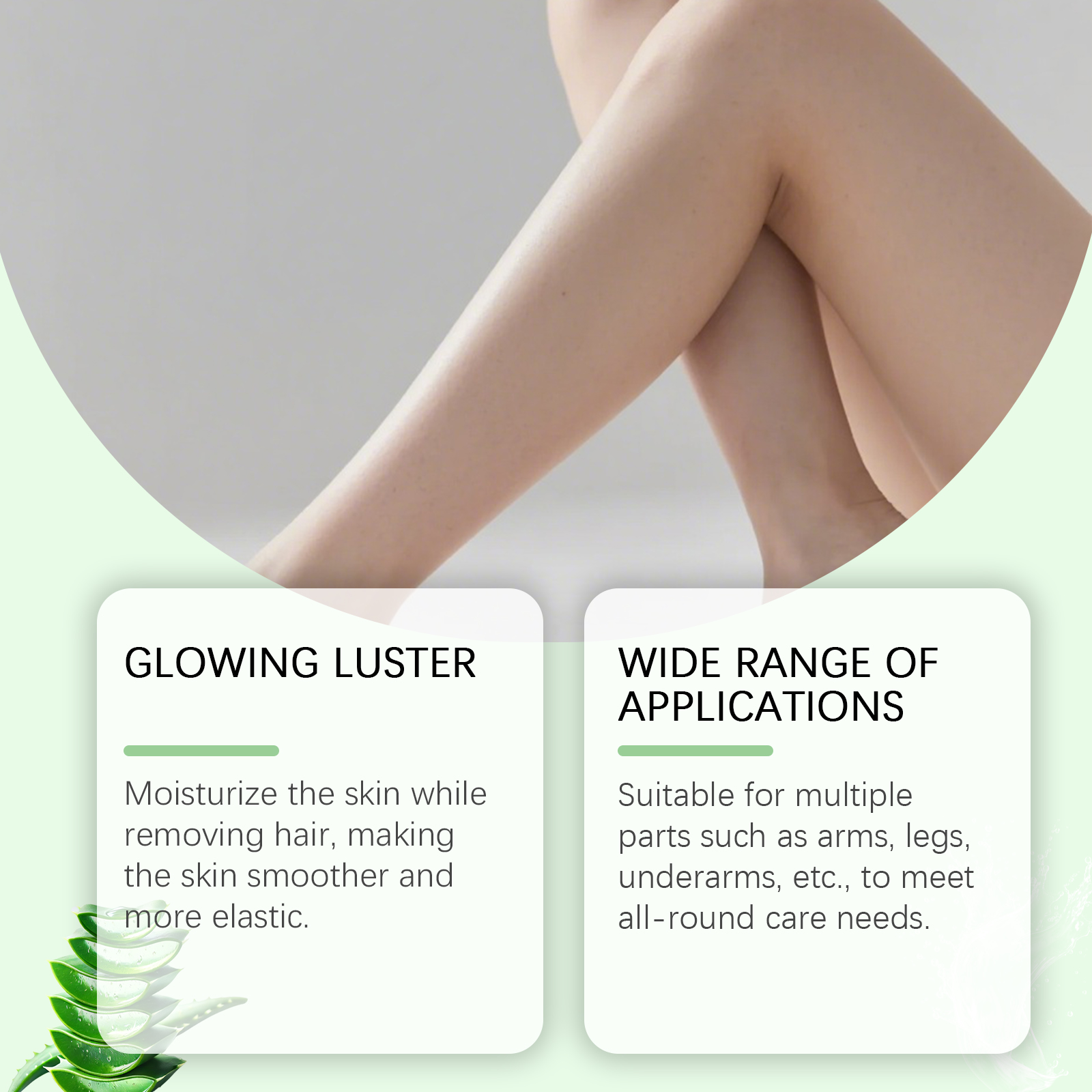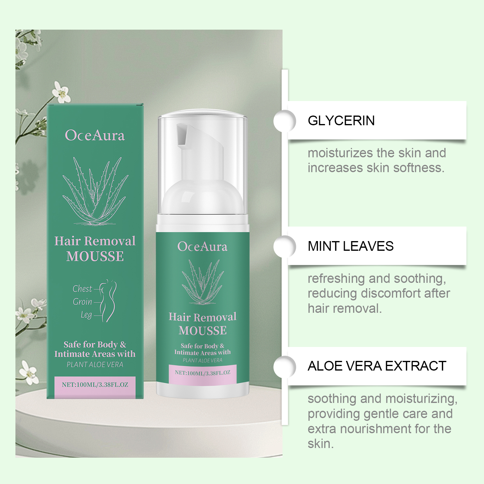 我们的芦荟保湿脱毛慕斯,由甘油、巯基乙酸钙精心调配而成。专为有效溶解毛发结构并软化毛发,使其轻松从毛囊脱离,实现高效脱毛效果,可用于胸部、腹股沟、腿部及私密部位,适配多身体部位的毛发去除需求设计。使用方法极为便捷:1.清洁肌肤并保持干燥。2.取适量本品均匀涂抹在胸部、腹股沟、腿部、私密部位等需要脱毛的肌肤上,等待10-25分钟。3.用清水清洗干净即可。并且它可以让肌肤表面更显光滑,同时带来舒缓作用,减少肌肤不适感,兼具镇静功效,在去除毛发的过程中,为肌肤提供温和的护理支持。