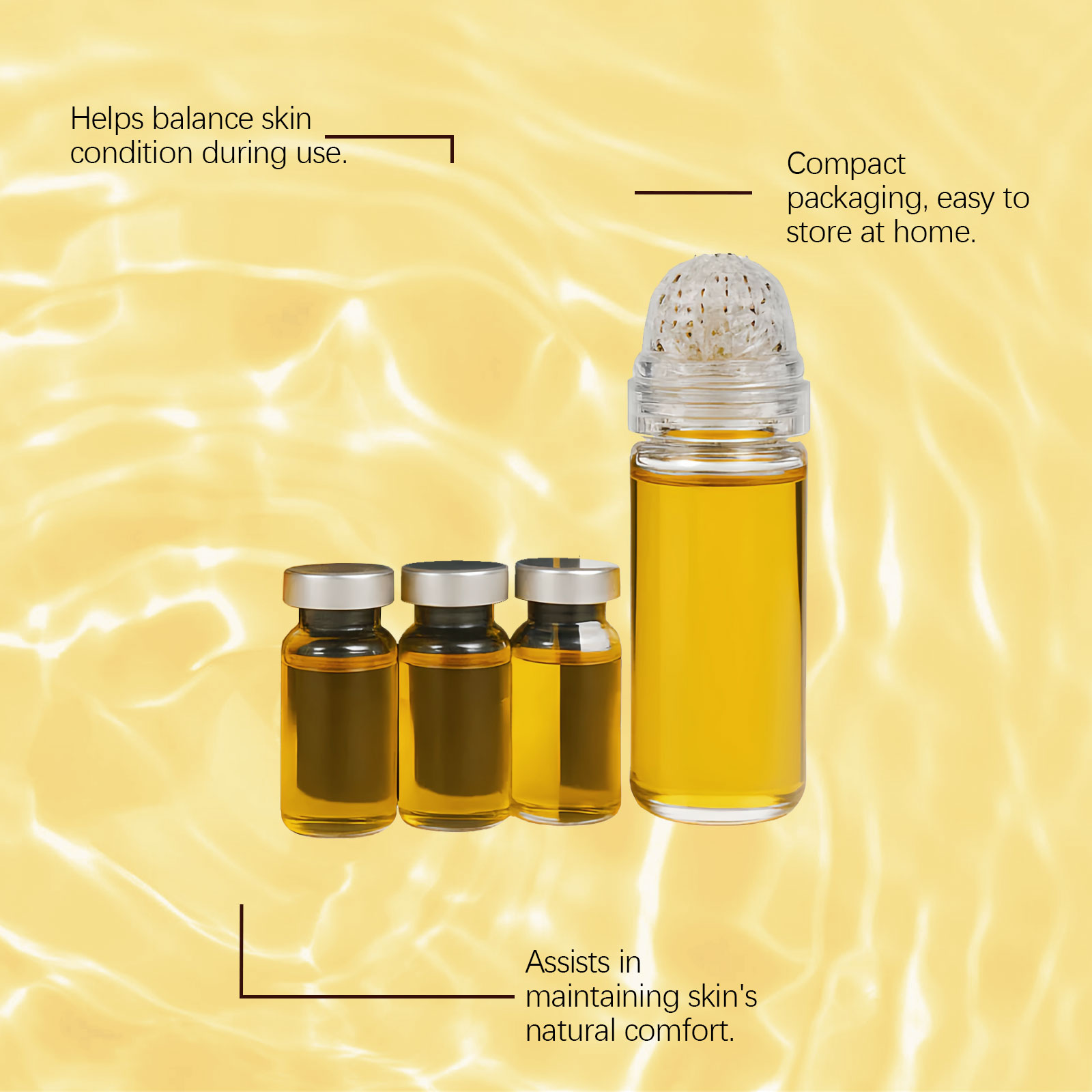 我们的面部精华套装,由甘油、1,2-己二醇精心调配而成。专为有助于缓解皮肤不适设计。使用方法极为便捷:1.清洁面部肌肤并保持干燥。2.将精华液打开,直接用滚轮头在面部肌肤轻轻滚动。3. 当精华液用完后,取下滚轮头并更换新的精华液。并且它可以有助于舒缓皮肤,减少不适,补充皮肤水分并锁住水分,有助于平衡皮肤,保持舒适。