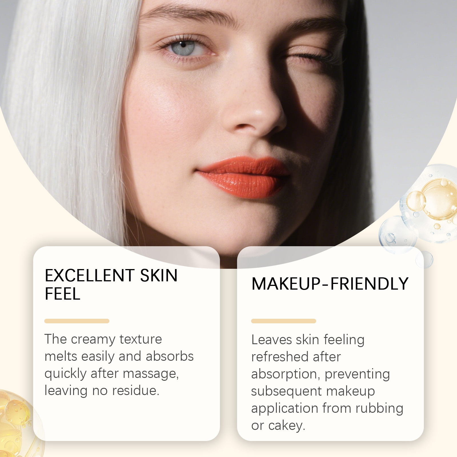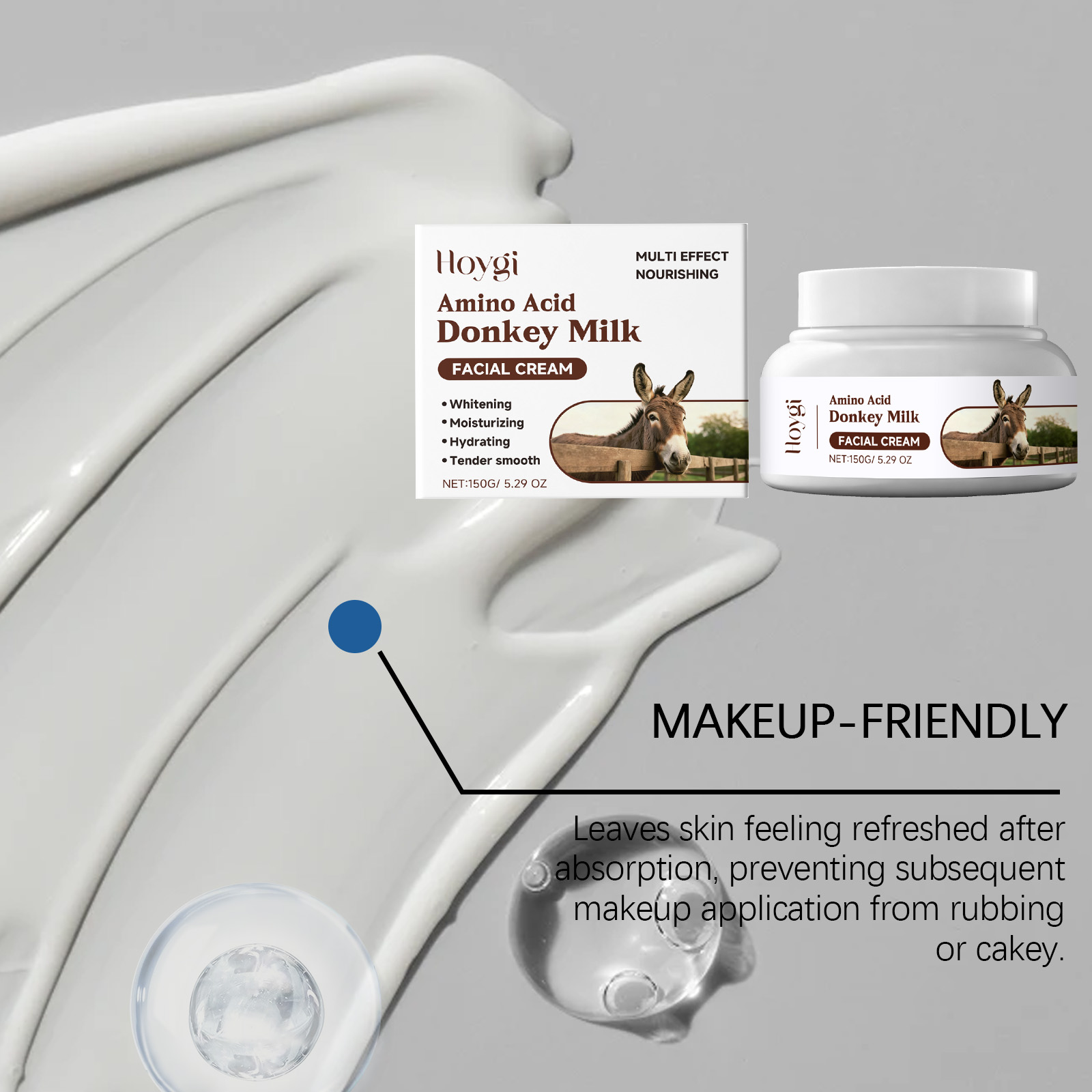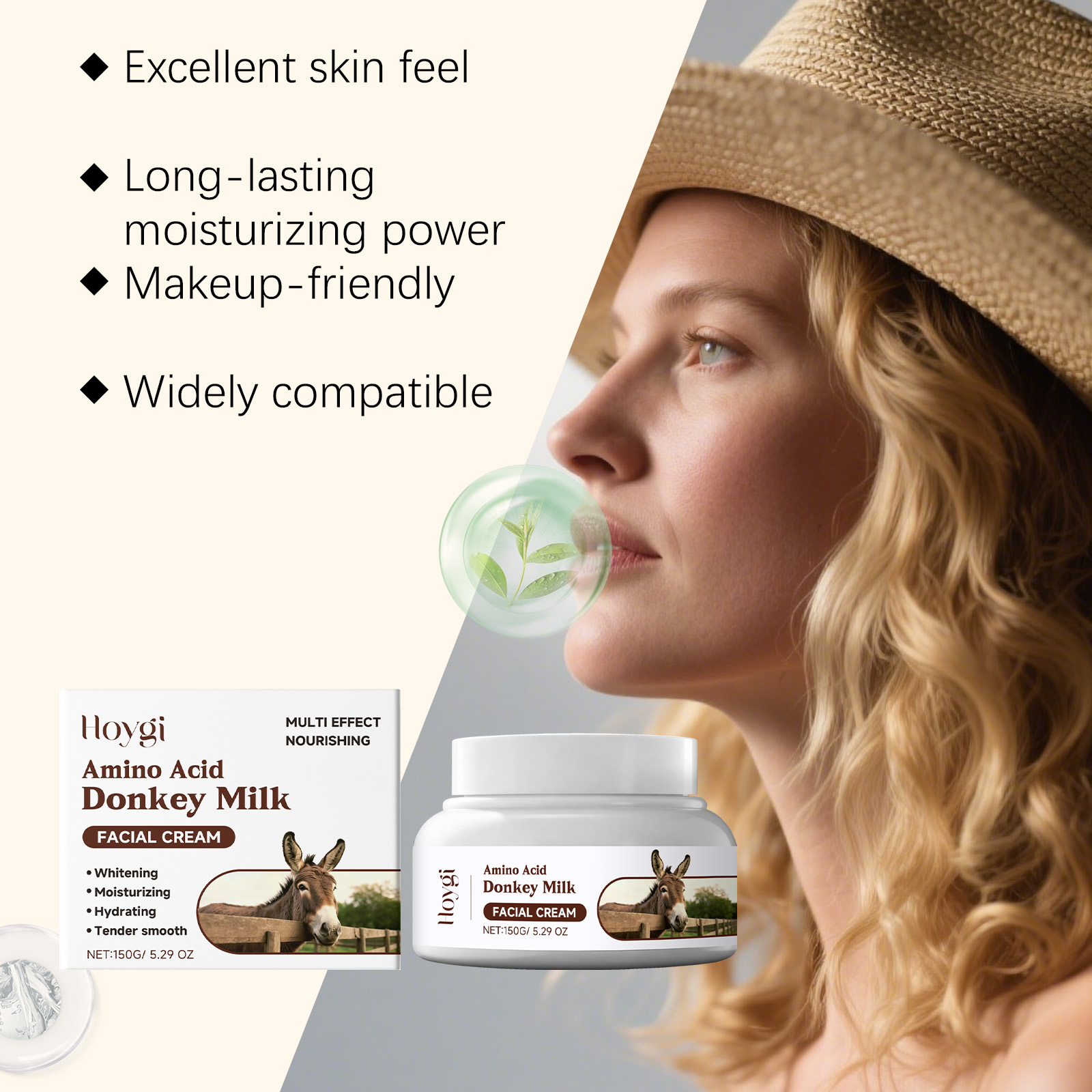 我们的驴奶面部保湿霜,由甘油、矿油精心调配而成。专为使皮肤感觉清新,防止后续彩妆涂抹时产生摩擦或结块,按摩后,乳脂质地很容易融化并迅速吸收,不会留下任何残留物设计。使用方法极为便捷:清洁双手并保持干燥。取约黄豆大小的量将本产品涂抹于皮肤表面,轻轻按摩直至完全吸收。并且它可以持久保湿,舒缓干燥,两用护理,温和亲肤。