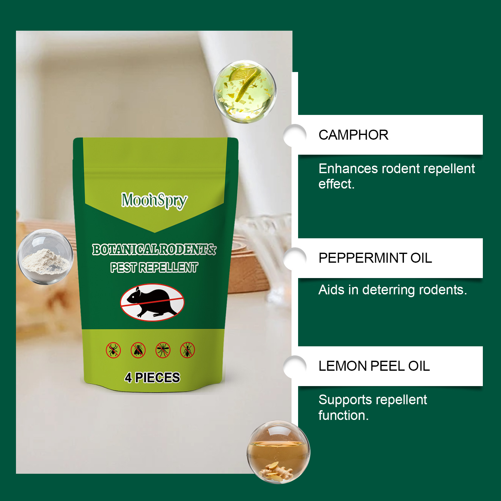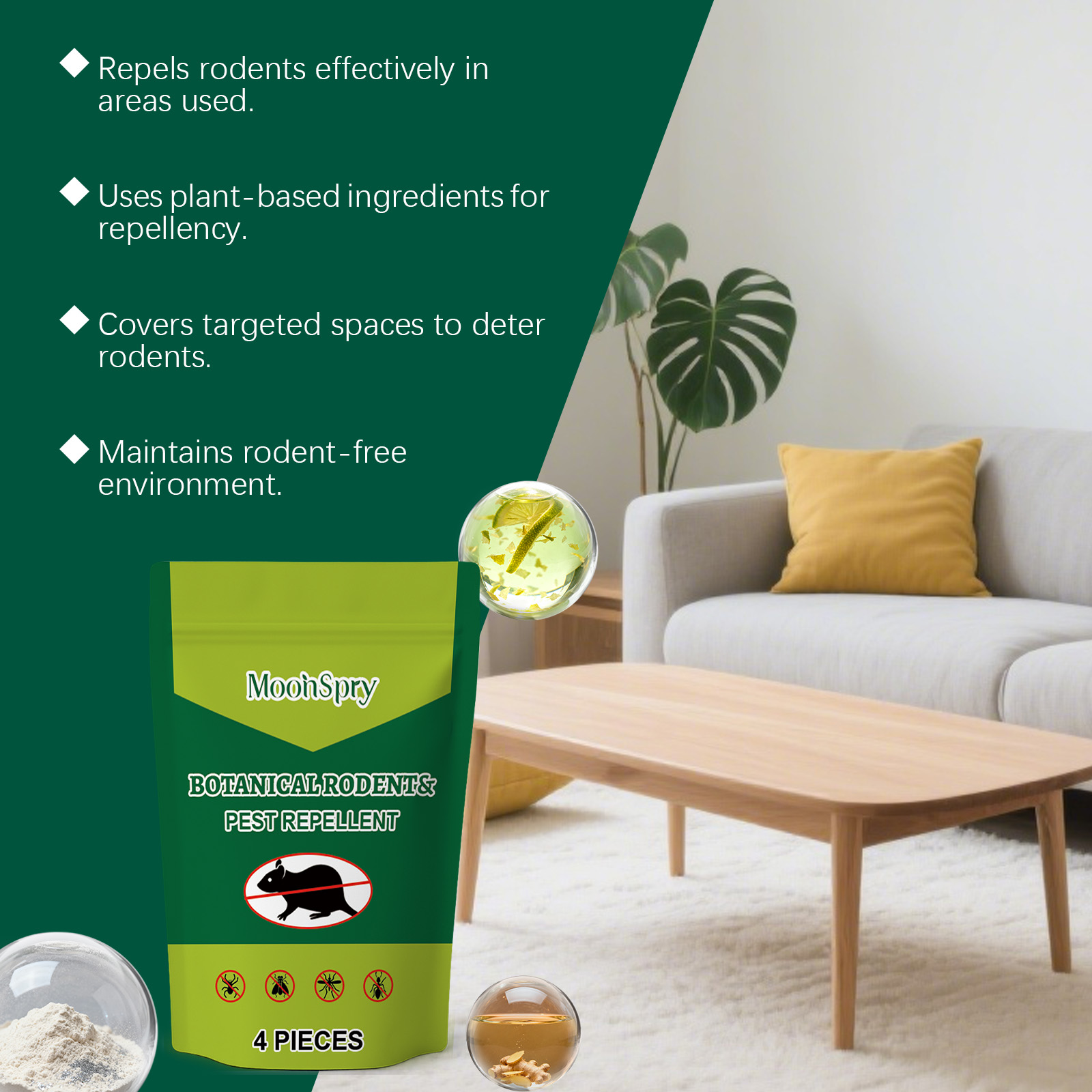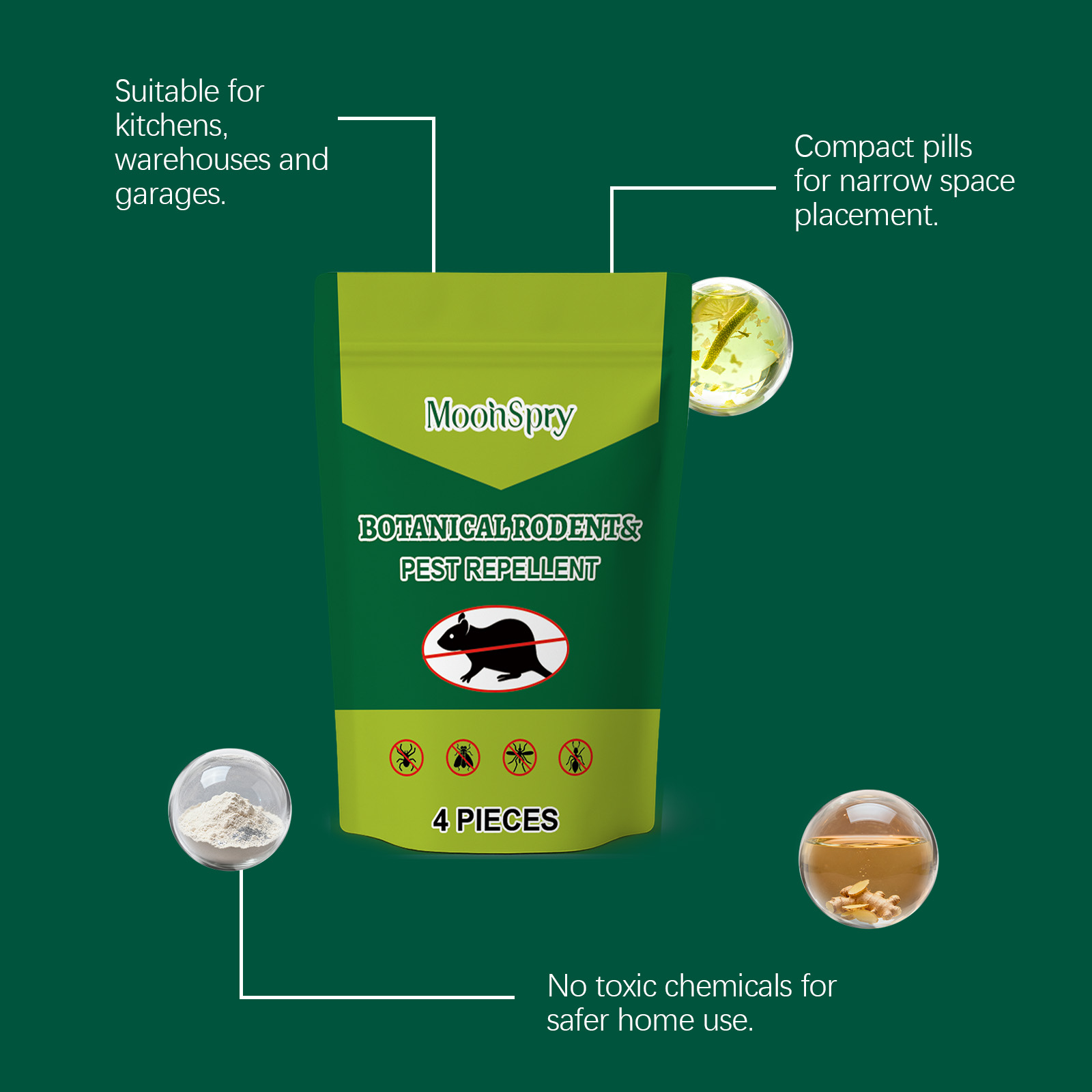 我们的啮齿动物驱避丸,由高岭土、纤维素胶精心调配而成。专为在使用区域有效驱避啮齿动物,采用植物成分实现驱避作用设计。使用方法极为便捷:1. 将药丸放置啮齿动物活跃区。2. 每角落或区域放1-2粒。3. 定期45-60天更换一次4. 远离儿童和宠物。并且它可以覆盖目标区域阻挡啮齿动物,维持无啮齿动物的环境。