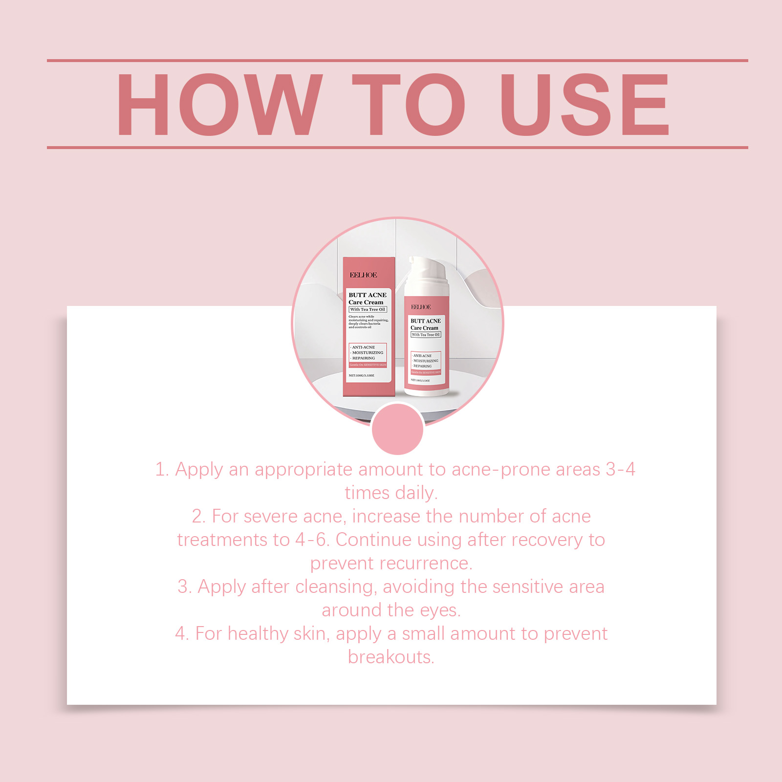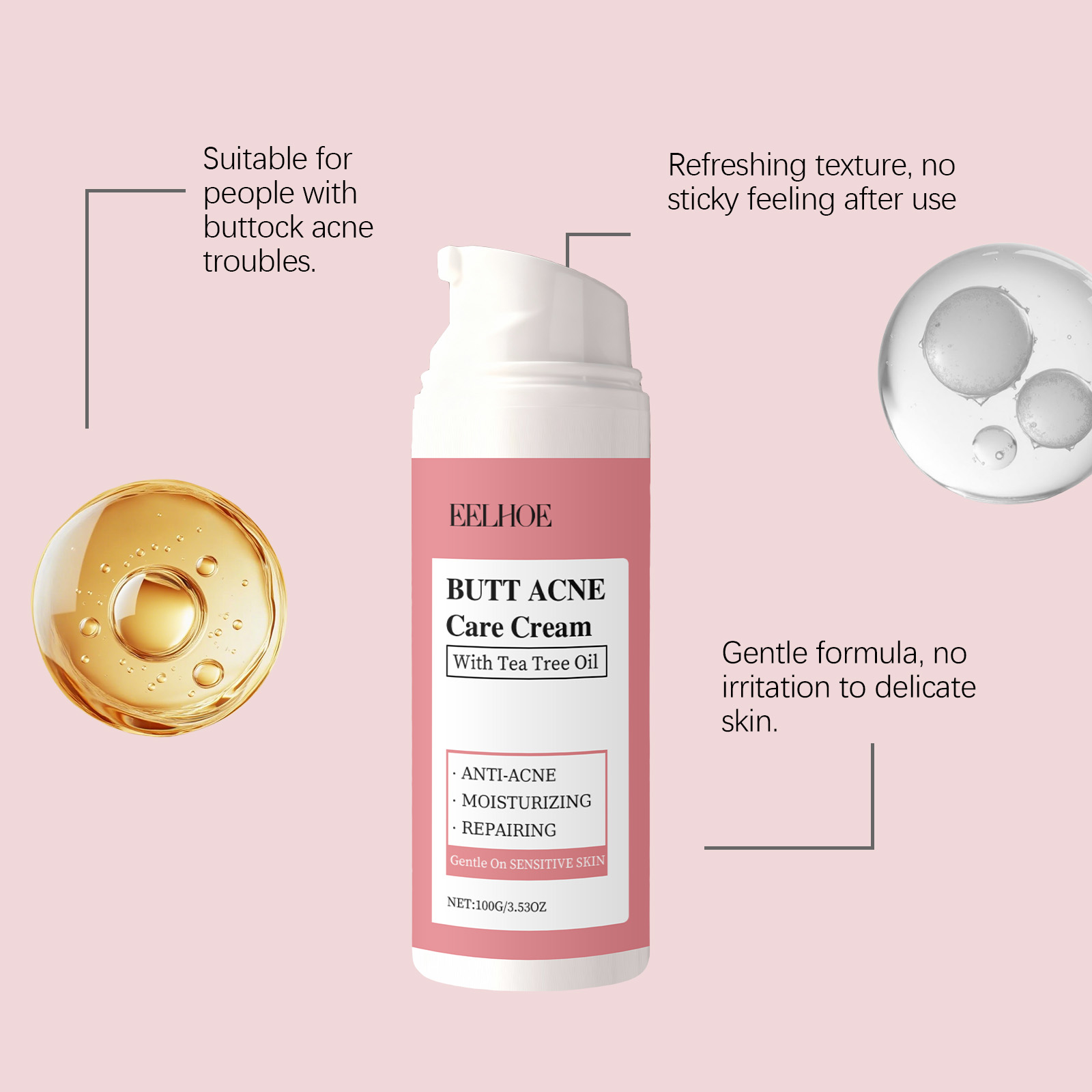我们的臀部痘痘护理霜,由1,2-己二醇、卡波姆精心调配而成。专为改善臀部痤疮设计。使用方法极为便捷:1.每天在易长痘的部位涂抹适量产品,每天3-4次。2.对于严重痤疮,将痤疮治疗次数增加到4-6次。恢复后继续使用,以防止复发。3.清洁后使用,避免眼部周围敏感区域。4.对于健康肌肤,涂抹少量,以防止痘痘。并且可以深层抑制细菌。