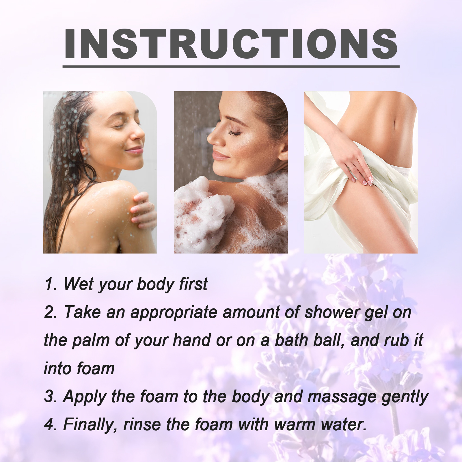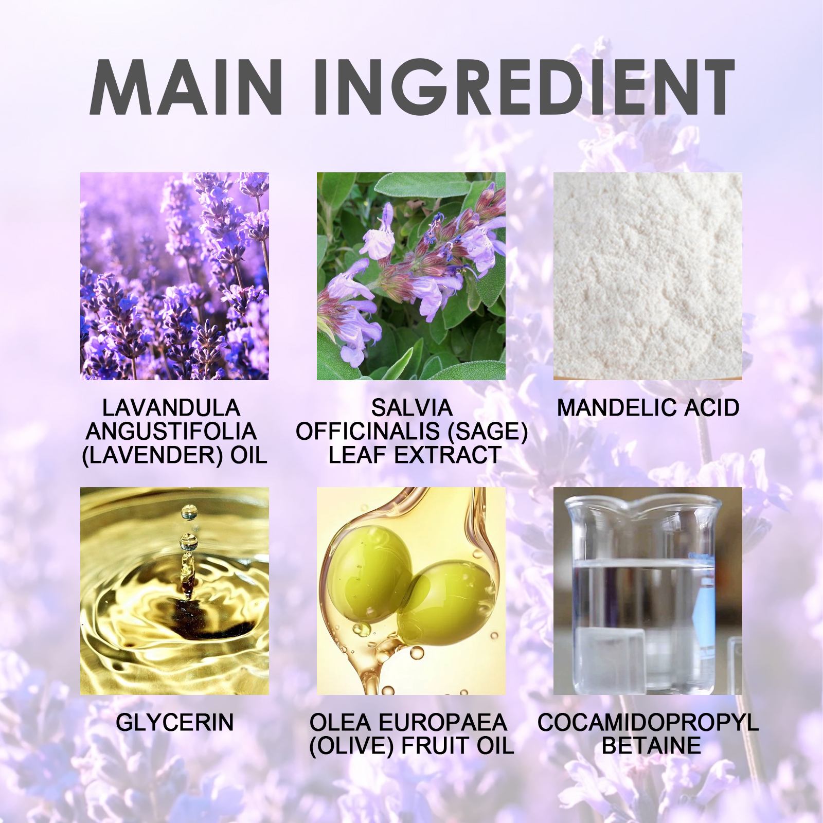 我们的薰衣草鼠尾草沐浴露含有薰衣草油、鼠尾草提取物、扁桃酸。它可以去除异味,让您一整天都保持清爽,深层清洁毛孔及污垢,平衡表层水油,减少皮肤粉刺,去除多余的死皮,让您的肌肤更加光彩照人。它的使用方法很简单:先把身体弄湿,取适量沐浴露于手心或沐浴球上,搓成泡沫,将泡沫涂在身体上,轻轻按摩,最后,用温水冲洗干净即可。可以改善堵塞的毛孔,并提供深层清洁。