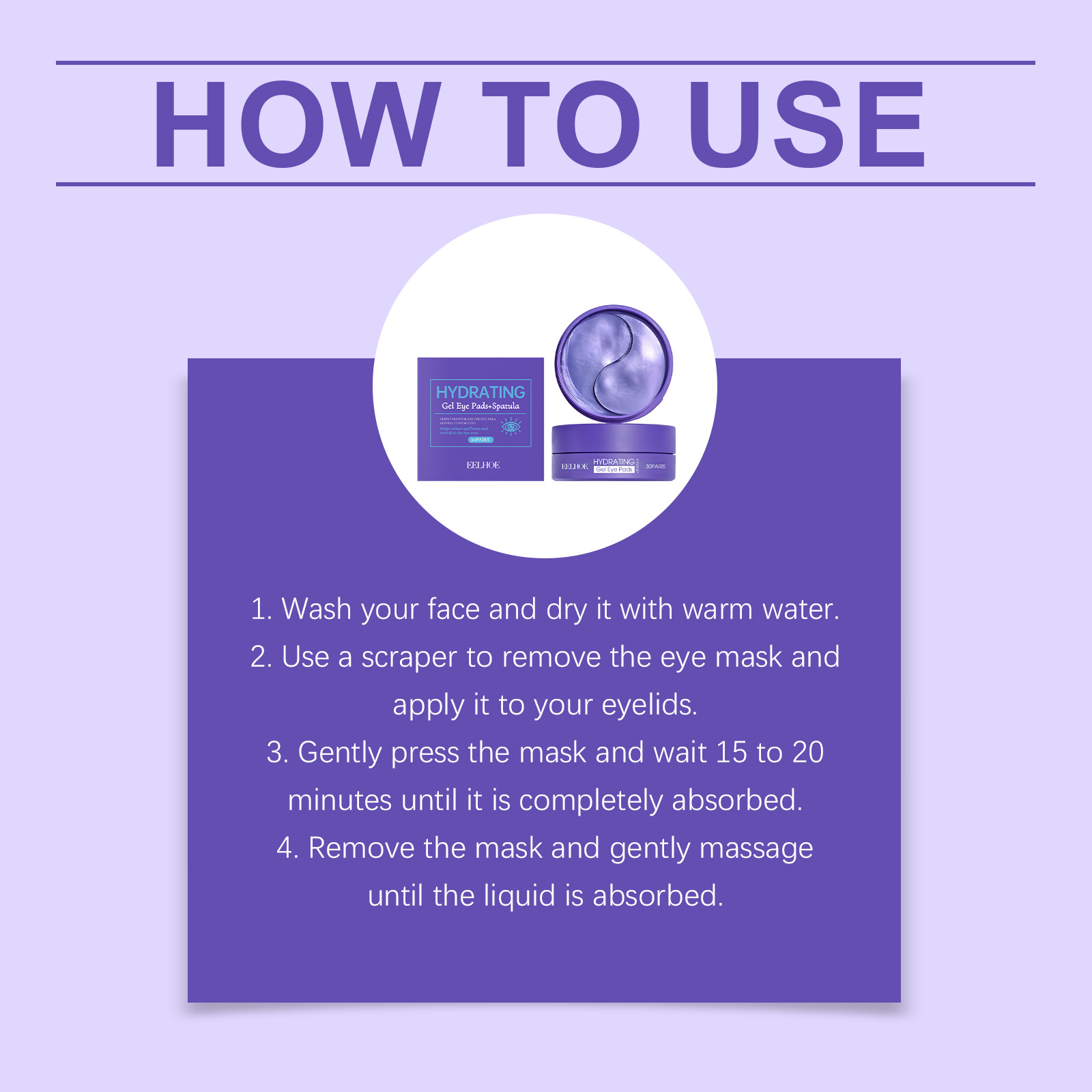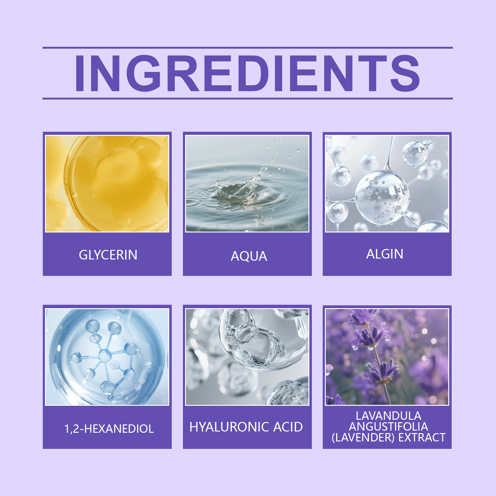 我们的薰衣草水凝胶眼贴,由甘油、藻酸钠精心调配而成。专为改善眼部外观,缓解眼部疲劳设计。使用方法极为便捷:1.洗脸并用温水擦干。2.使用刮板取下眼膜并贴在眼睑上。3.轻轻按压面膜,等待15至20分钟直至完全吸收。4.取下面膜,轻轻按摩直至液体被吸收。并且它可以软化眼部细纹。