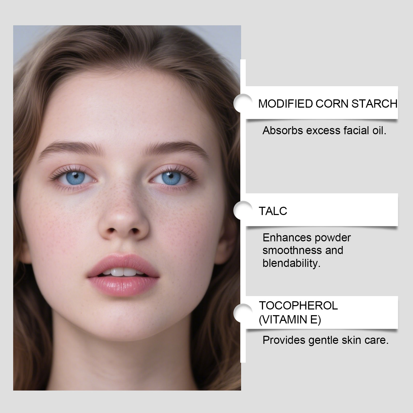 我们的肤色控油定妆粉饼,由改性玉米淀粉、滑石粉精心调配而成。专为吸收多余面部油脂,延长妆容持久时间设计。使用方法极为便捷:打开粉盒,用粉扑将粉末轻轻拍在脸上,以减少油光并实现均匀覆盖。并且它没有厚重或蛋糕般的质感。
