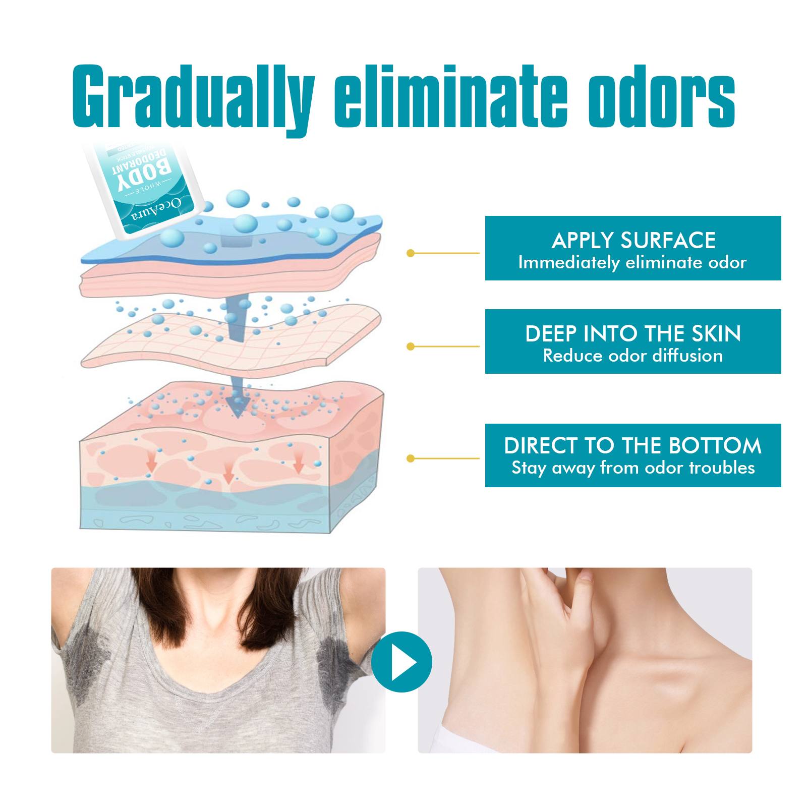 我们的原味身体除臭棒含有微晶蜡、生育酚(维生素E)。它可以有效去除异味,防止细菌引起的体臭,使您精神焕发,减少异味,帮助滋润肌肤,保持肌肤柔软。它的使用方法很简单:清洁您需要使用的区域,打开盖子,轻轻旋转底部轴,然后将产品直接应用于需要使用的区域即可。可以帮助控制体味,温和去除异味,破坏异味分子,使身体保持清爽。