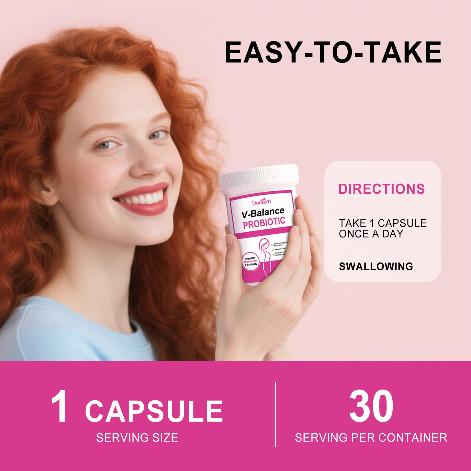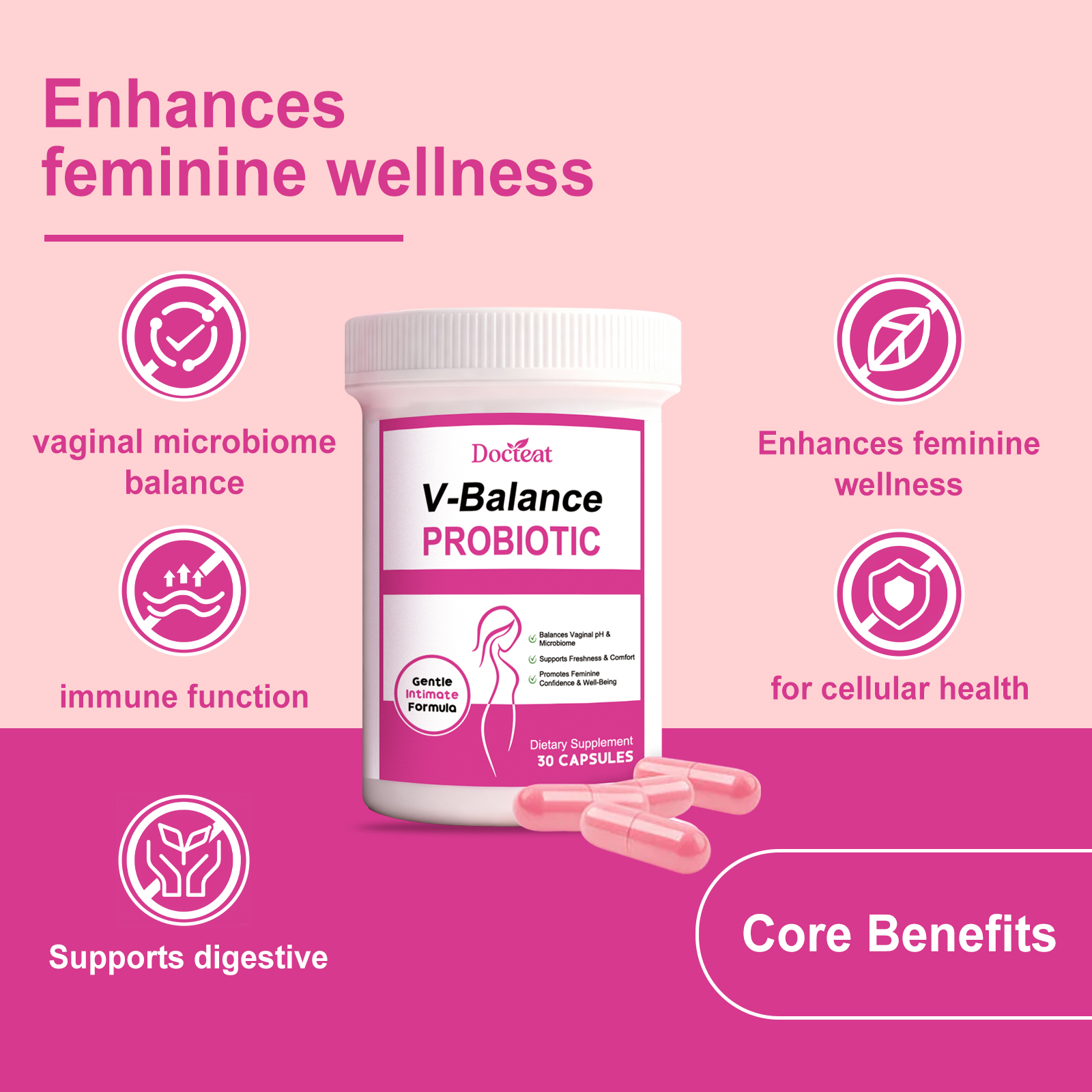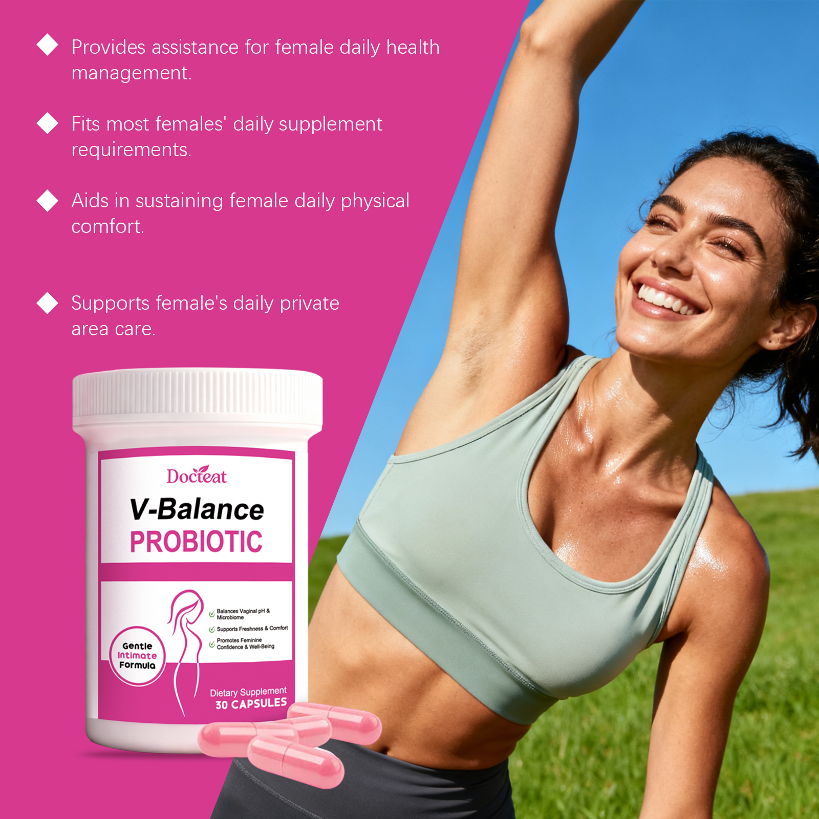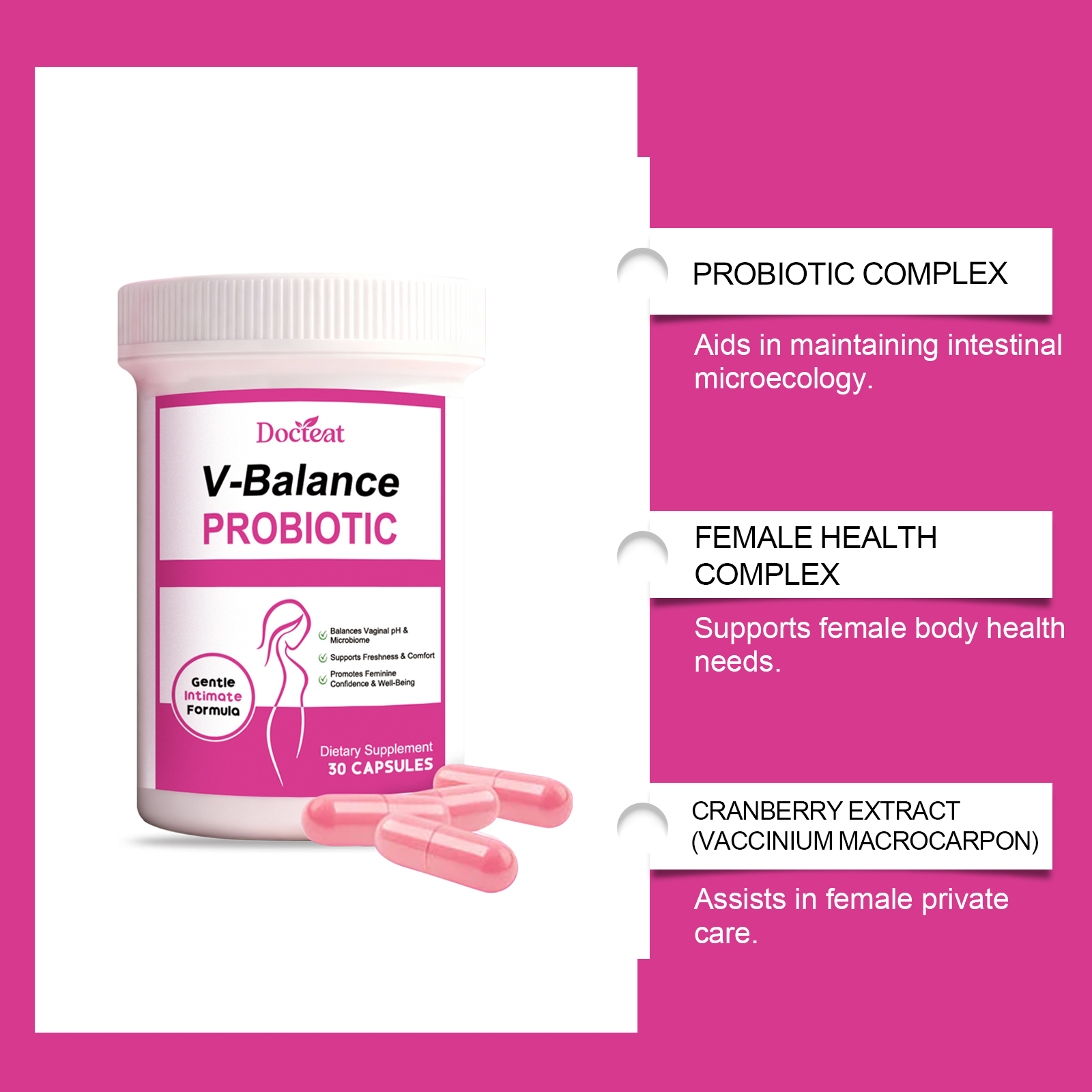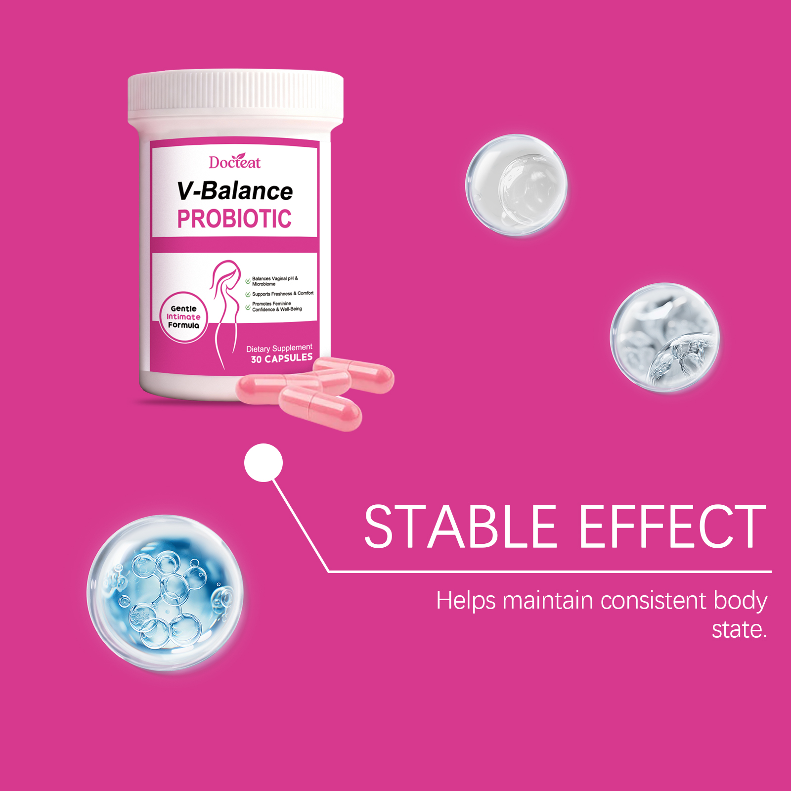 我们的女性益生菌胶囊,由益生菌复合物、女性健康复合物精心调配而成。专为适合日常补充,支持身体,便于携带,随时随地服用设计。使用方法极为便捷:每天一次,每次1粒。并且它可以关注女性日常健康需求。