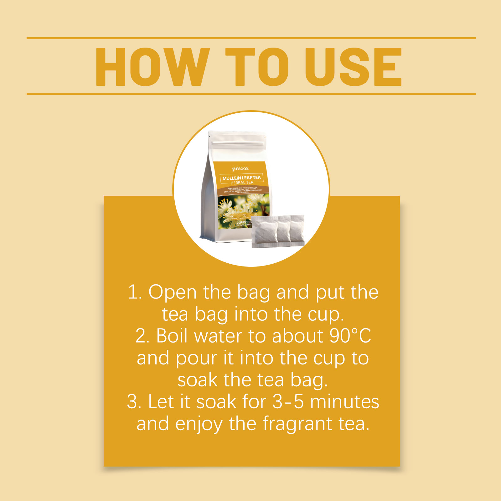 我们的毛蕊花草本茶,由毛蕊花叶精心调配而成。专为有助于维持舒适的日常作息设计。使用方法极为便捷:1.打开包装袋,将茶包放入杯中。2.将水煮至约90°C,倒入杯中浸泡茶包。3.静置浸泡3-5分钟,尽情享受香醇茶饮。并且它适合日常饮用,节省准备时间。