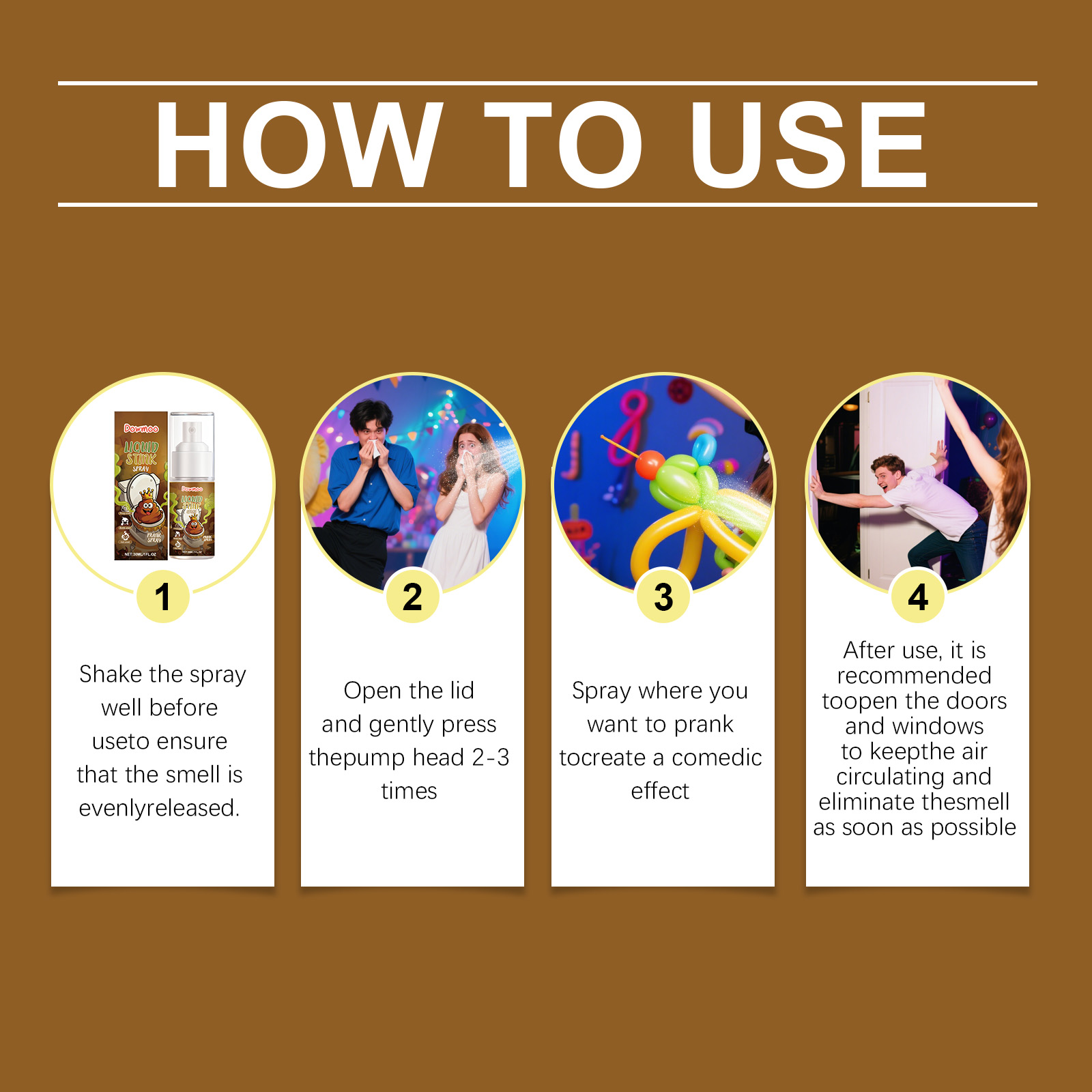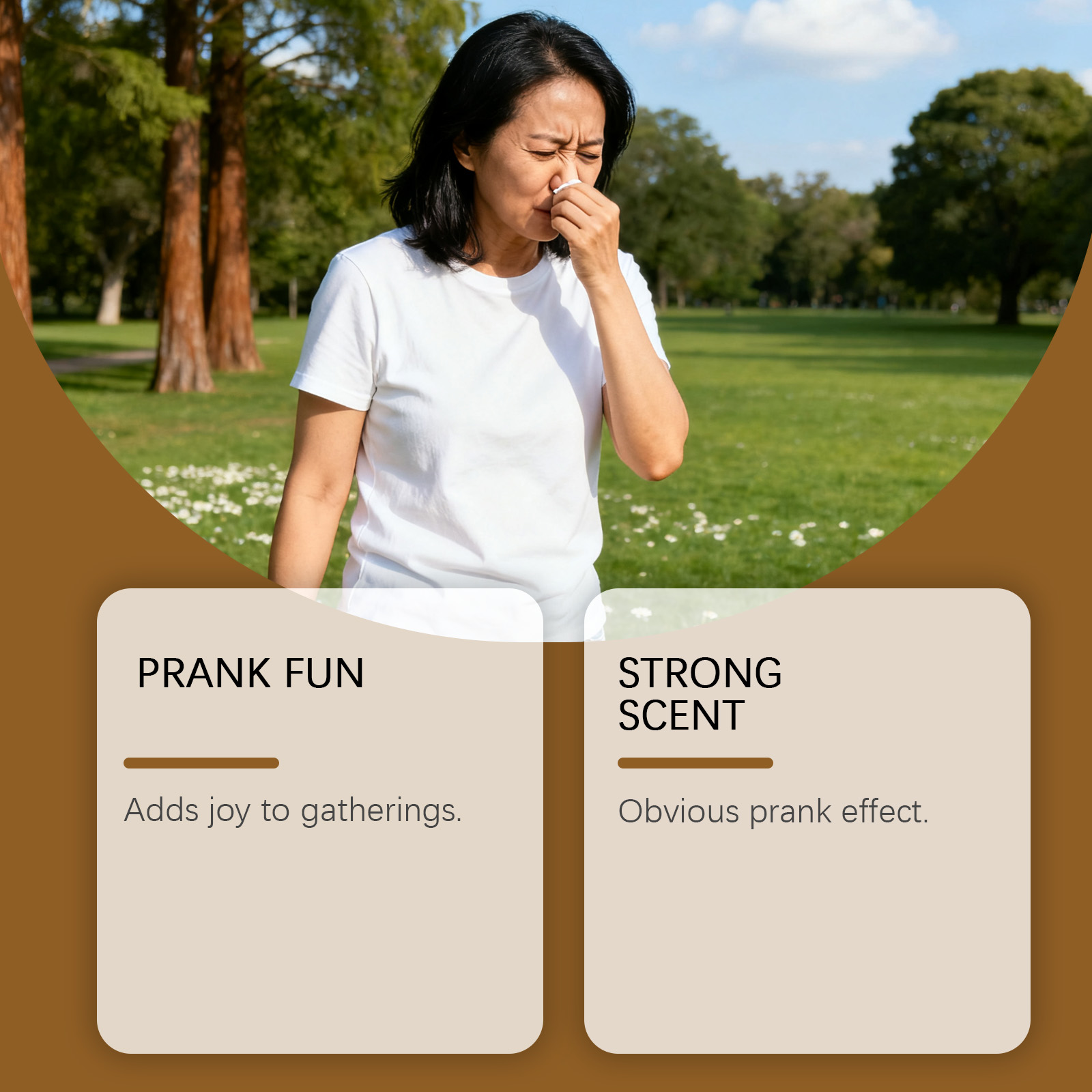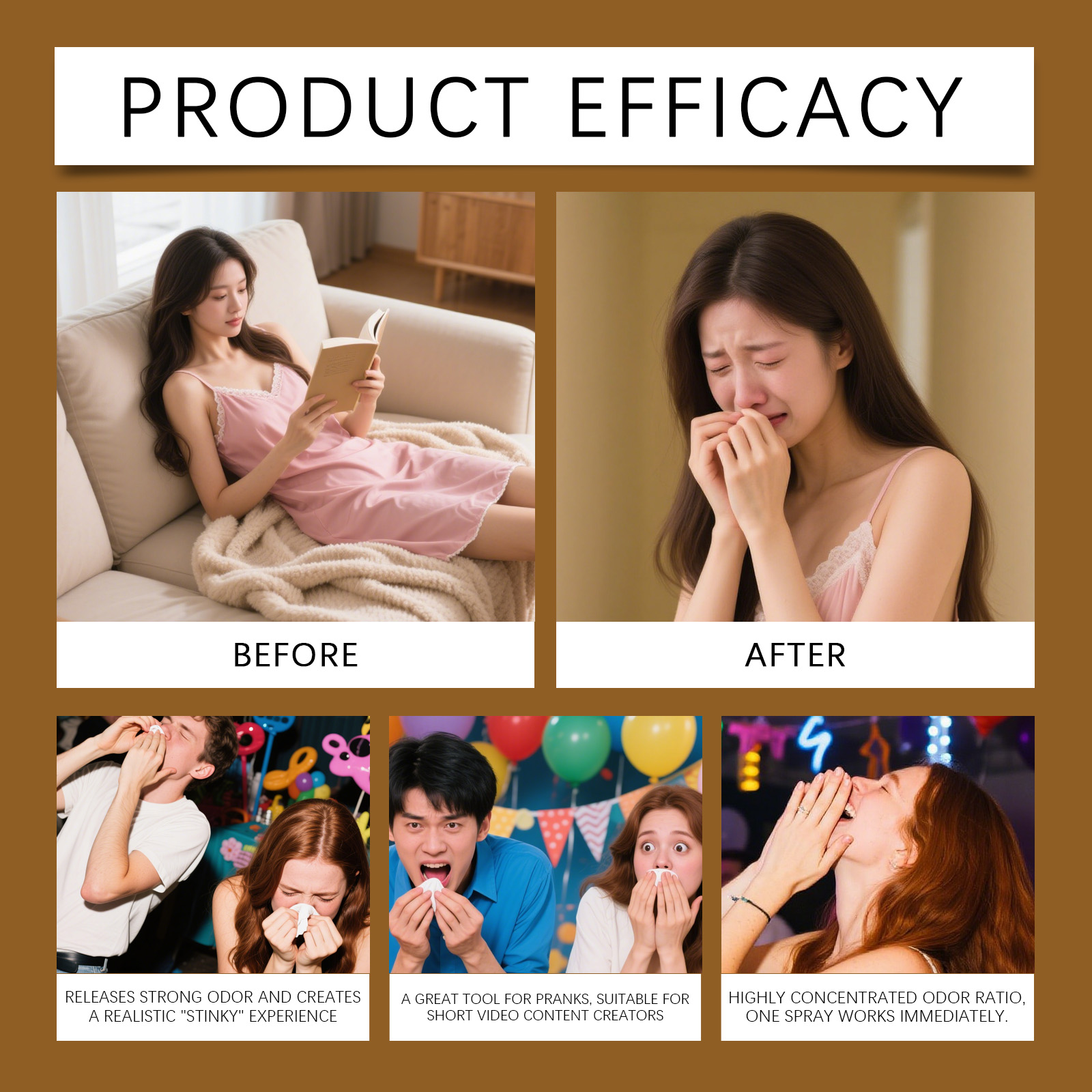 我们的臭屁喷雾,由甘油、乙醇酸精心调配而成。专为聚会增添欢乐设计。使用方法极为便捷:使用前,请充分摇匀喷雾,以确保香味均匀释放。打开盖子,轻轻按压泵头2-3次。喷洒在你想恶作剧的地方,以制造喜剧效果。使用后,建议打开门窗保持空气流通,并尽快消除异味。并且具有明显的恶作剧效果。(2).gif)