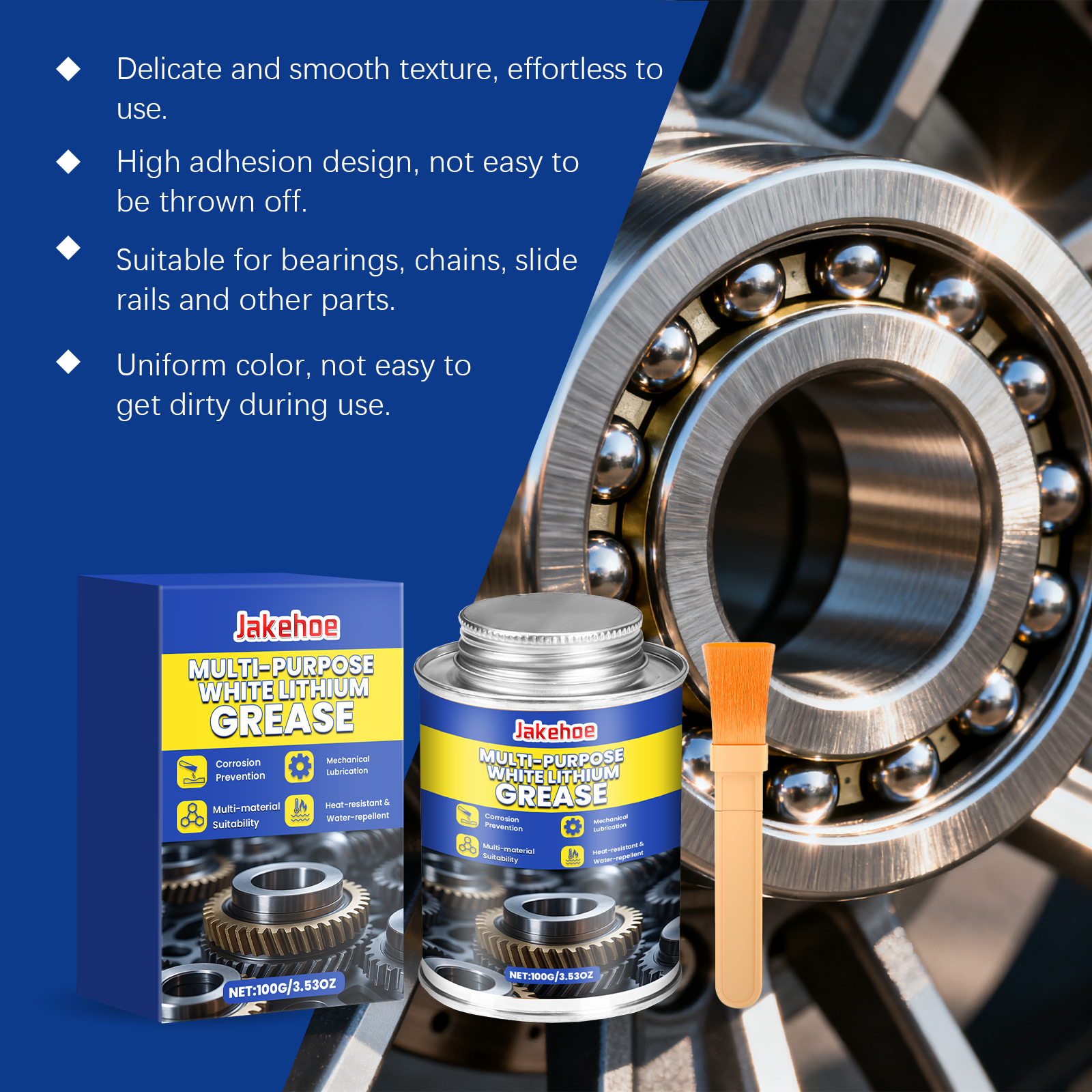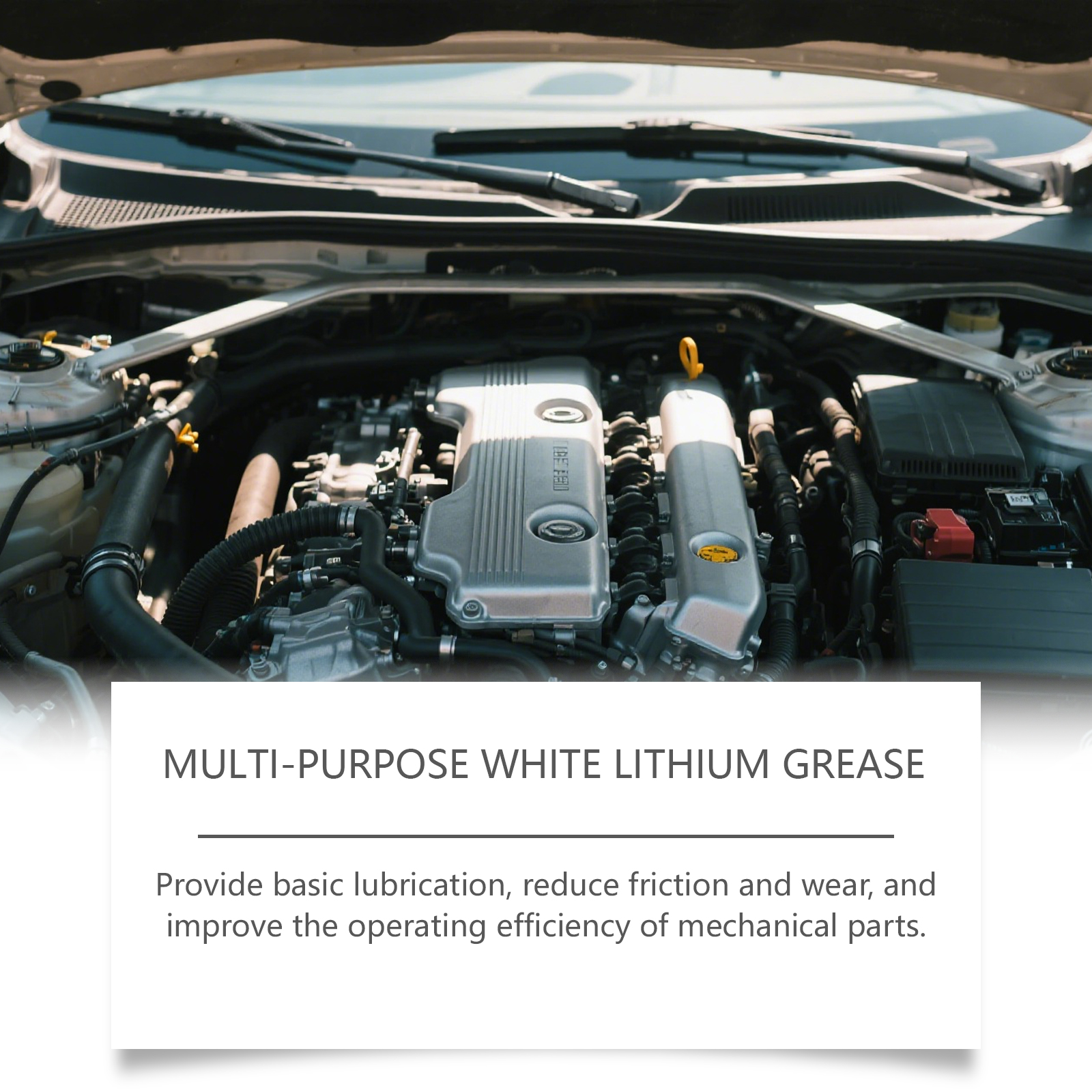 我们的多用途白色锂基润滑脂,由矿油、矿脂精心调配而成。专为提供基本润滑,减少摩擦和磨损,并提高机械部件的运行效率设计。使用方法极为便捷:1.在涂抹润滑脂之前,使用干净的布擦拭掉污垢、旧油脂和其他杂质,以确保表面清洁。2.使用刷子将适量润滑脂均匀涂抹在需要润滑的区域。并且它易于涂抹,不易滴落,适用于机械零件和硬件。
