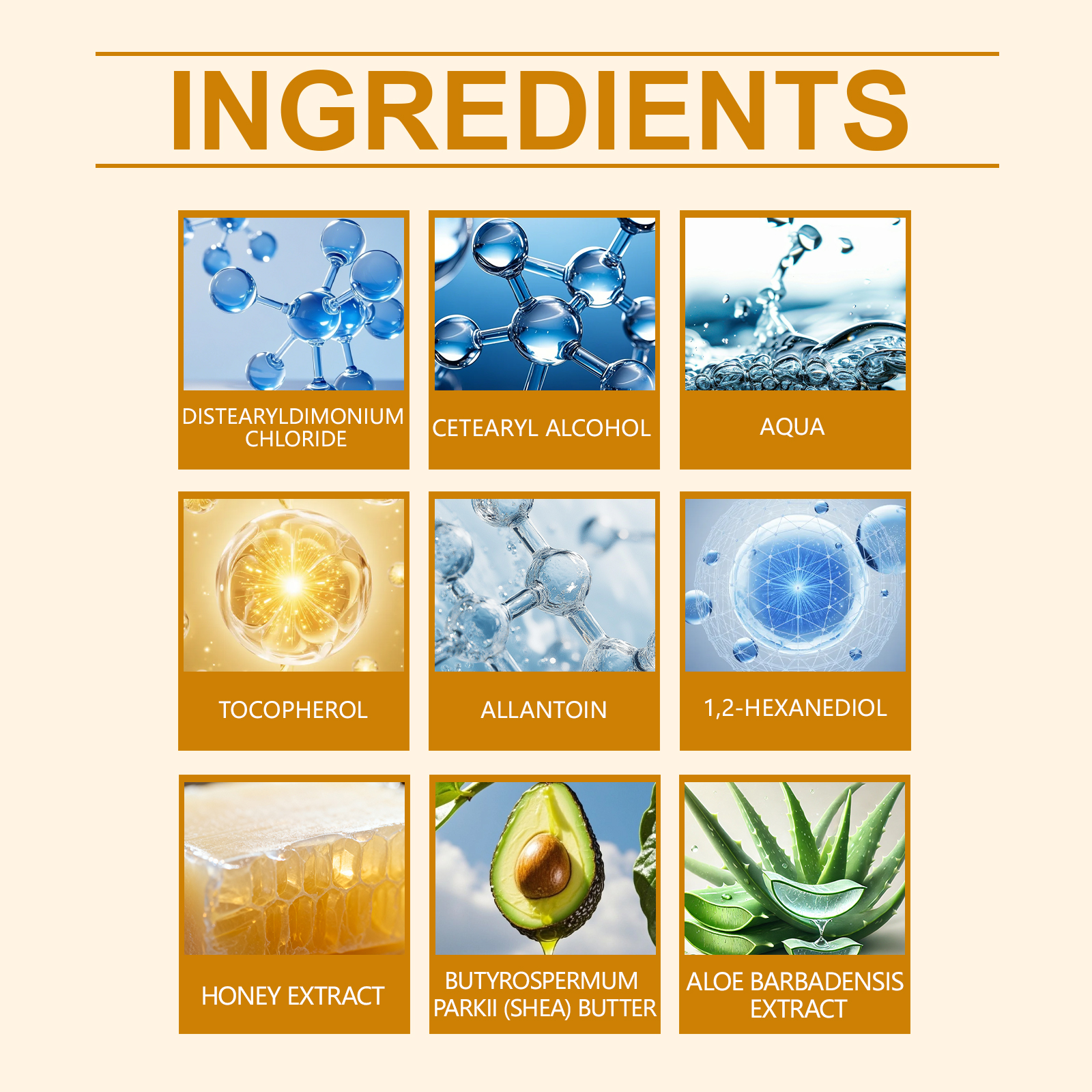 我们的光泽滋养护发素,由库拉索芦荟提取物、牛油果树果脂精心调配而成。专为有效强韧脆弱发质设计。使用方法极为便捷:1.洗发并擦至半干。2.取适量本产品涂抹于头发和头皮。3.用手轻轻按摩头发和头皮。4.用清水冲洗干净。并且可以深层保湿并呵护头皮。