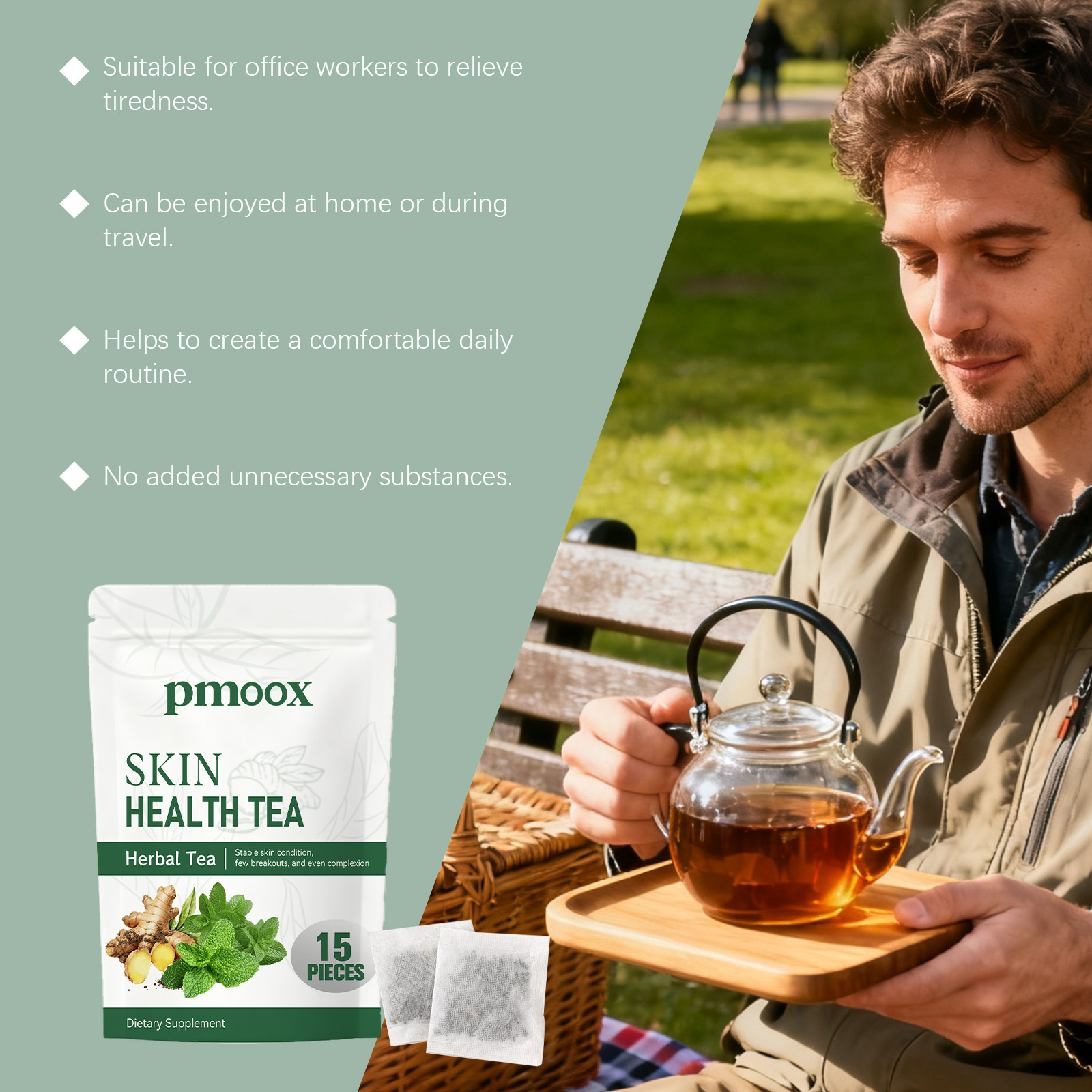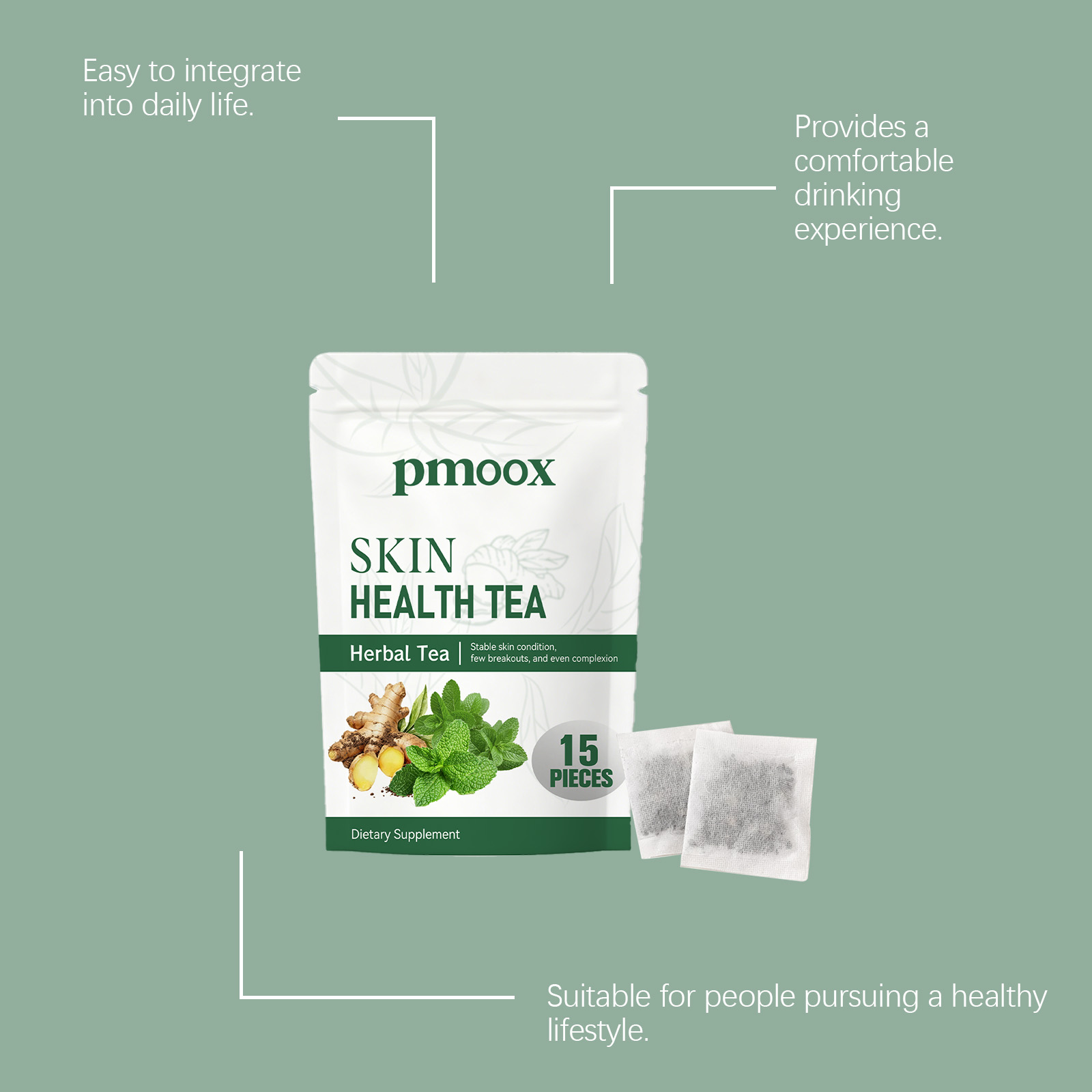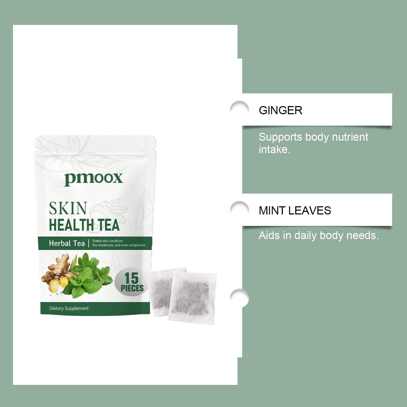 我们的草本茶,由生姜、薄荷叶精心调配而成。专为支持身体营养摄入,有助于满足日常身体需求设计。使用方法极为便捷:1.打开包装袋,将茶包放入杯中。2.将水煮至约90°C,倒入杯中浸泡茶包。3.静置浸泡3-5分钟,尽情享受香醇茶饮。并且它可以易于融入日常生活,提供舒适的饮用体验。