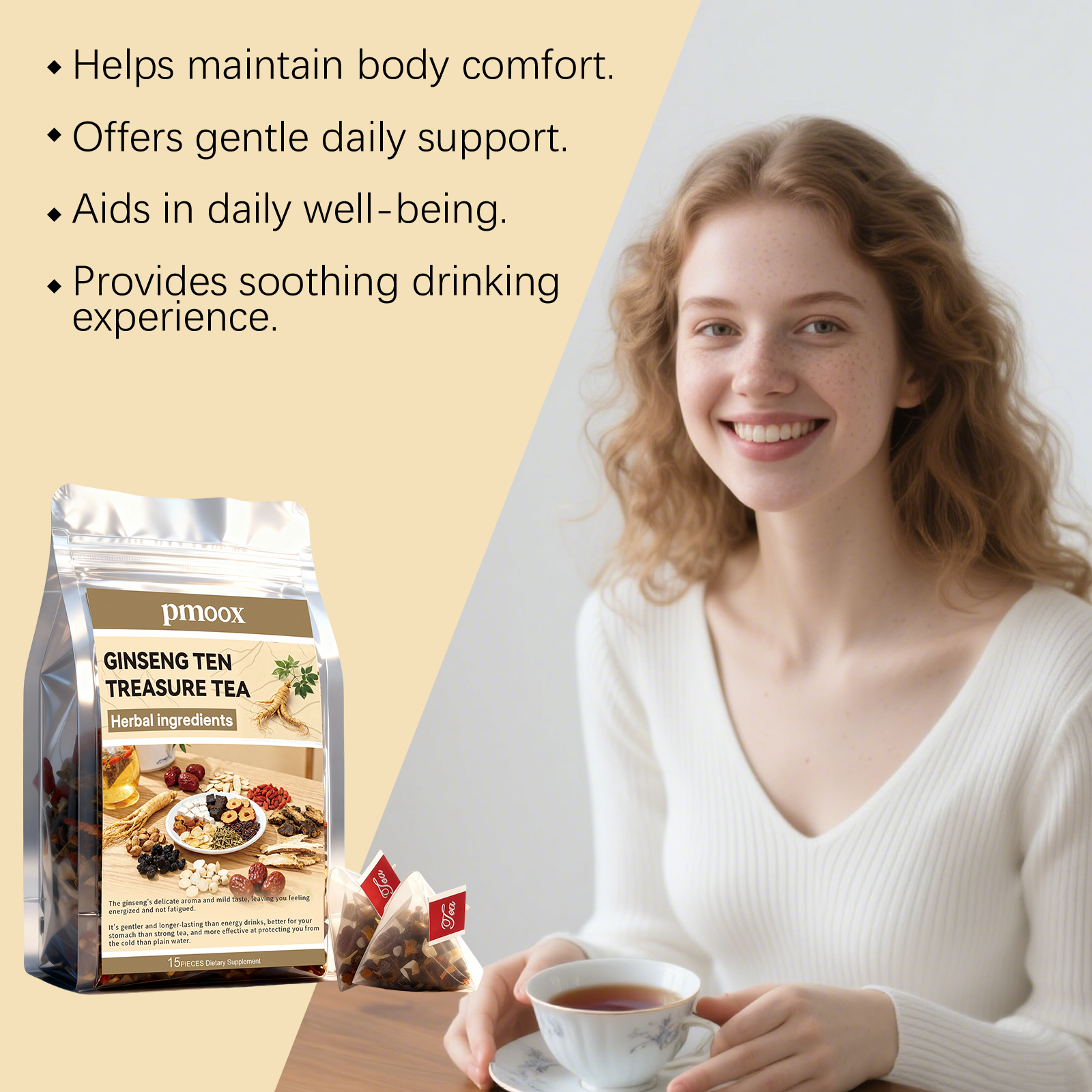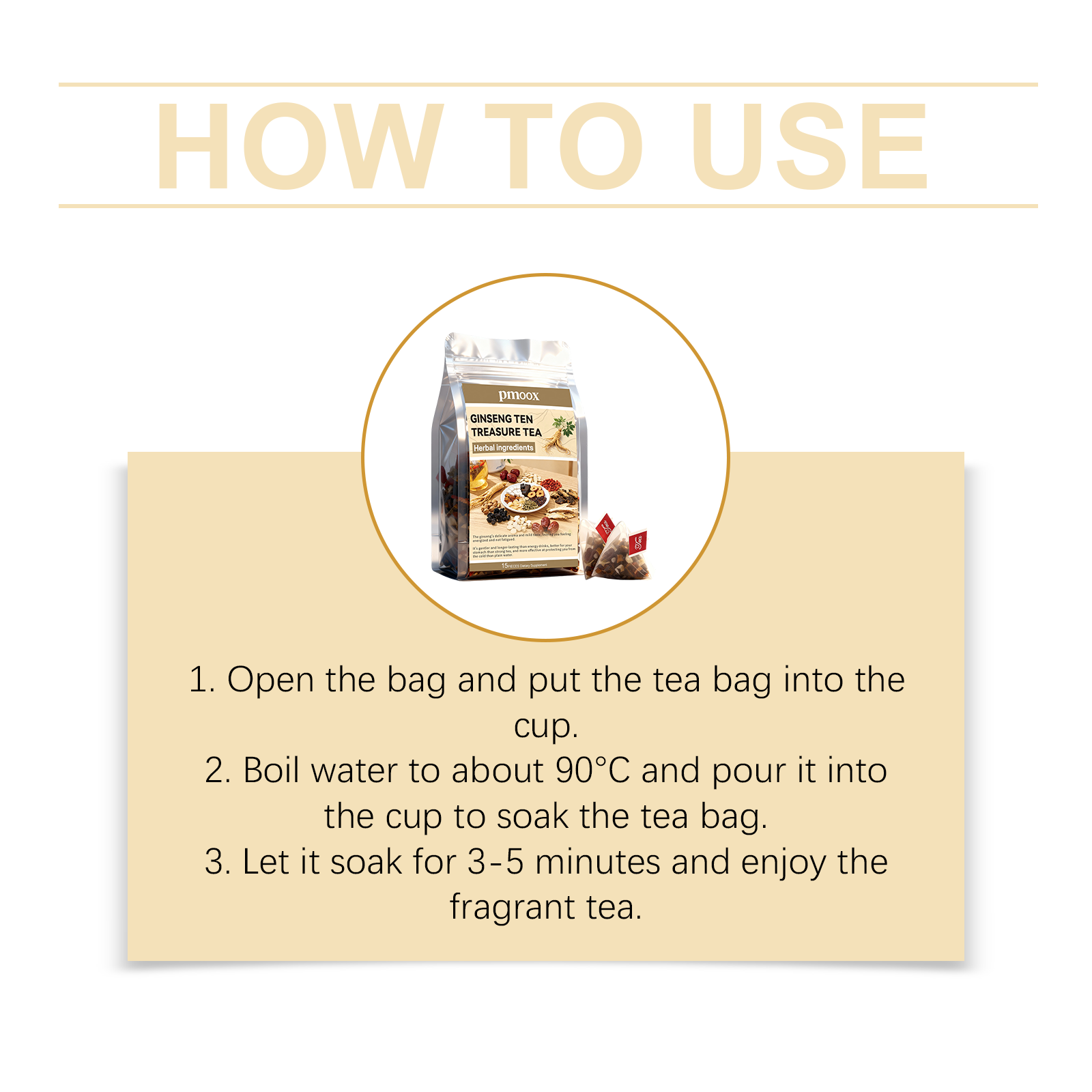 我们的人参茶,由人参、枸杞精心调配而成。专为助力维持身体舒适感,提供温和日常呵护设计。使用方法极为便捷:1.打开包装袋,将茶包放入杯中。2.将水煮至约90°C,倒入杯中浸泡茶包。3.静置浸泡3-5分钟,尽情享受香醇茶饮。并且它可以辅助日常身体状态,带来舒缓饮用体验。