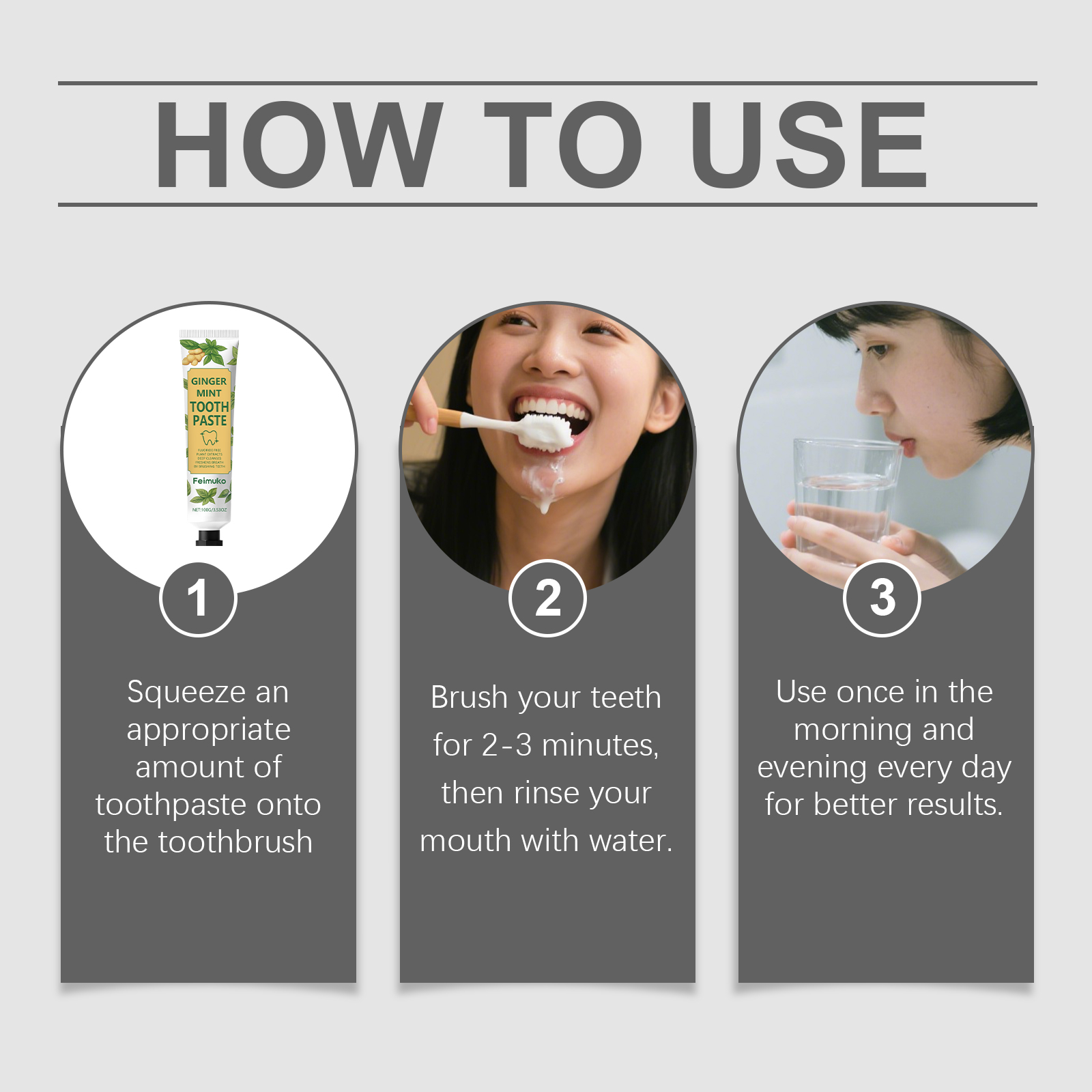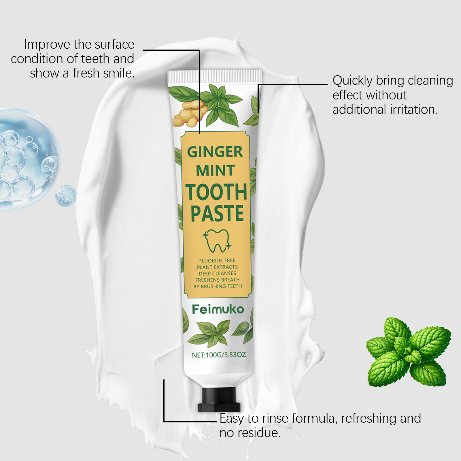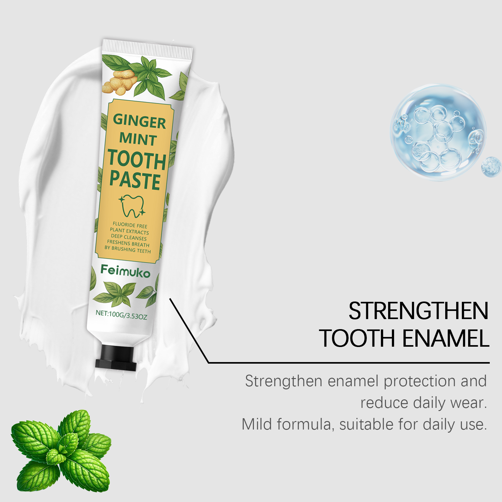 我们的清新口气牙膏,由薄荷醇、姜根提取物精心调配而成。专为减少牙齿表面的污渍,展现洁白笑容的魅力设计。使用方法极为便捷:挤出适量牙膏到牙刷上。刷牙2-3分钟然后用水漱,每天早晚各使用一次,以获得更好的效果。并且可以带来持久清新感,提升口腔舒适度。