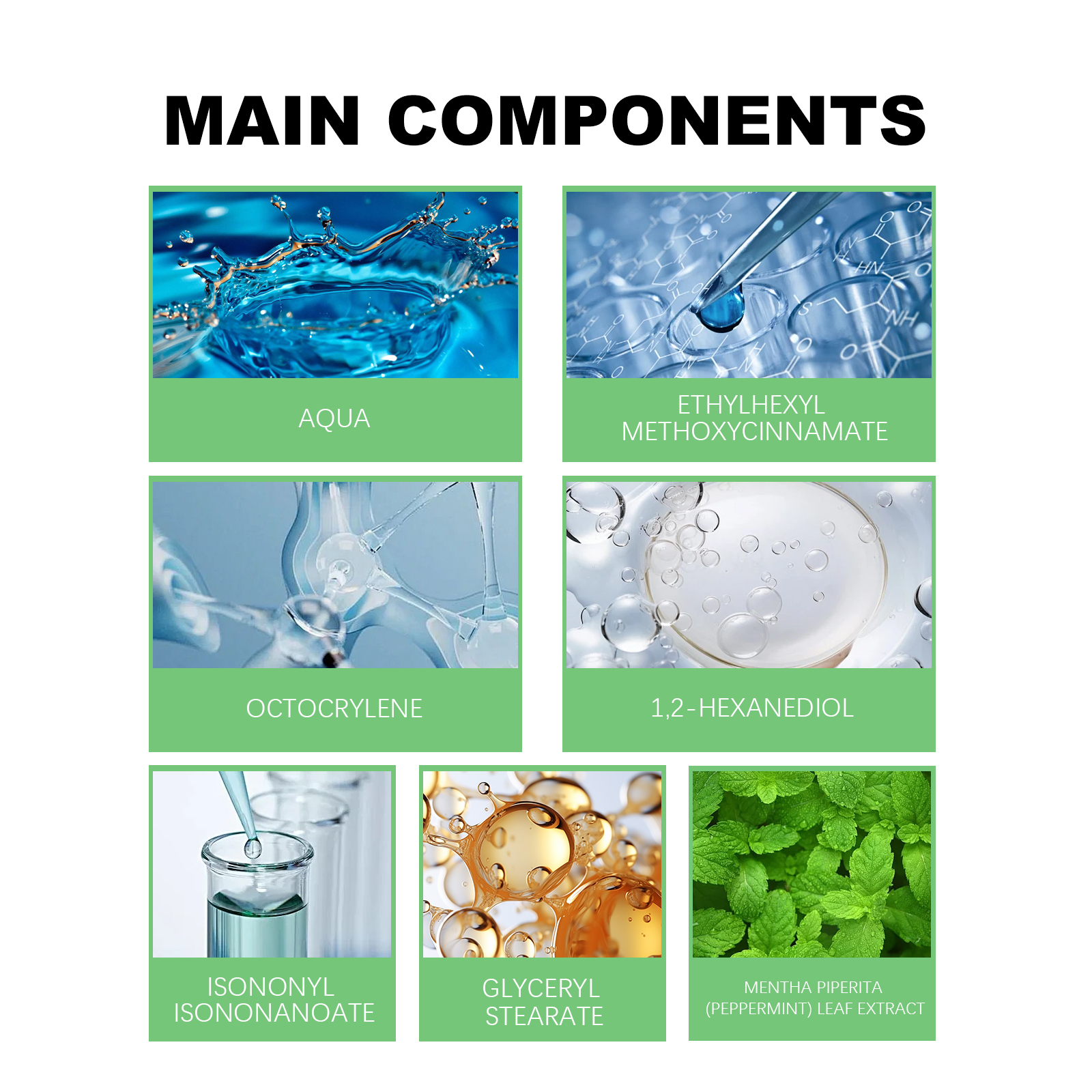 我们的薄荷紫外线防护霜含有异王酸异王酯、甘油硬脂酸酯、辣薄荷叶提取物。它可以防止紫外线对皮肤的伤害,并在皮肤上形成一个无形的皮肤屏障,帮助保持皮肤白皙,保护您的皮肤。它的使用方法很简单:清洁皮肤并擦干,将本产品均匀涂抹到所需的区域即可。可以反射紫外线,吸收和过滤紫外线,全波长保护,多方位防护紫外线照射。